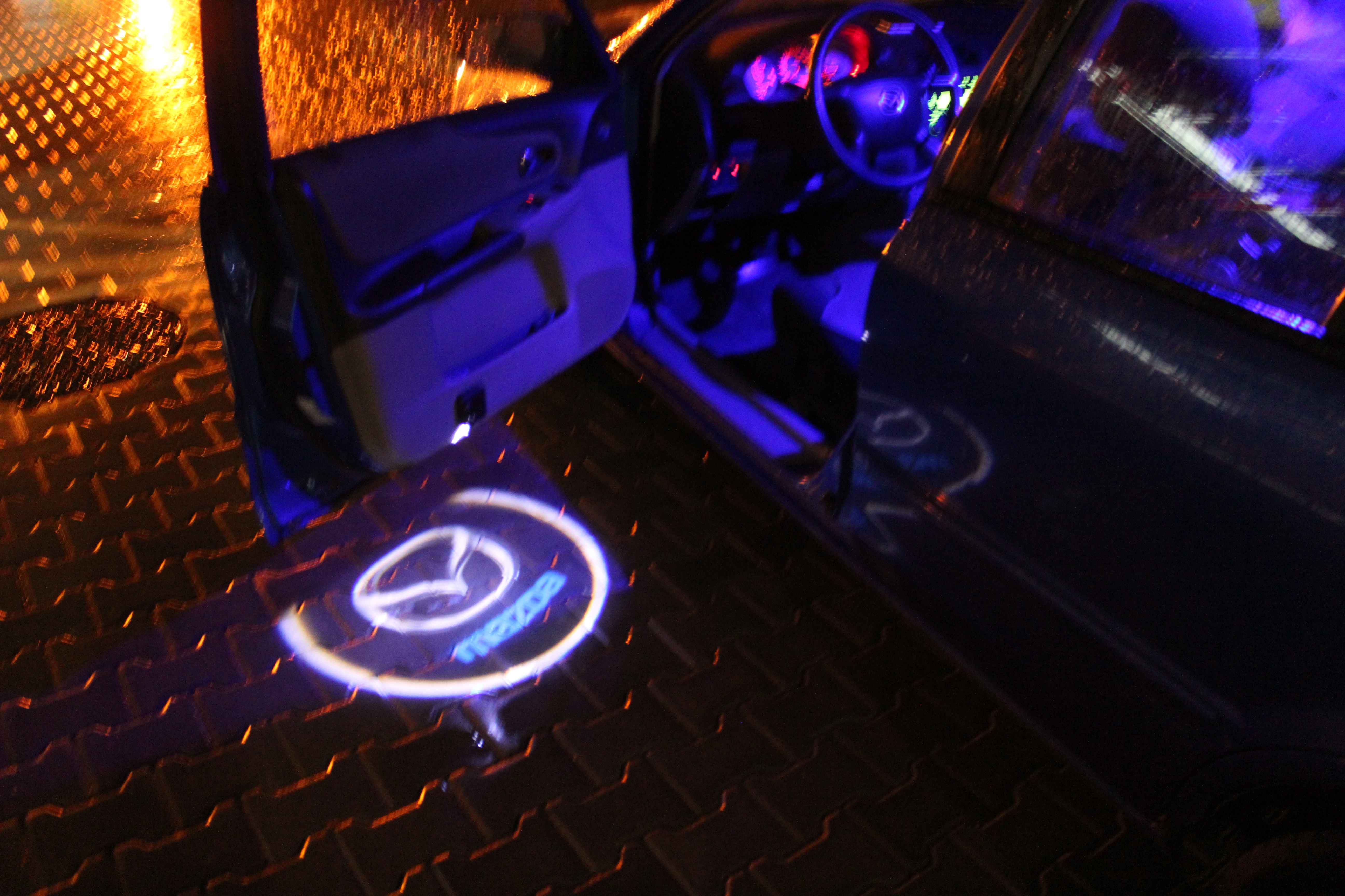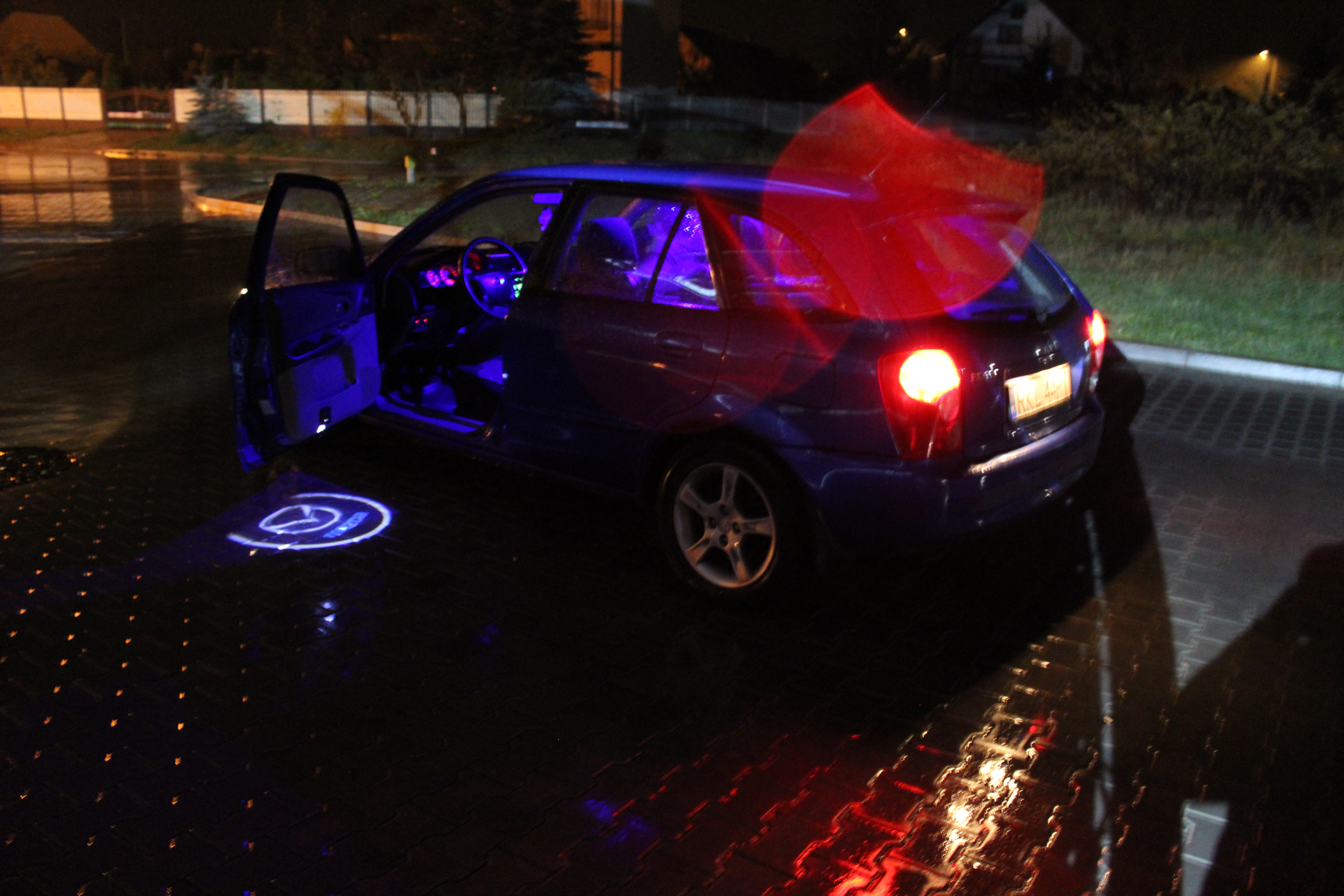 Trzeba zwrócić uwagę na to, że projektory te dzielą się na dwa typy. Te które łączymy kabelkami i świecą zawsze przy otwartych drzwiach – i te które są na przycisk. Wiem, że dla większości takie projektory podchodzą pod "wiejski tuning", dlatego wziąłem te na przycisk. Zawsze mogę włączyć tylko do zdjęć.