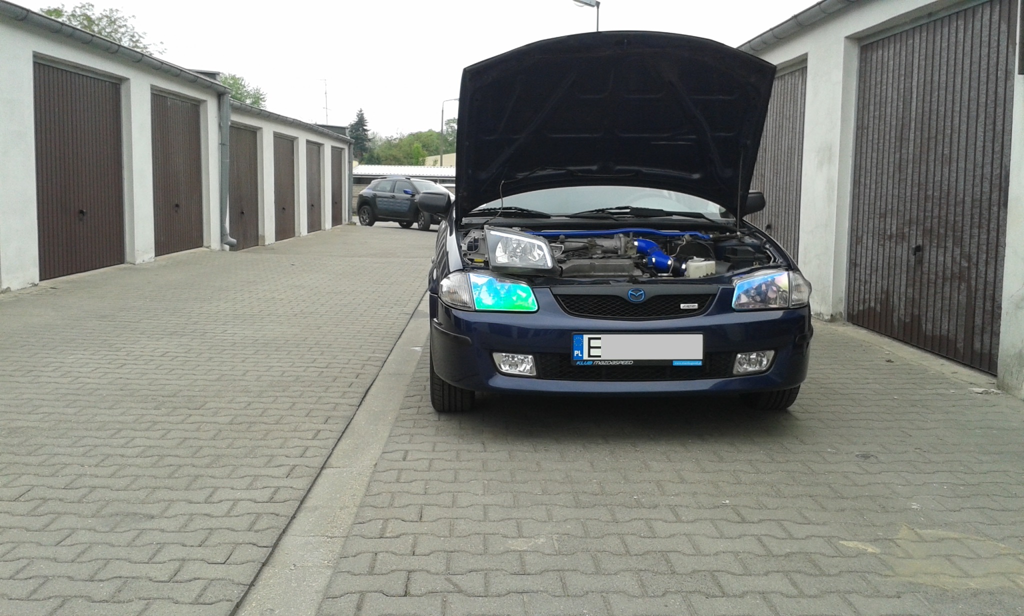 właśnie dlatego robi się innym kolorem żeby przełamać jednostajność, za błękitny dowodzik szybko stracisz. Nazywają to ,,żółty selektywny" bo on jest dozwolony. Z farbą uważaj, trzeba równomierni pokryć klosz, dlatego moim zdaniem lepiej folią, jak się nie spodoba to zerwiesz. Zobacz jak ładnie to wygląda u kolegi wyżej. Listwy zostaw tylko w kolor.