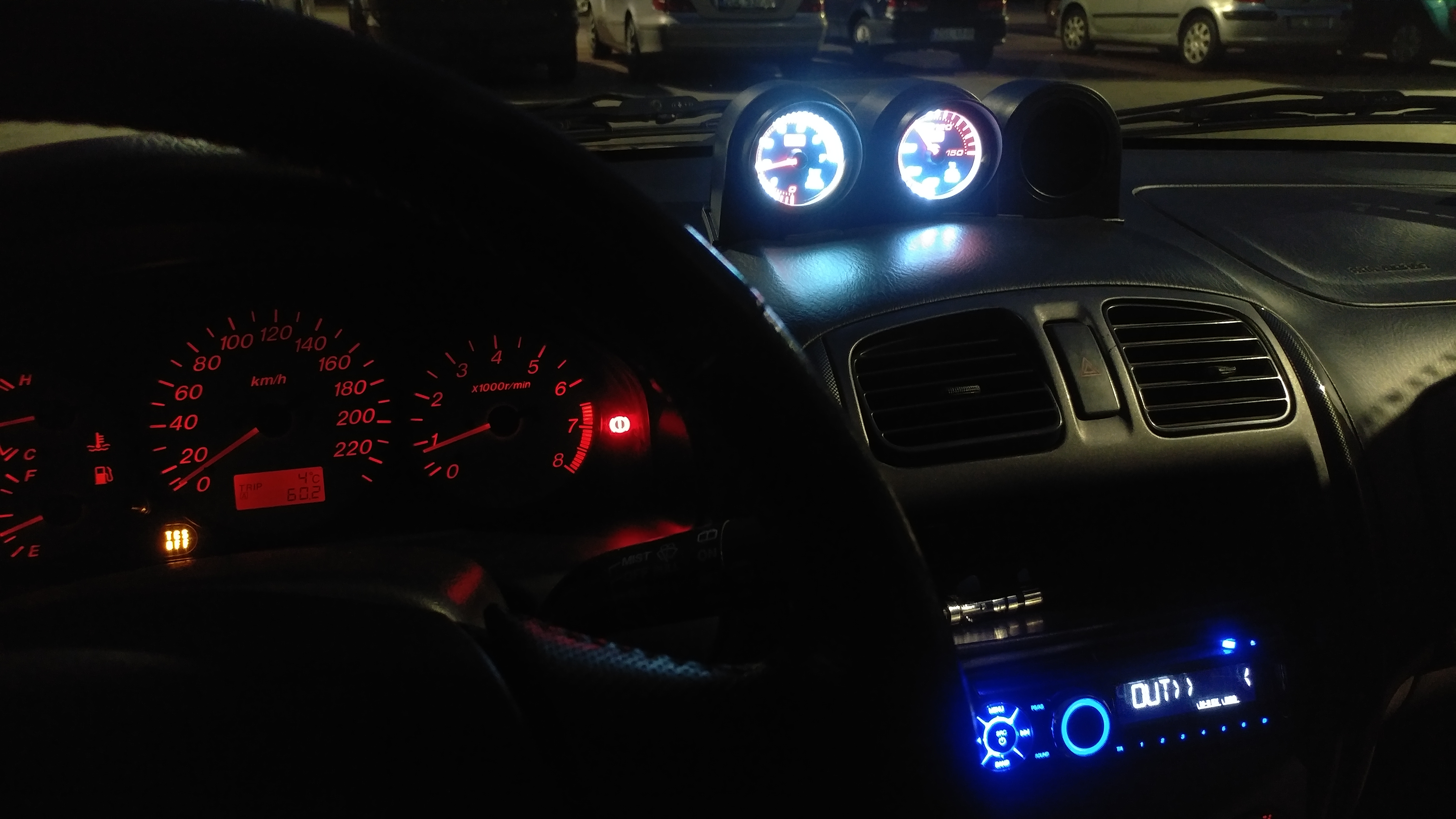 Do tego zrobiłem sobie prezent na święta w postaci zestawu dodatkowych zegarów oraz potrzebnych akcesoriów do ich montażu. Temperatura i ciśnienie oleju jest teraz monitorowane, a w przyszłości dojdzie jeszcze wskaźnik boosta w trzecie wolne miejsce obudowy :)