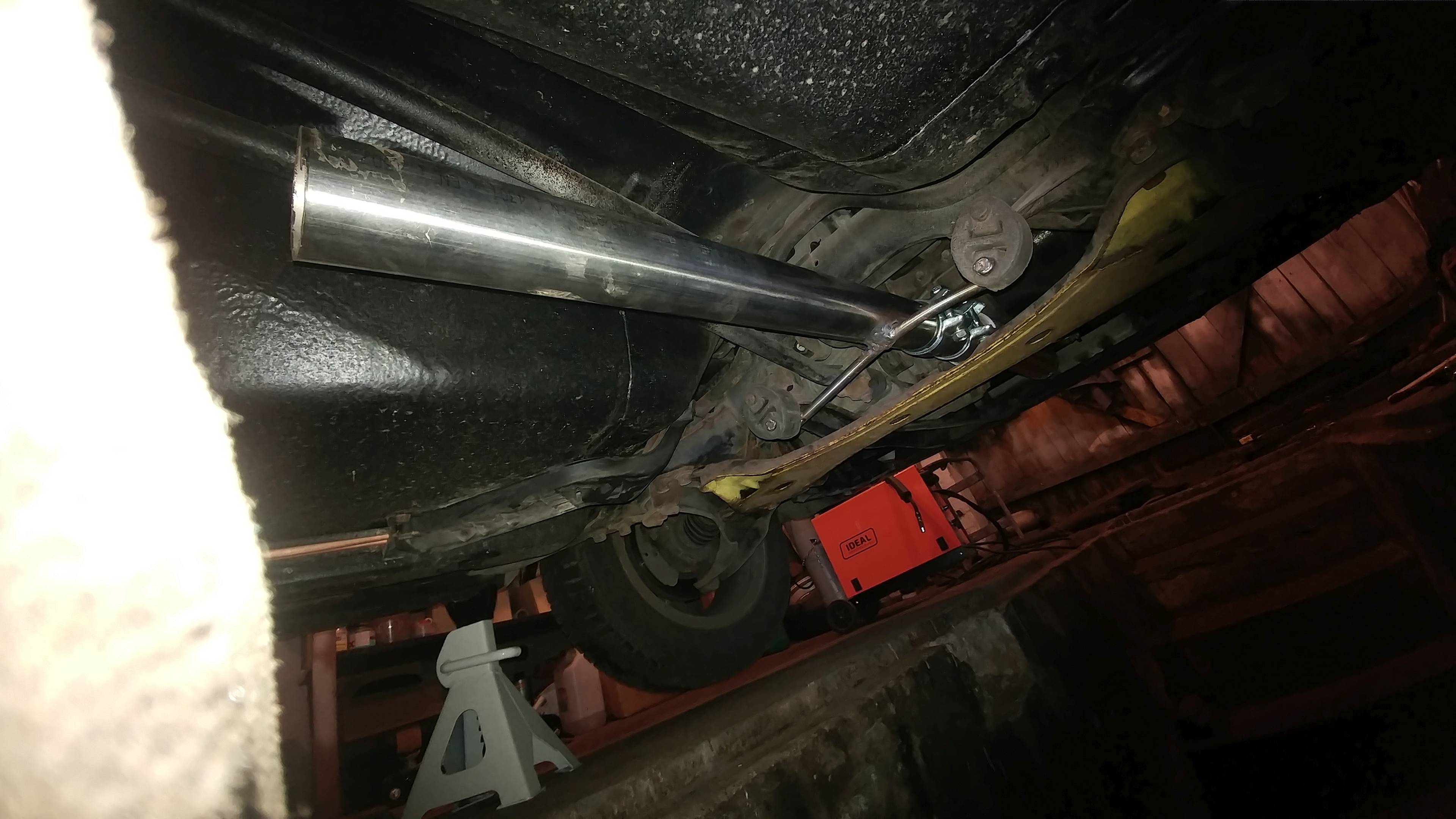 Wydech jest zrobiony na 75%. Póki co zamontowane są dwa tłumiki tzw. "pierdki" które ch....a tam wyciszają i auto wyje jak zwariowane, jednak brzmi super. Przy wysokich obrotach brzmi podobnie jak Subarowski boxer. Musze ostrożnie obchodzić się z gazem w mieście bo słychać na kilka ulic <lol> Jestem w trakcie ogarniania trzeciego tłumika czyt. docelowego końcowego ale jakoś firma Mar Tec średnio kwapi się, żeby utrzymywać ze mną kontakt. Rozmowa telefoniczna, ustalenie ogólnych warunków i polecenie żebym napisał maila. No to napisałem, na dwa różne adresy które widnieją, jeden na stronie internetowej, drugi na facebooku i jak na razie zero odzewu a niestety czas ucieka i gdybym chciał się wybrać w dłuższą podróż to nie ma takiej opcji z wydechem w obecnej odsłonie. Jest też druga opcja, żeby po prostu kupić jakąś puchę z Magnaflowa, które wymiarowo są zbliżone do wymiarów które są pożądane czyli żeby wyciszyć układ przydałaby się puszka wymiarów co najmniej 13x20x36 i takie są dostępne od ręki i też jest to nierdzewka. Parę zdjęć, mediów niestety jako takich nie ma póki co, wybaczcie <glupek2>