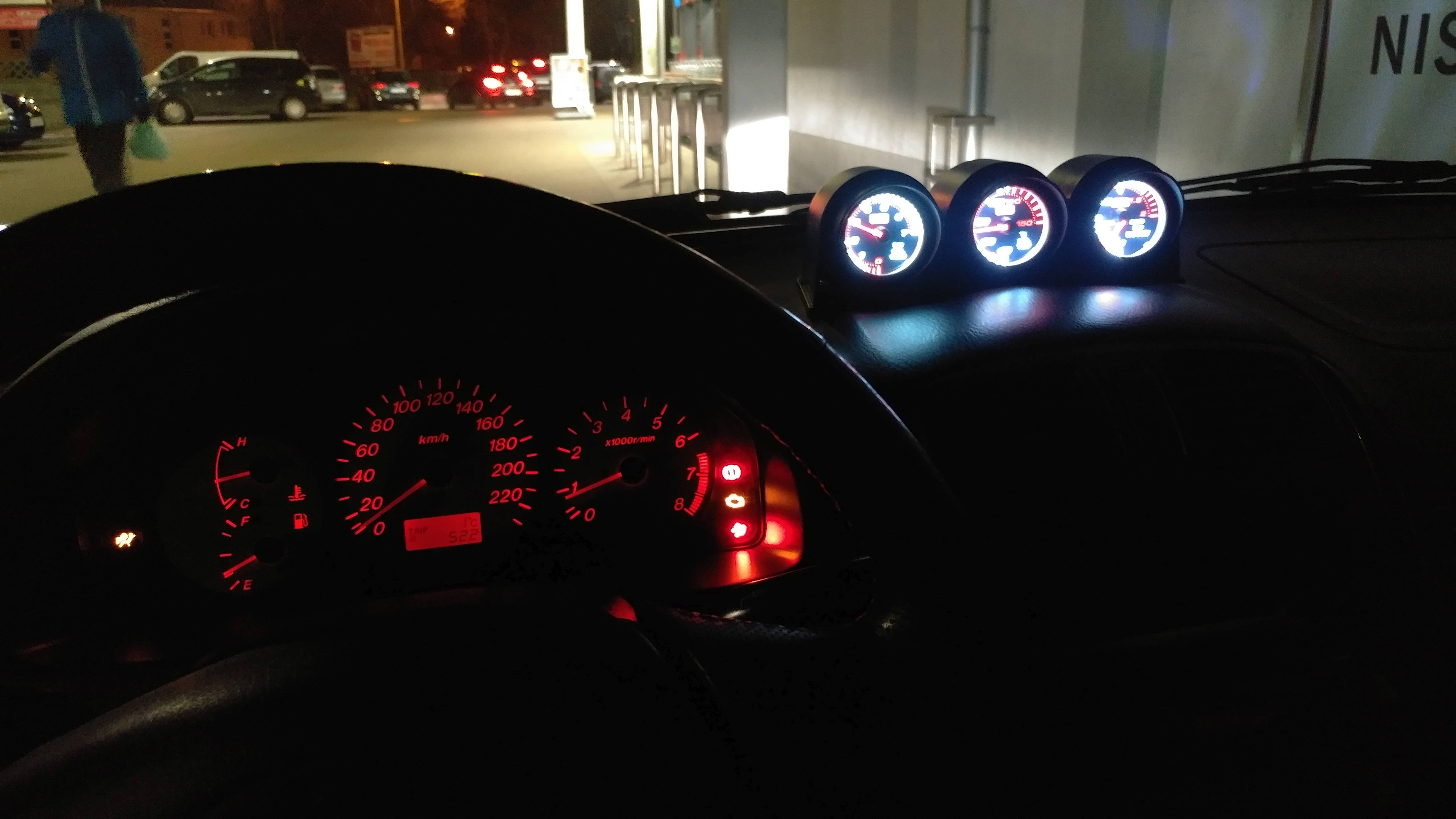 Na razie jest delikatnie mówiąc "kupa", auto niewystrojone, jeździ źle, dławi się ze względu na małe wtryski ale doładowanie jakie udaje się osiągnąć to około 0.5 bara według zegarka. Czyli początkowe założenie spełnione <spoko>