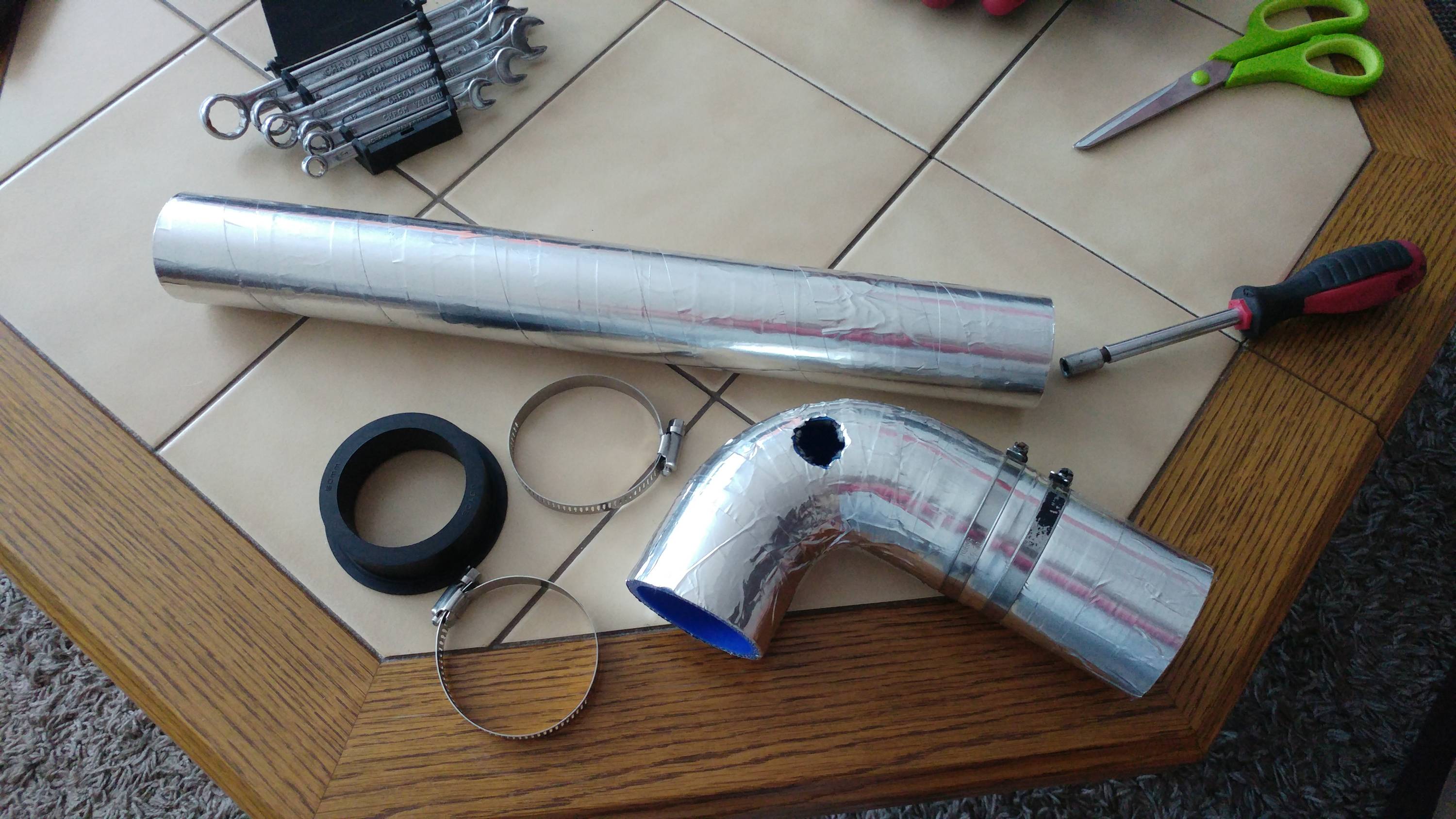 Wszystkie rury są odizolowane termicznie, część folią aluminiową z bandażem a cześć tylko aluminium, silikony idące nad kolektorem wydechowym również owinięte aluminium ale w niedalekiej przyszłości całkiem ominę ten cholerny kolektor wydechowy bo to przez niego głównie piekło w rurach. Kręcę do ok. 6500-6600. Wyżej już kompletnie nie ma sensu bo nie mam momentu. Myślę, że nawet mógłbym biegi zmieniać przy 6200 i nie byłoby znaczącej różnicy a miałbym może trochę więcej momentu od razu po włączeniu biegu.