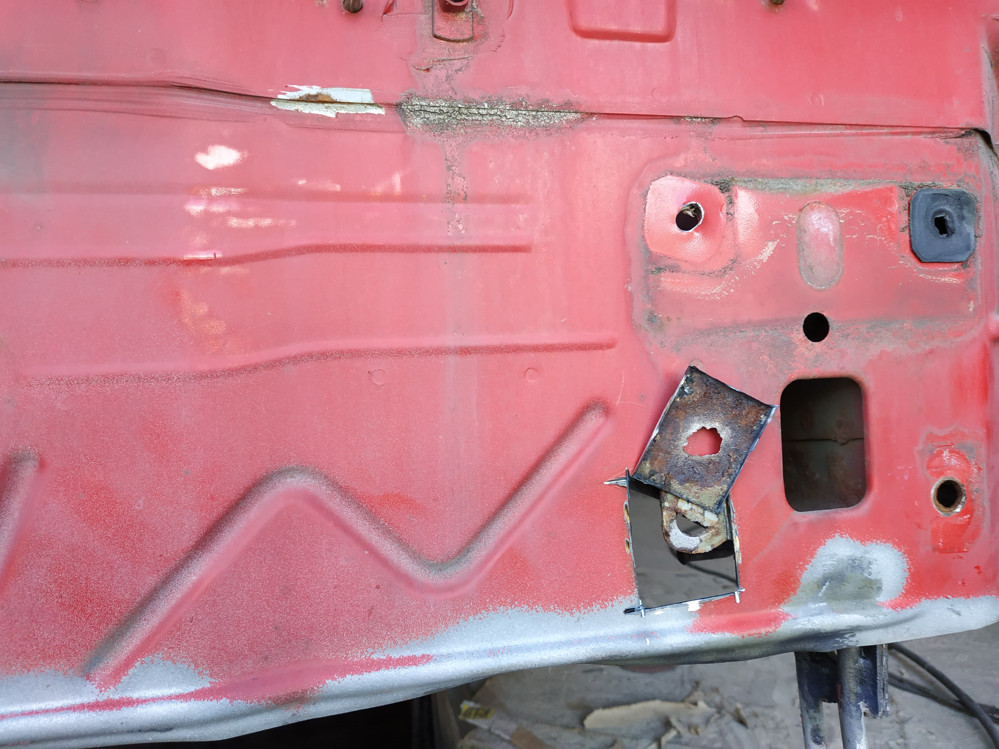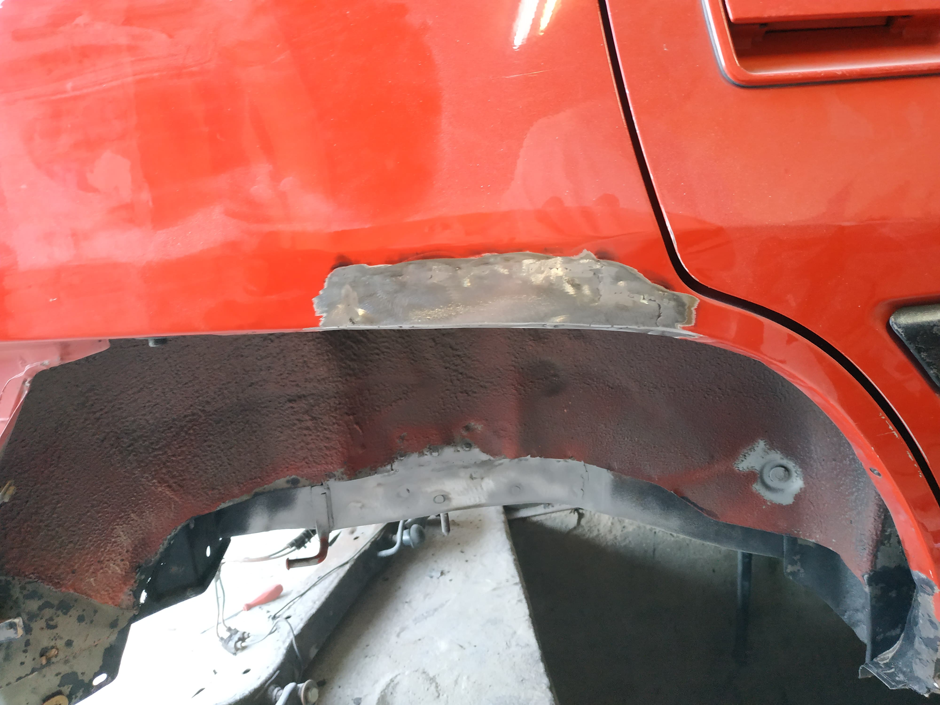 Należy pamiętać że goła blacha też ciągnie wilgoć. Po piaskowaniu powinno się zaraz konserwować bo potem pod warstwą konserwacji może ruda wyjść. Taka naprawa blacharska to pikuś. Prawie że żadna jak na takie stare auto. Trzeba się z tego cieszyć.