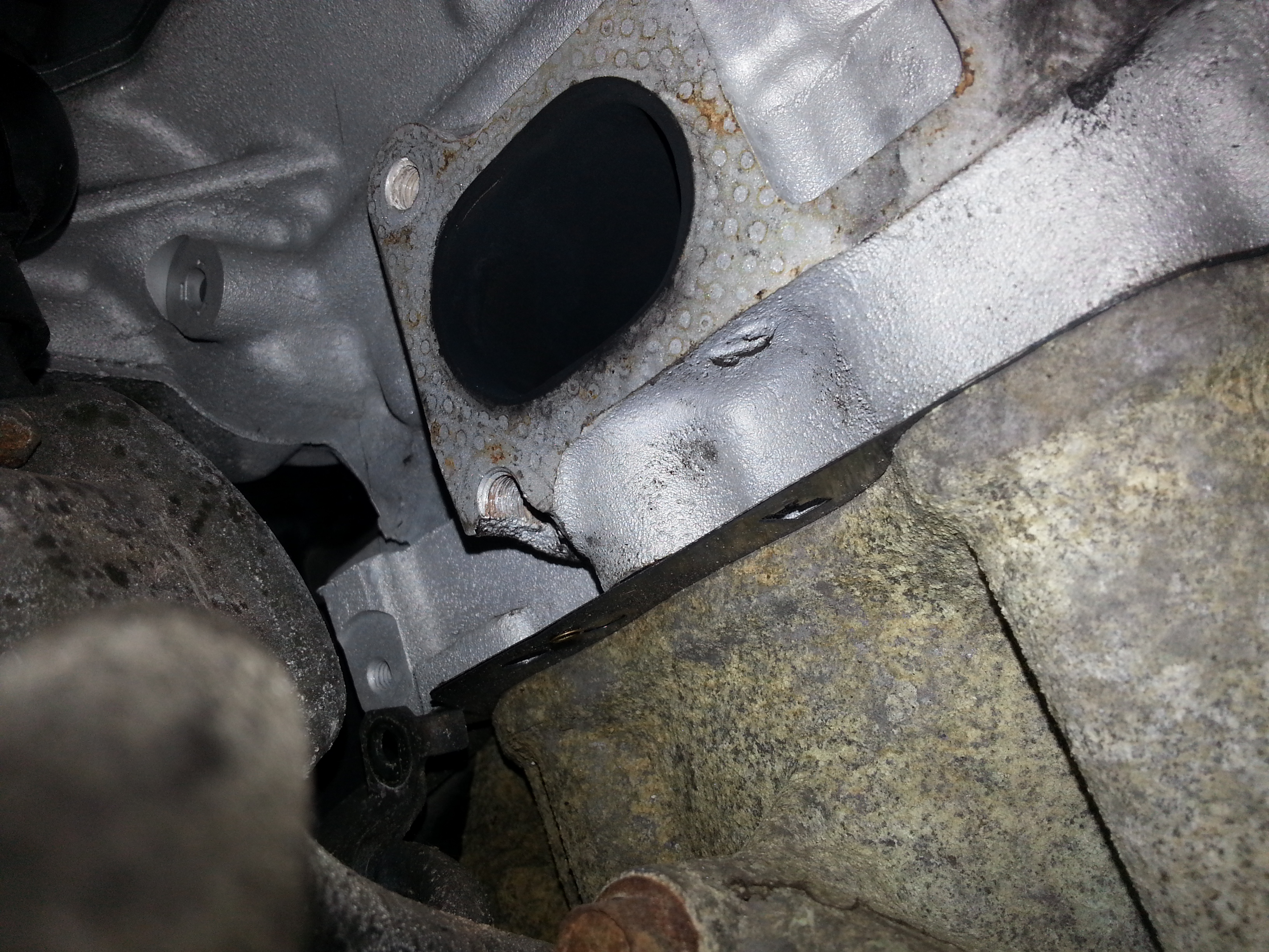 Wczoraj z Mariusem ściągnęliśmy przedni kolektor wydechowy i naszym oczom ukazał się taki o to widok