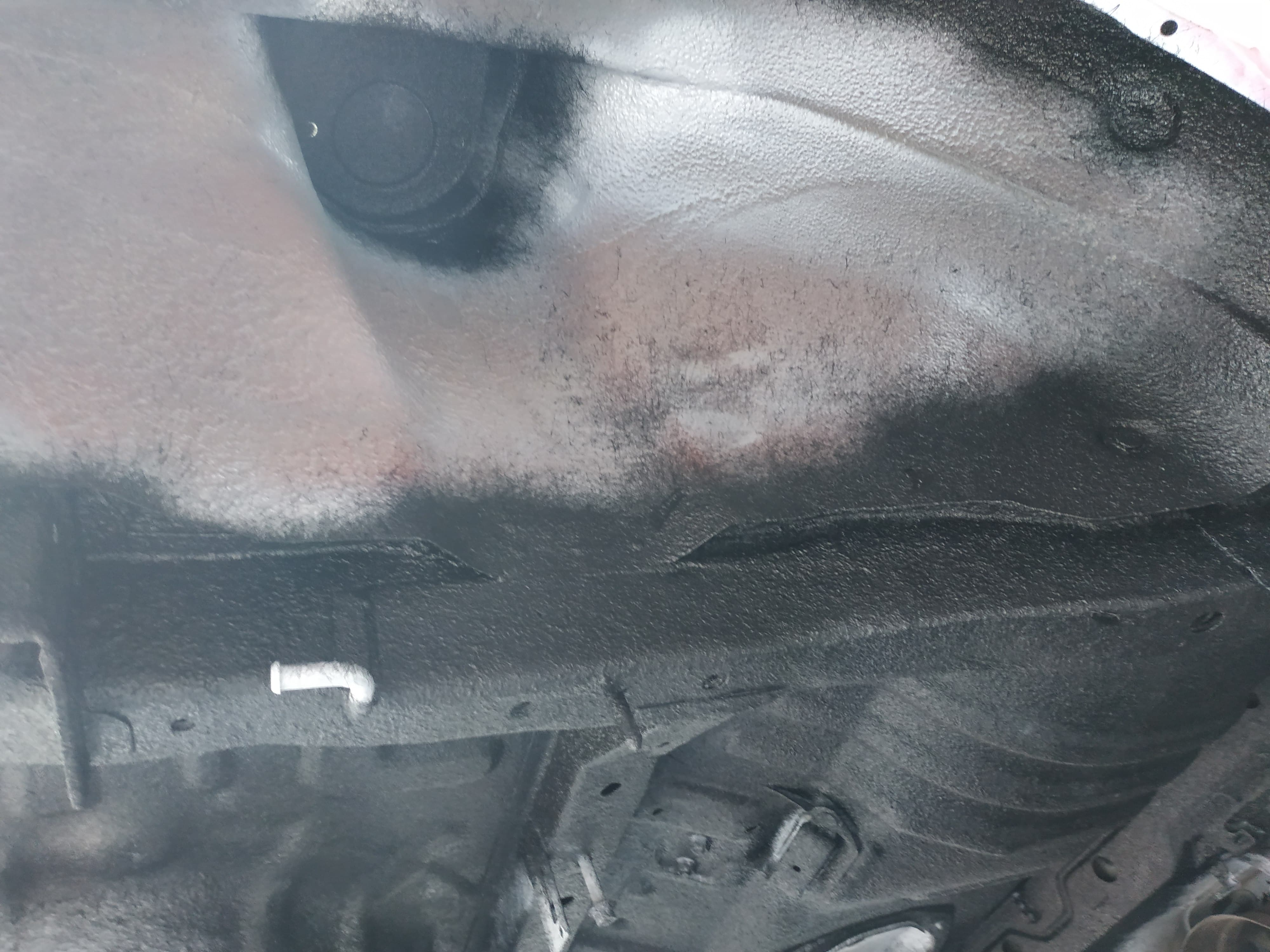 Guma natryskowa, struktura bardzo podobna do tej oryginalnej na aucie, bardzo dobrze chroni przed korozją oraz kamieniami itp, na to pójdzie jeszcze warstwa woskowa, która zabezpieczy wszystko przed wilgocią i solą.