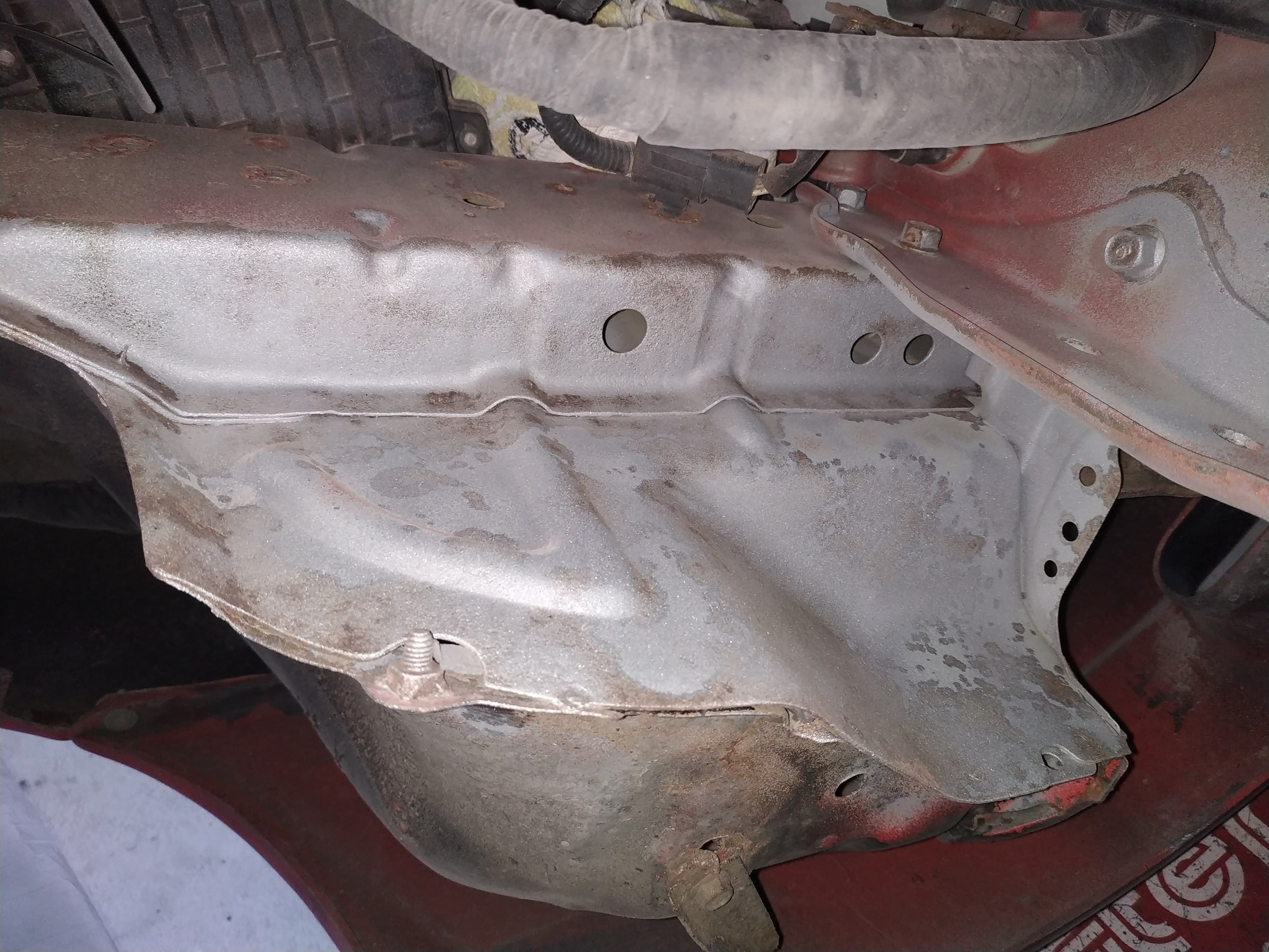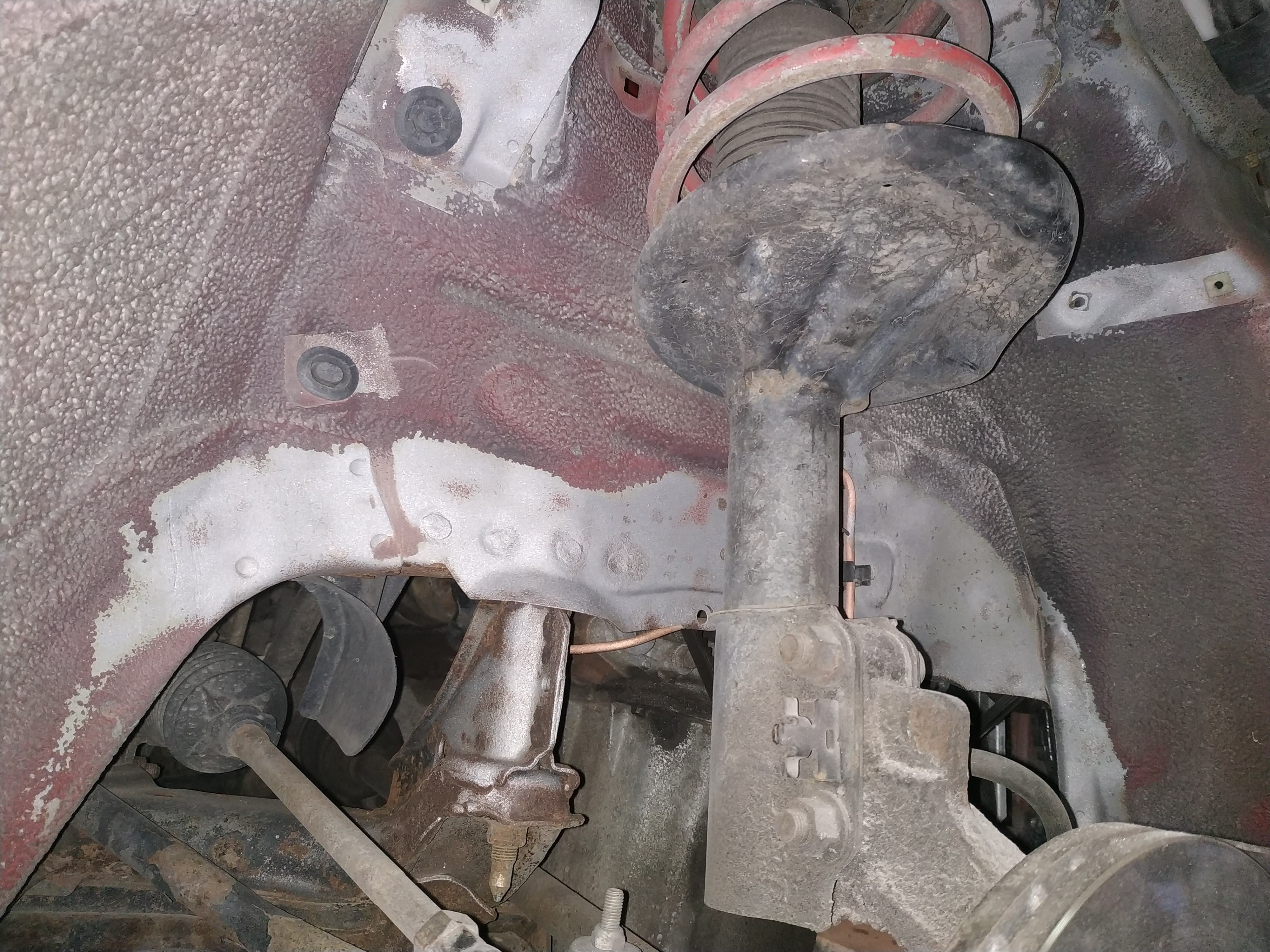 Poza tym, to tak podwozie całkowicie zrobione, za 2 lata mam podjechać na przegląd czy nic się nie dzieje. Te elementy typu nadkole, dół drzwi lewych przednich, gdzie była usuwana rdza z zewnątrz, zostały zamalowane lakierem czerwonym, ale ciemniejszym niż oryginał. Widać jak się człowiek przyjrzy.