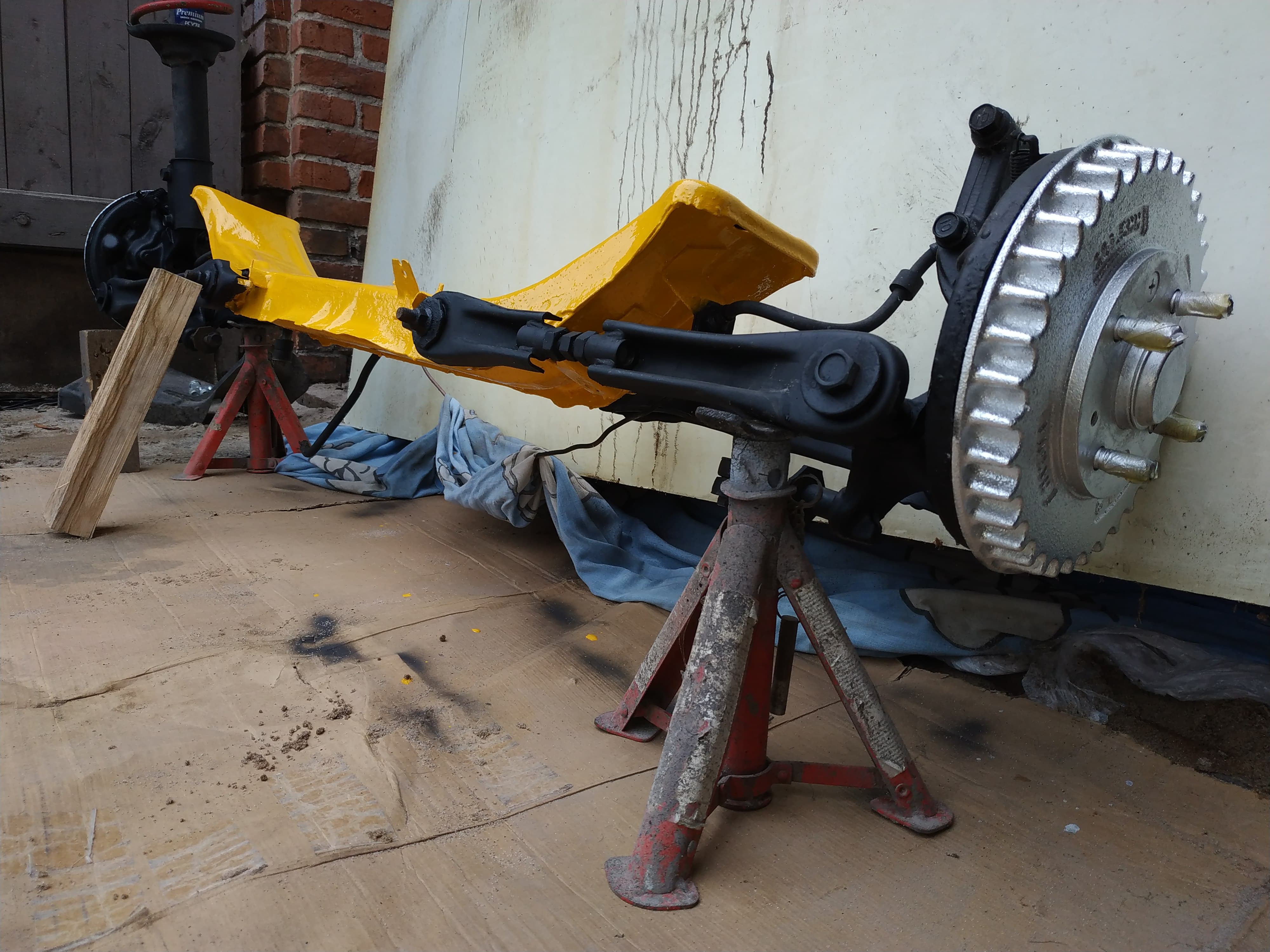 Belka tylnego zawieszenia dostała kolor żółty jak i zaciski. No i bębny zostały oczyszczone też z rdzy i na nowo polakierowane na srebrno <spoko>