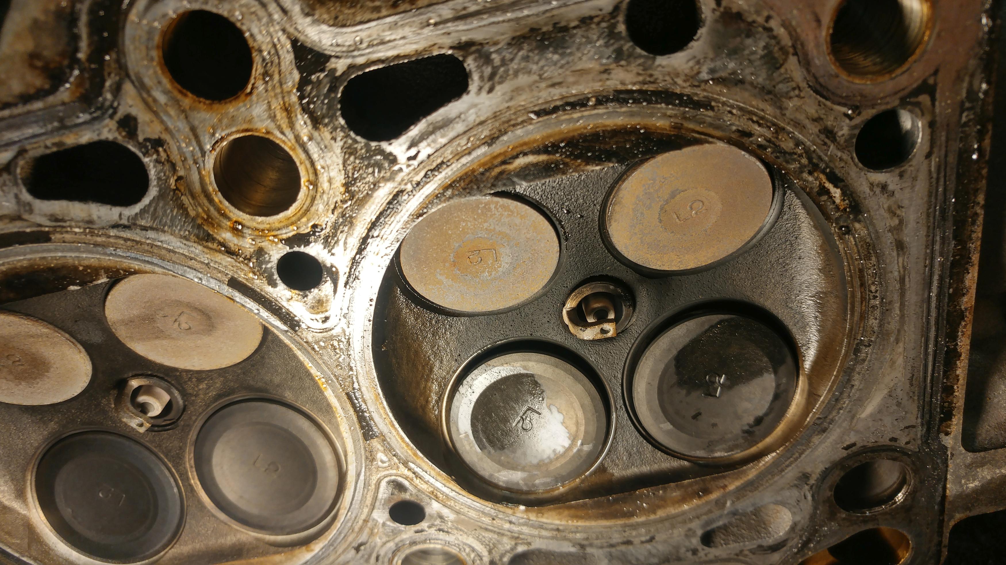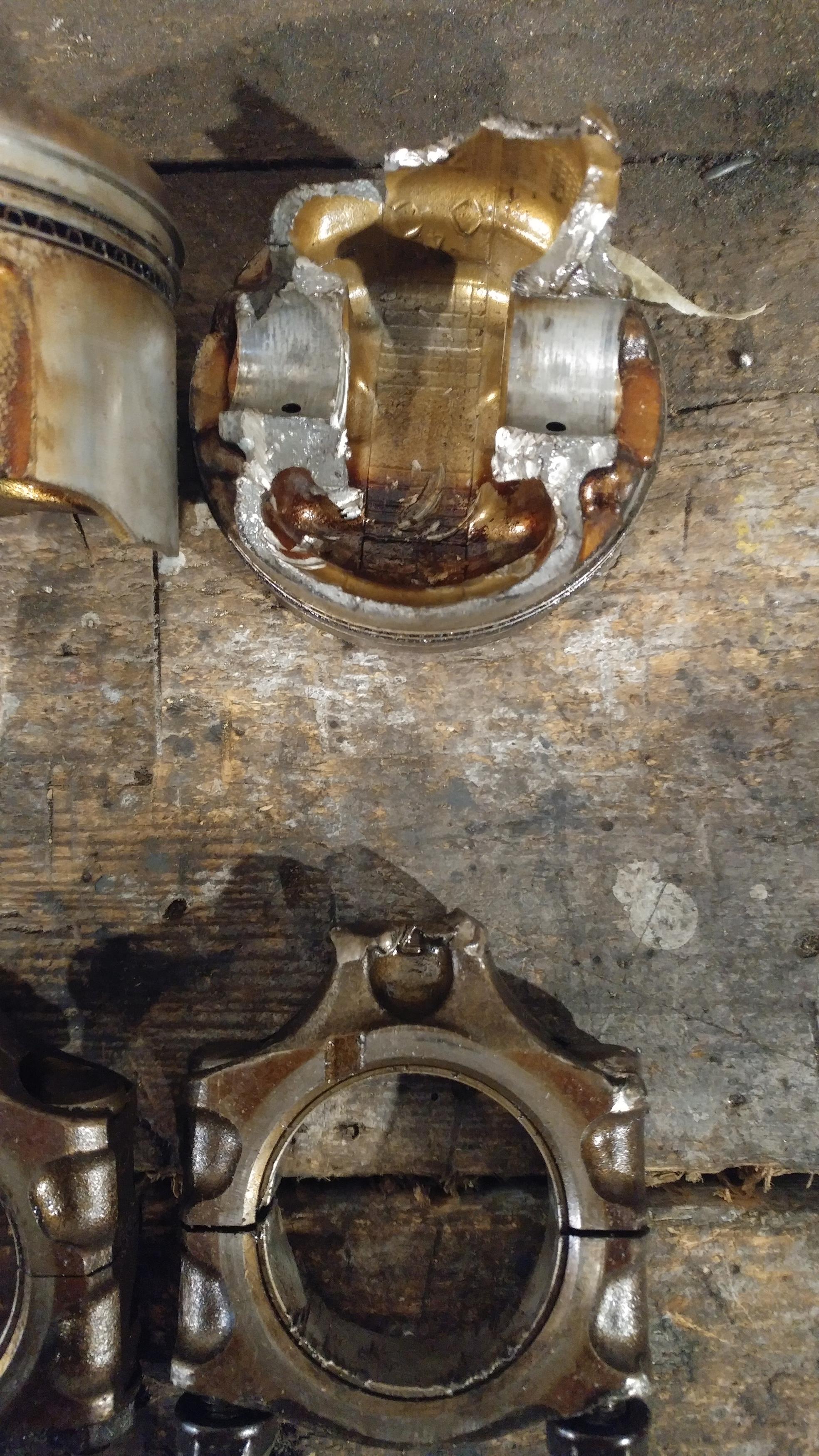 Wybaczcie że post pod postem. Rozebrałem silnik i wielkiego zaskoczenia tutaj nie ma. Cały dół jest na śmietnik, żadna korba, wał się nie ostały, wał gdyby nie dostał kawałkiem korby byłby pewnie do użytku ale w tej chwili podejrzewam że byłby nie do wyważenia. Głowicę mam nadzieję uratuję bo nie wygląda źle, nastąpiła kolizja tłoka z zaworami wydechowymi na garze gdzie był wybuch, tłok dosłownie pękł na pół, zawory się wygięły i nie są do końca domknięte. Elektrody świec dosłownie białe od zbyt szybkiego zapłonu i stuku. Wszystkie panewki bez jakichkolwiek śladów przytarć więc dotychczasowe upalanie na 0.5b nie odcisnęło żadnego piętna na silniku. Tak wygląda właśnie balansowanie na krawędzi wytrzymałości podzespołów silnika, cienka to krawędź.