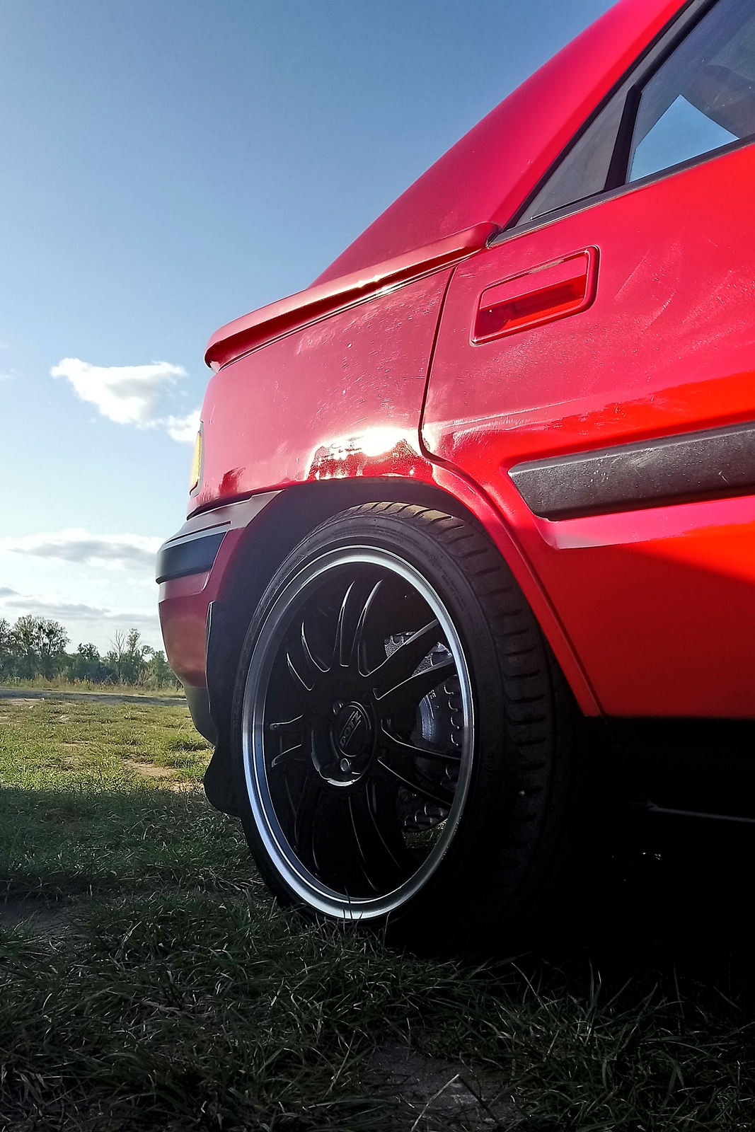 Poza tym poniżej dwa zdjęcia, nadkole obecnie wygląda tak (mówiłam znajomemu, że będzie szła Mazda do lakierowania, więc zrobione na szybko, byleby było), ale przy okazji widać w jakim stanie jest ogólnie lakier, tragicznym (jako miłośniczka detailingu nie mogę na to patrzeć, a polerować już nie ma czego):