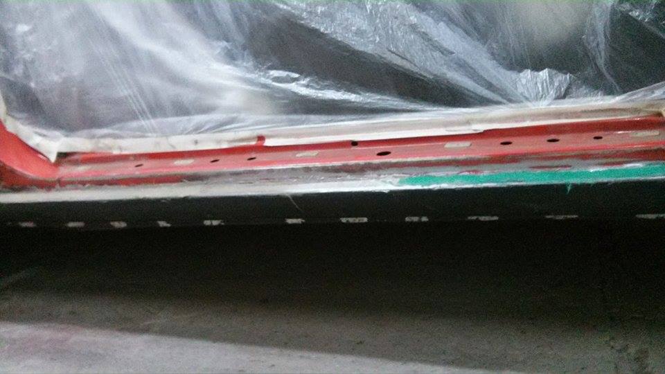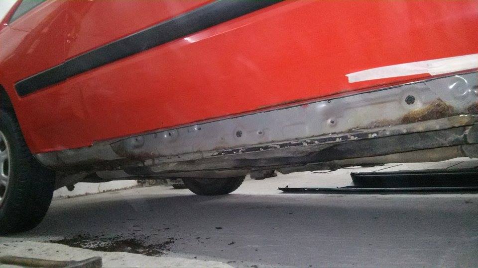Progi już na miejscu pospawane i po szpachlowane. Zderzak sklejony i również jest już przygotowany do malowania tak jak wyżej na fotkach. Konserwacja oczywiście że bedzie