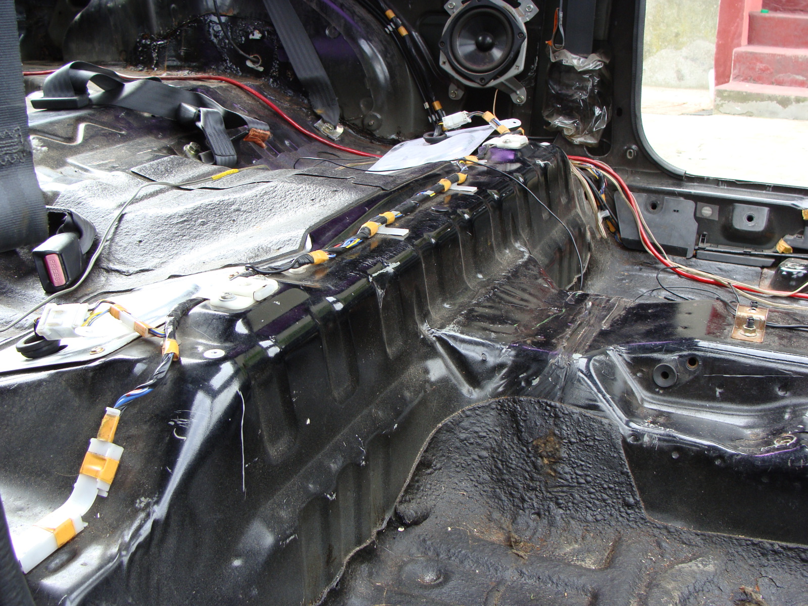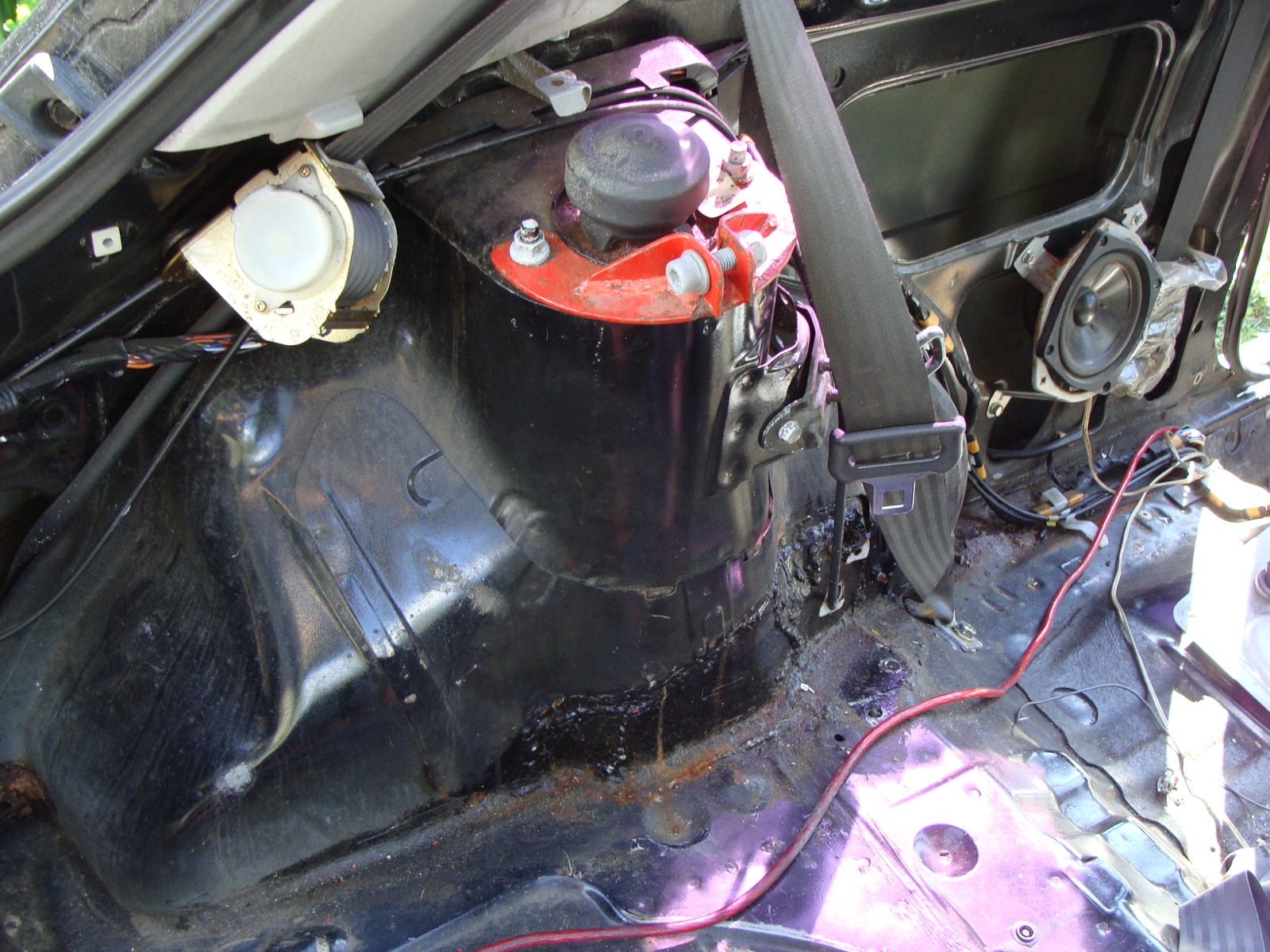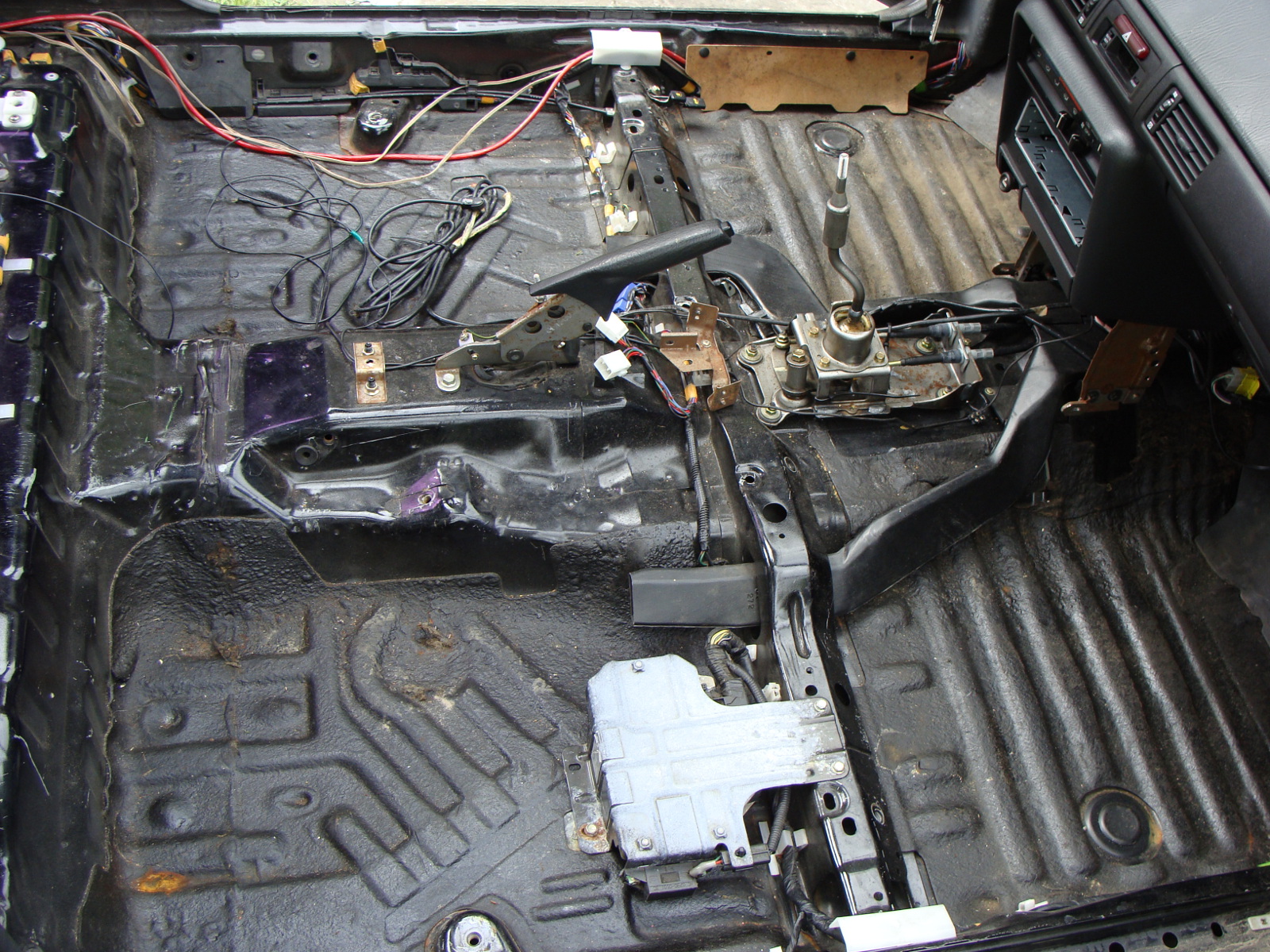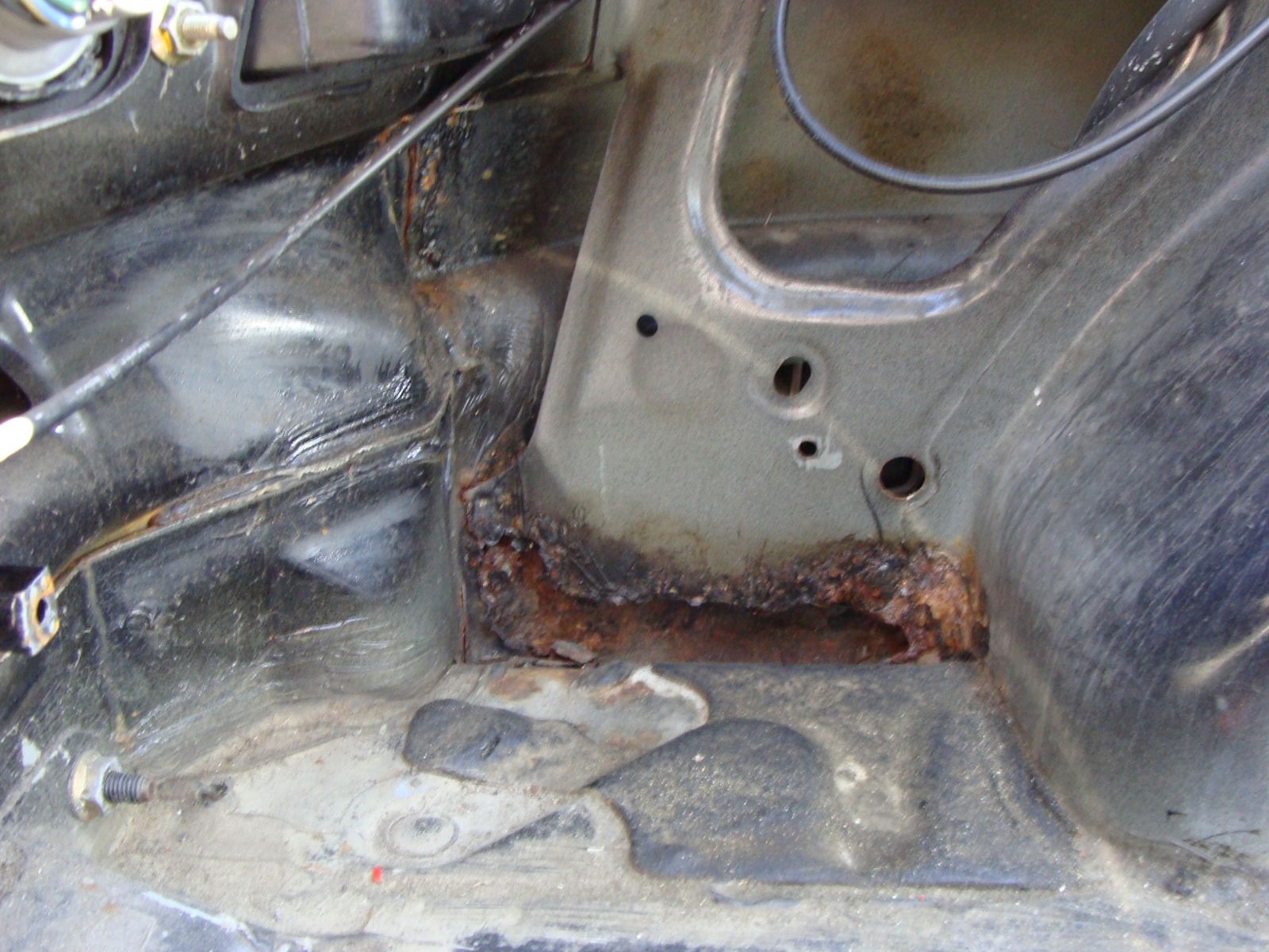 Podłoga żyje <jupi> Jak widać jest kilka miejsc do poprawek i sprawdzenia jak daleko ruda zaszła. Ale tragedii nie ma :) Lewe tylne nadkole było już wcześniej robione, poza tym nie widać większych ingerencji w blacharke wnętrza :)