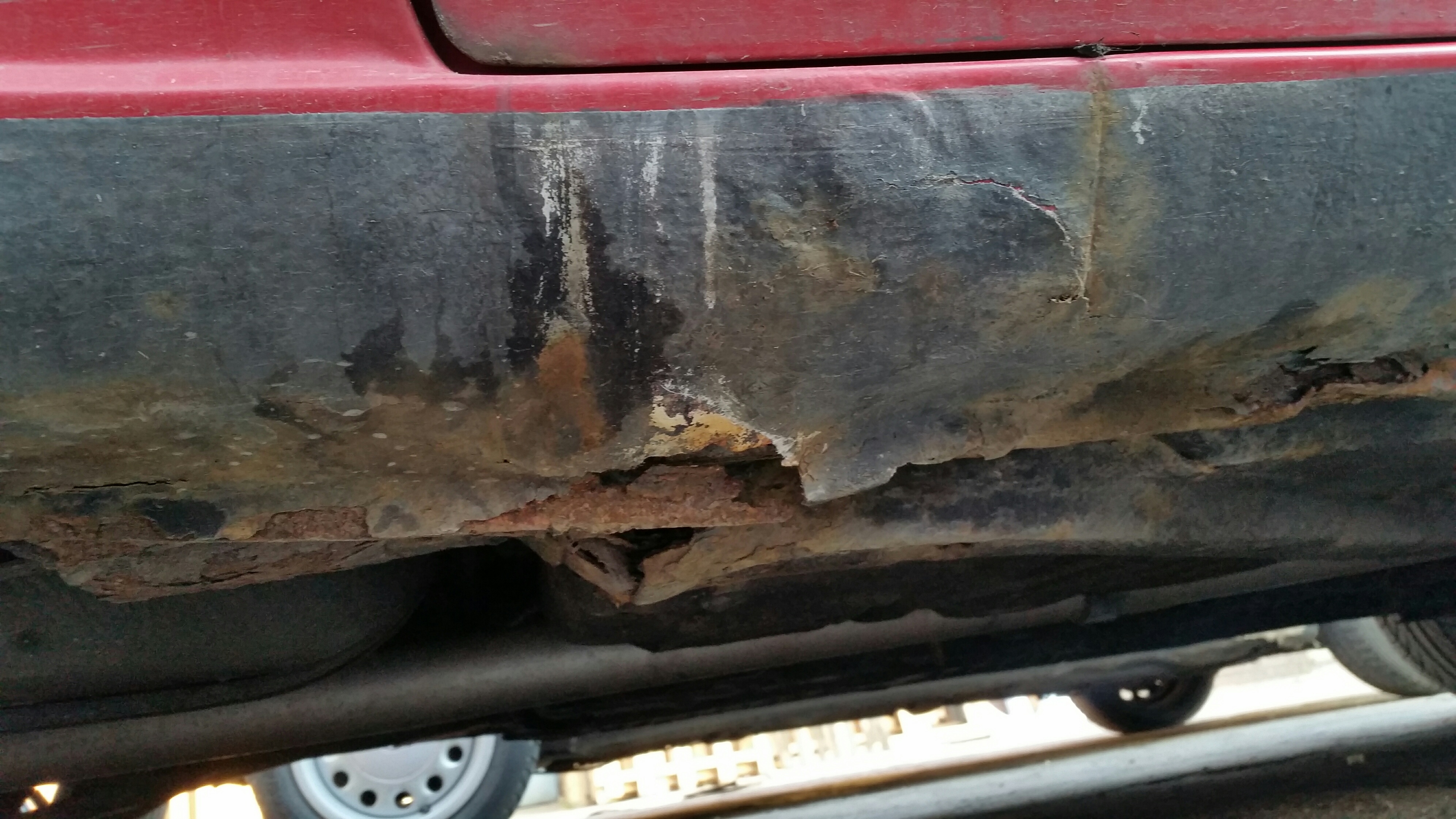 Z auta zbilem około 5 kg żywicy jakiś szkutnik zamiast spawac wszystkie dziury i ogniska korozji zakleil duża ilością żywicy. Zdjęcia nie oddają tego jak jest na żywo.