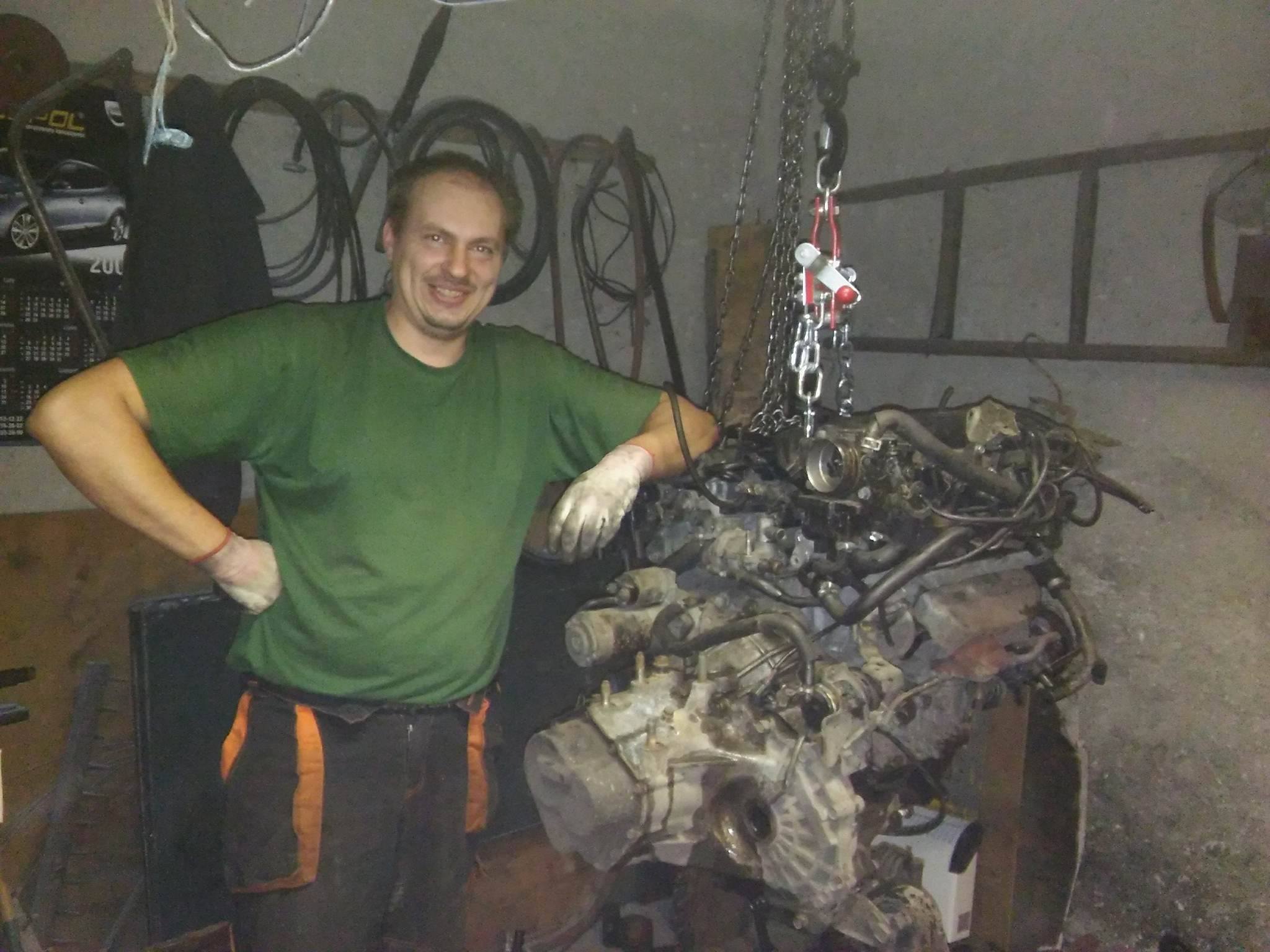 Poskładany silnik wrzucony w budę.