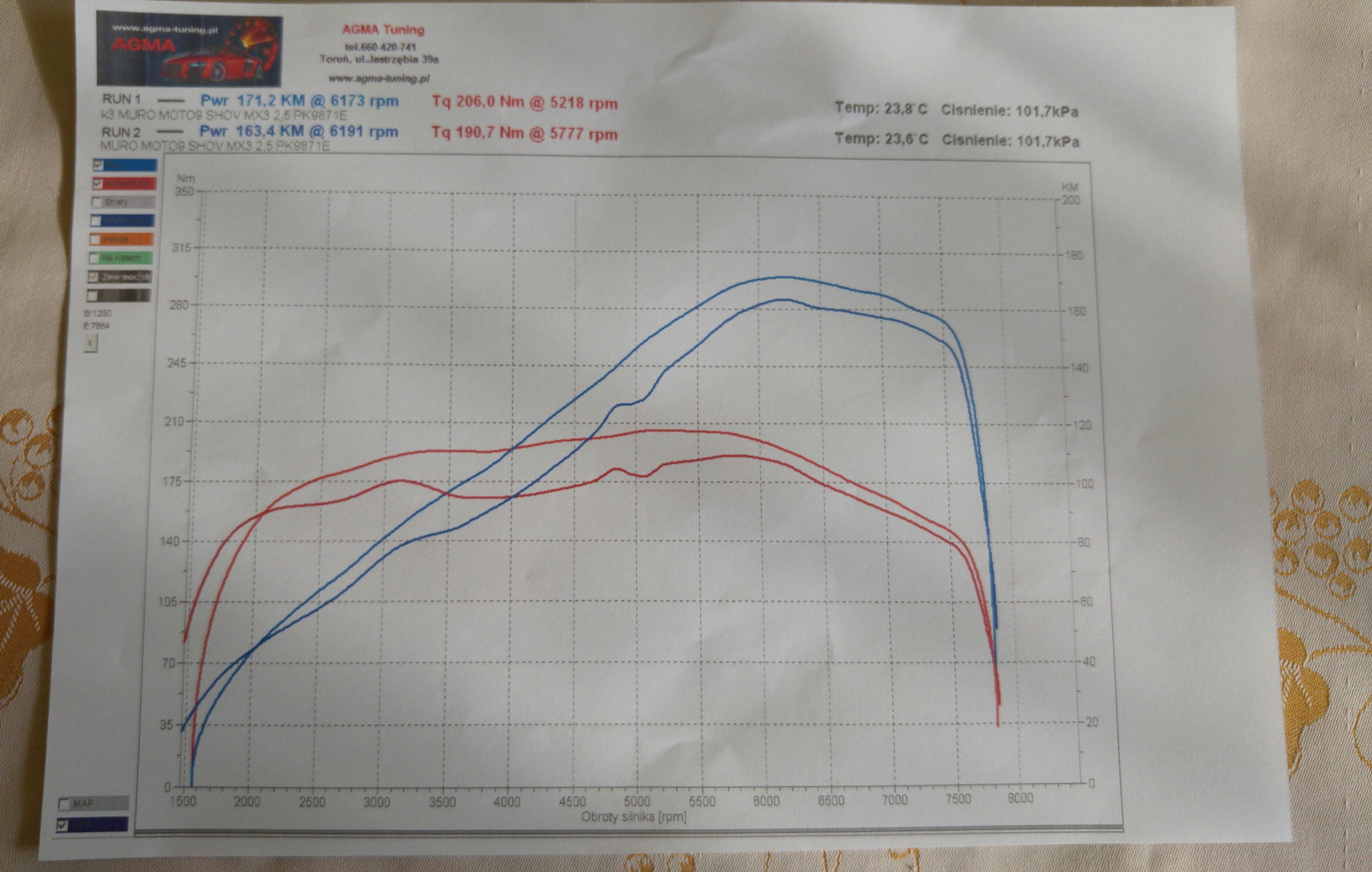 Wyplulo adisowi 164KM a mi na kompie od k8 pokazał ponad 170KM jeżeli chodzi o jazdę to czuć różnicę w momencie no bo to się odczuwa w mocy w sumie też jakaś jest z tym że już nie tak duża.