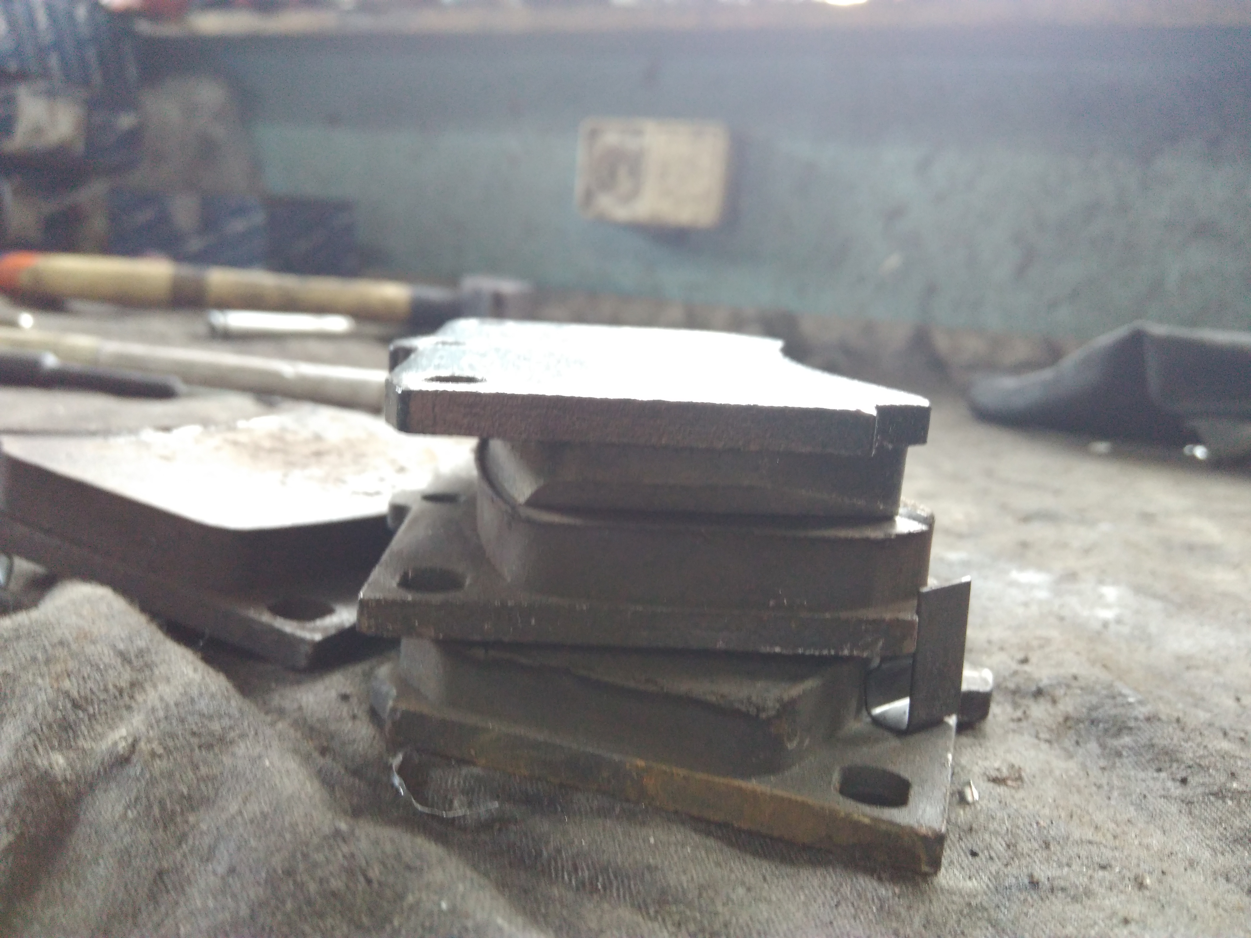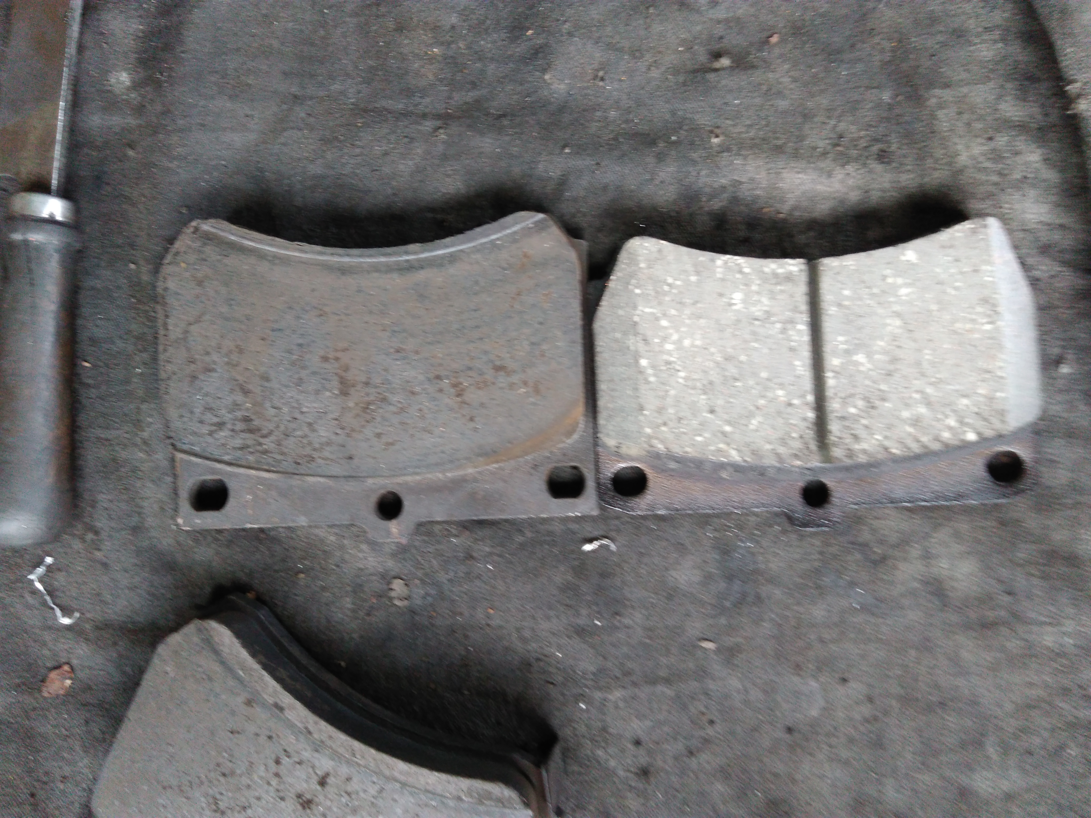 Zmieniłem klocki na te niższe(właściwe posunięcie-dlaczego widać na foto) kashyama mieszanka twarda,z tyłu okazało się że bębny nie mają praktycznie progu,a okładziny na szczękach są jeszcze na jakiś czas ok,ale cylinderki oba puszcczały więc wpadły nowe)