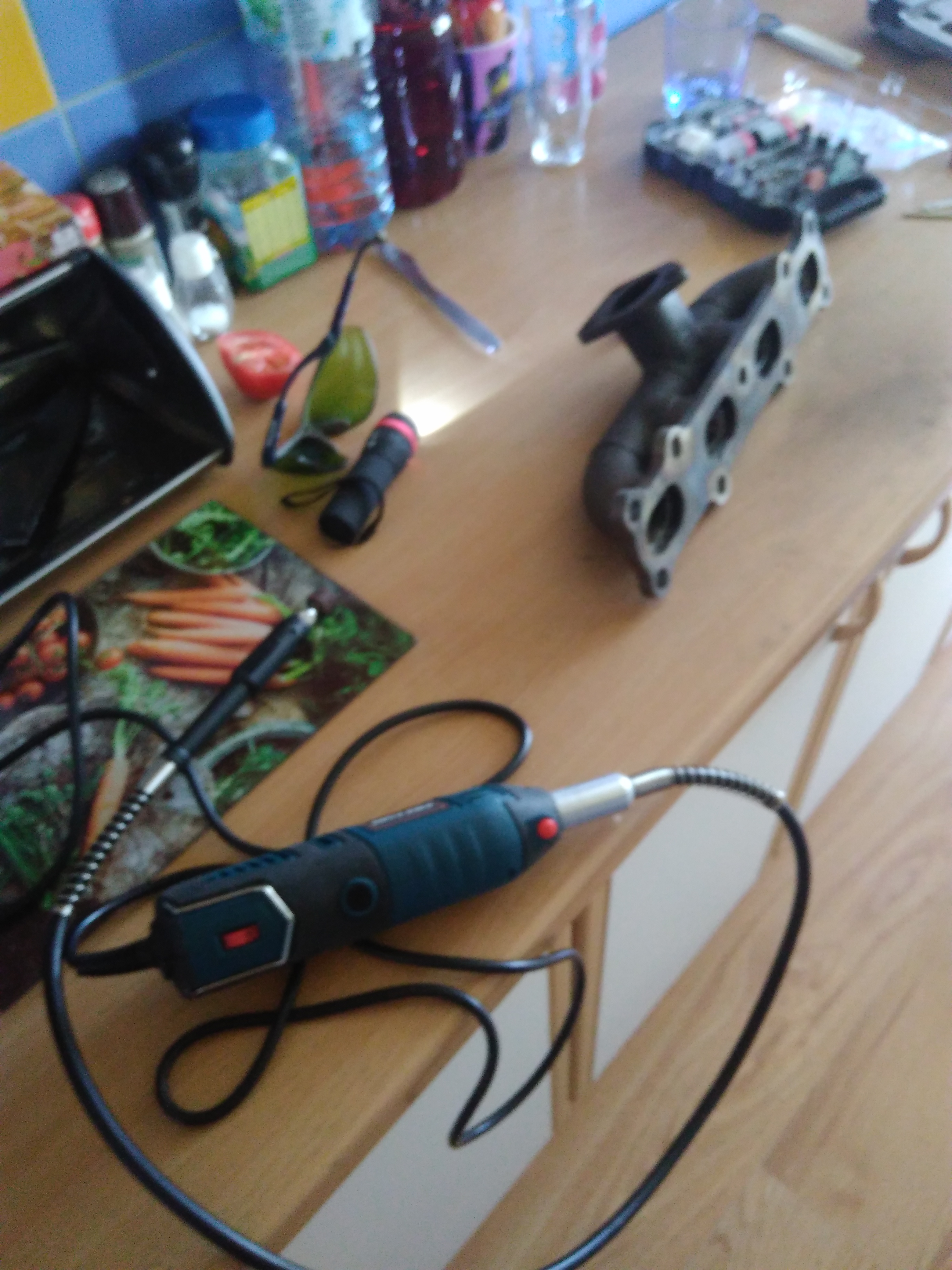 Przy okazji pobawiłem się dremelem i zlagodzilem stopnie w kolektorze.