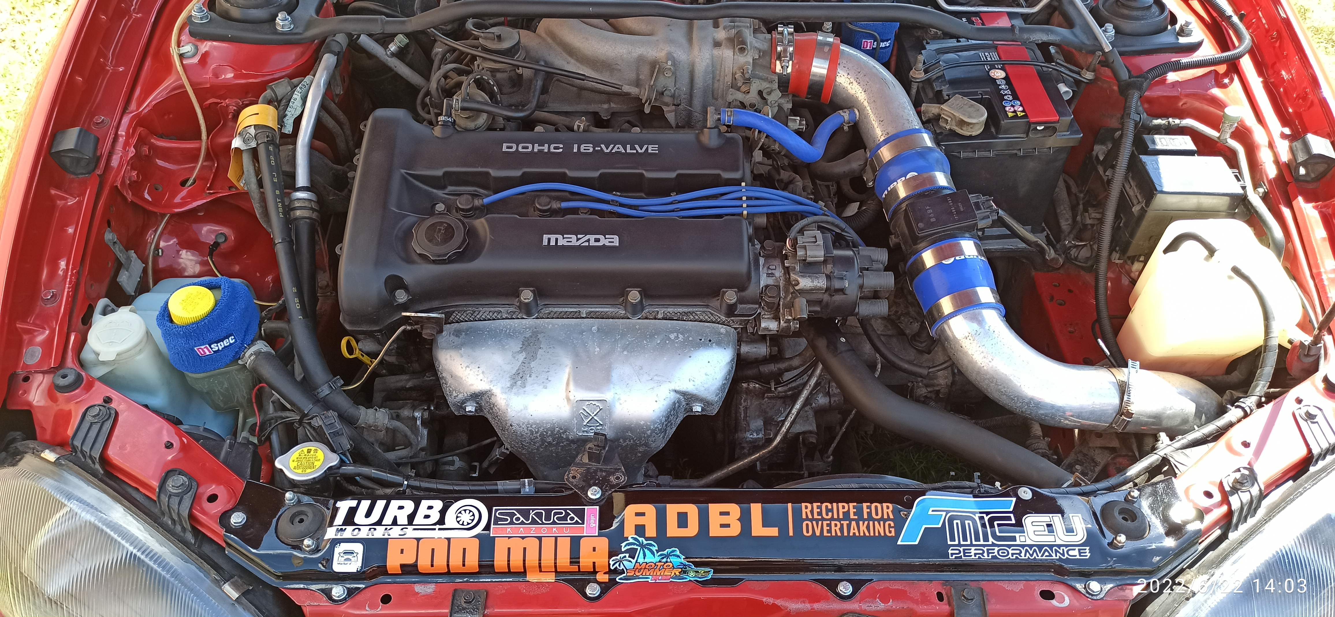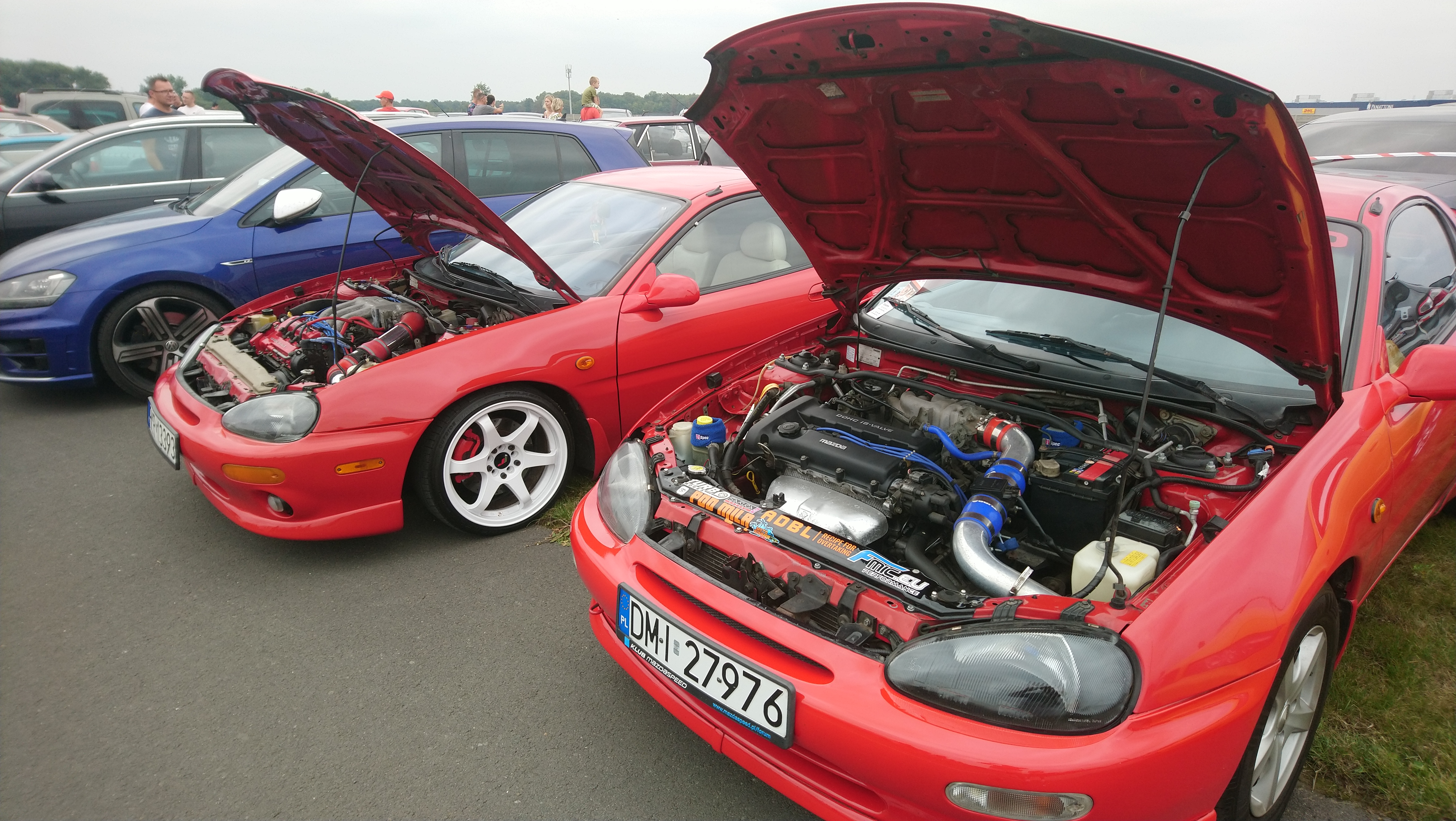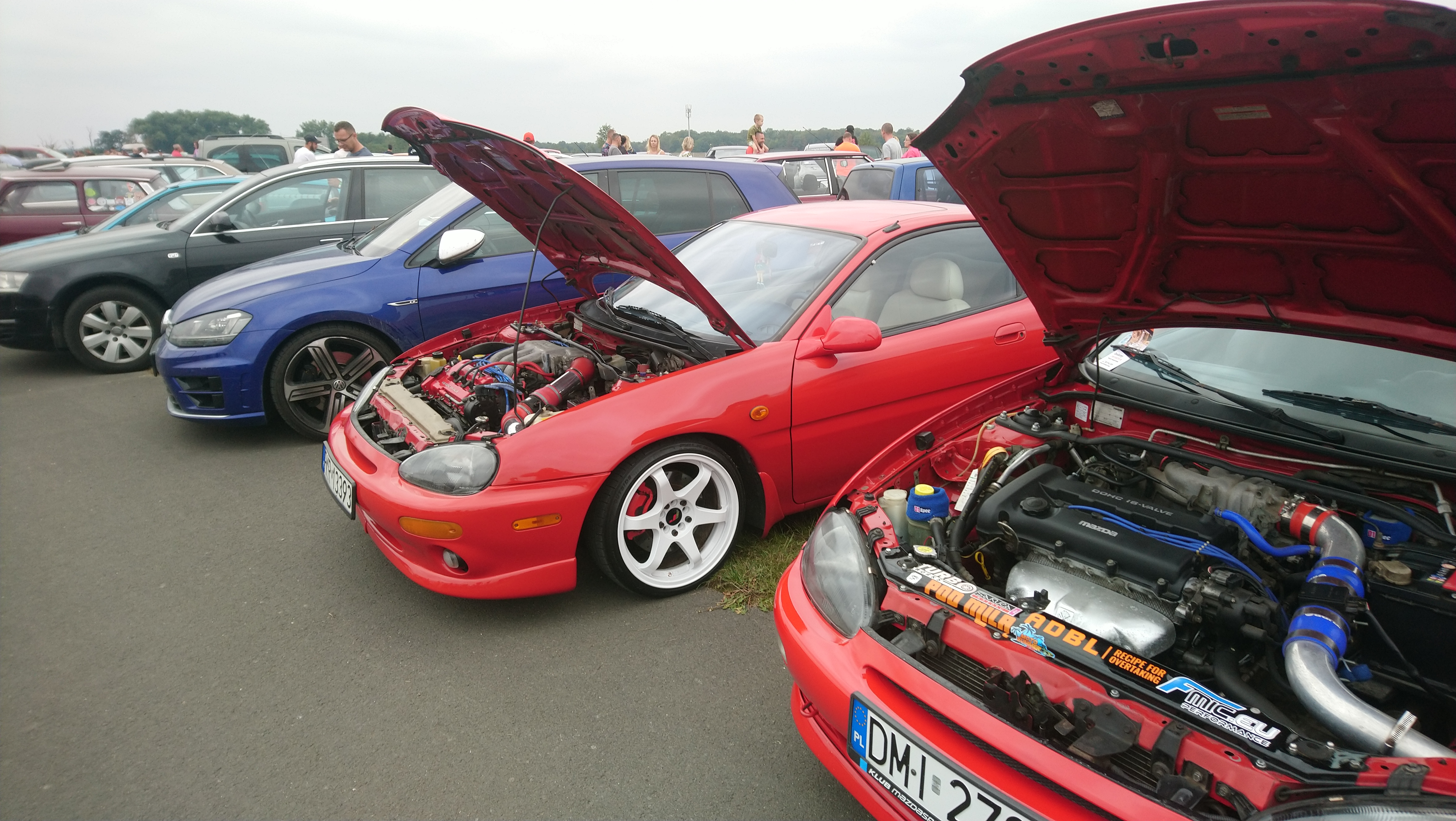 Mazda a w zasadzie Mazdy zaliczyły spota w Długołęce na parkingu salonu Mazda Wróbel. a przed spocikiem mała zmiana koloru felg, nowy rozrząd z pompą oraz paski osprzętu plus uszczelka pokrywy zaworów.No i oczywiście małe spawanko