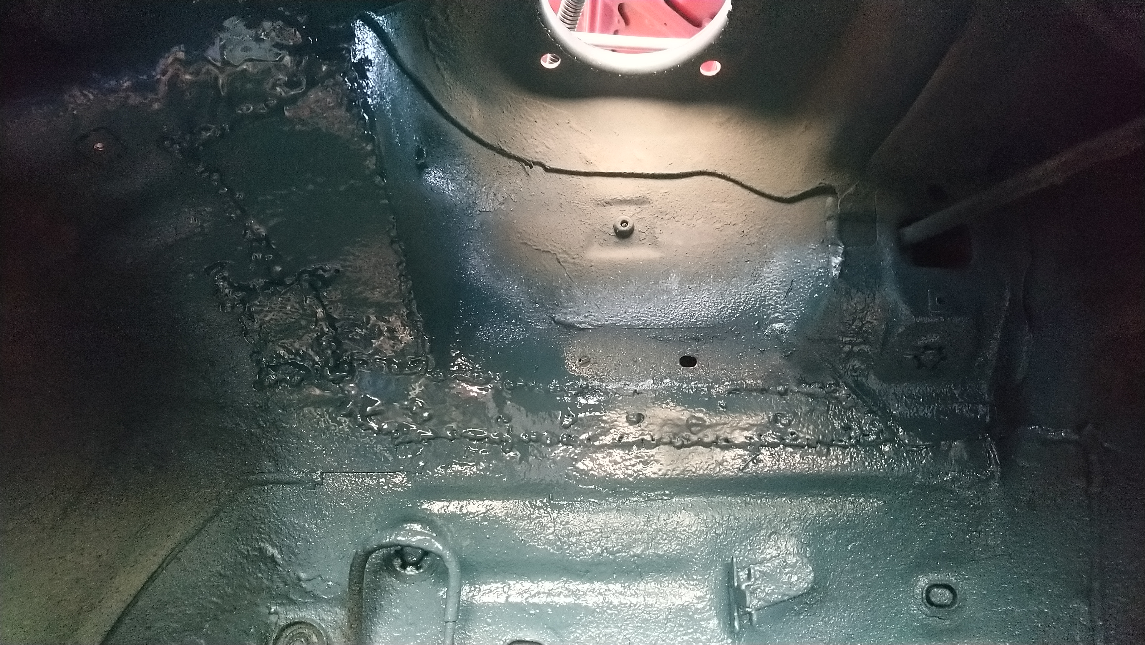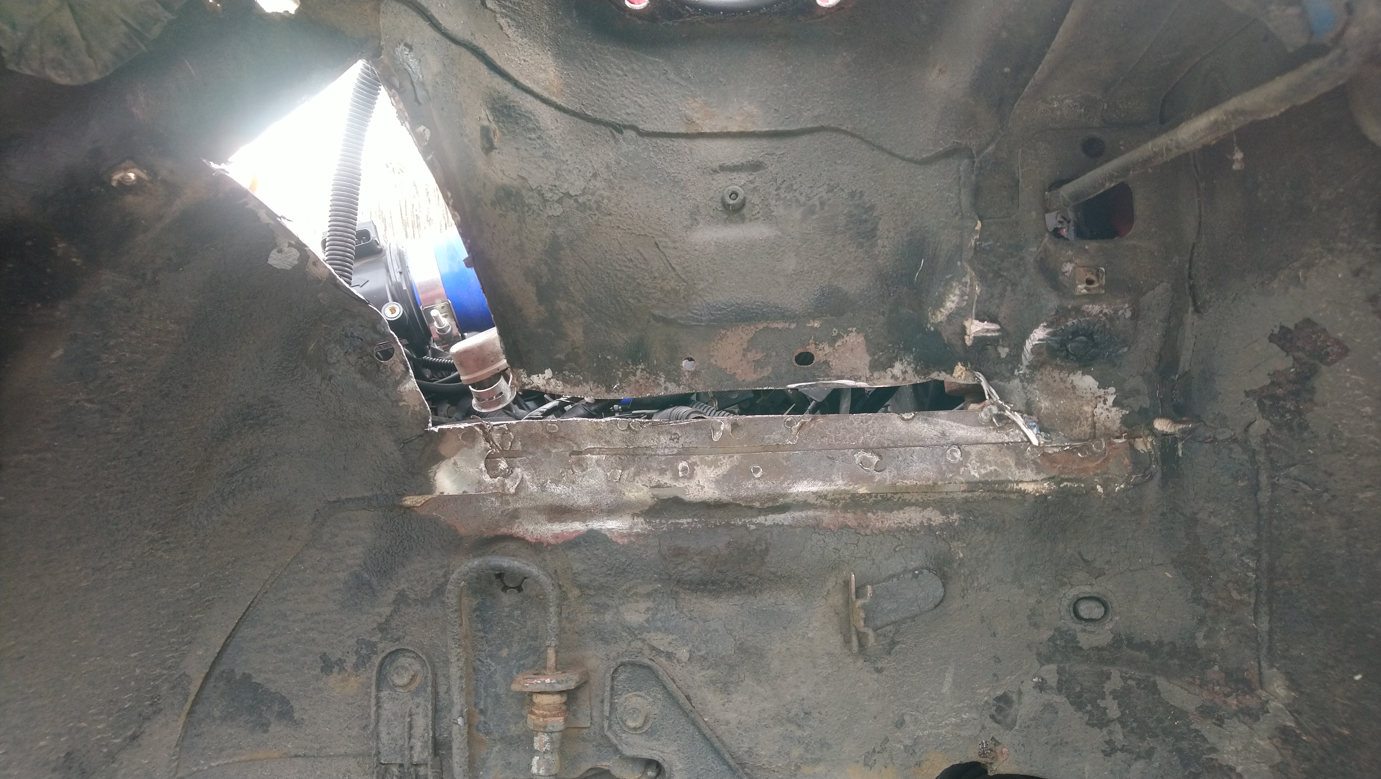 Jak jeszcze w miejscu tego paska nad podłużnicą gdzie blach grubsza tzn więcej warstw było oki, to już reszta to efekt zbyt mocno rozpędzonej lisicy a następnie źle ustawionej spawarki. Do tego jeszcze blacha do łatek to poszycie drzwi z jakiegoś Seata prawie 2 x grubsza. Może przy następnej okazji wstawię ładniejszą łatkę i oszlifuje spawy