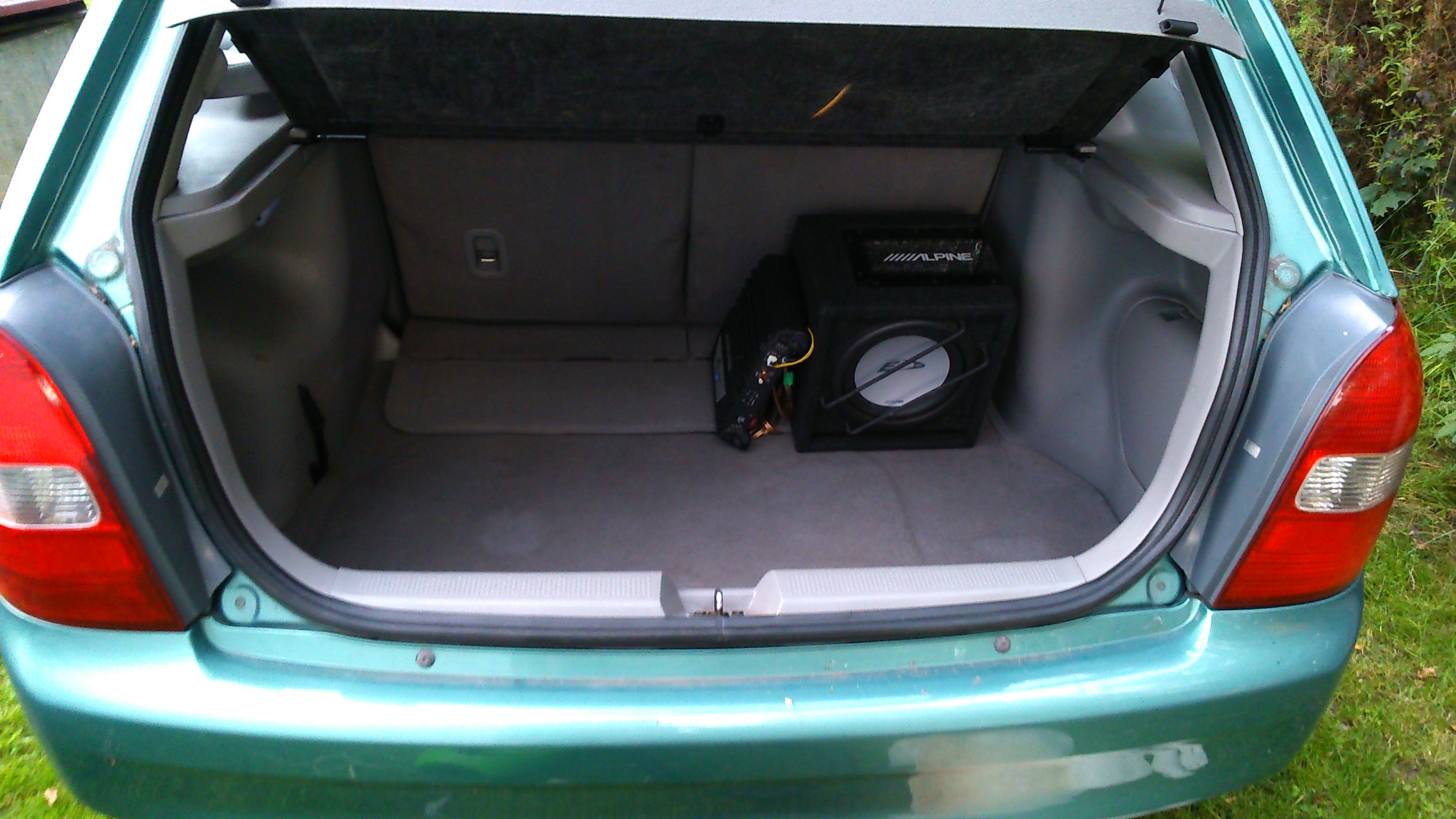 -subwoofer alpine + wzmacniacz alpine 120 podpięte pod seryjne radio