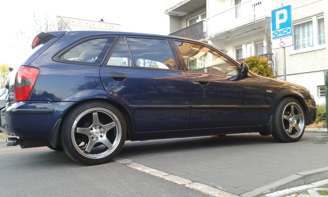 Witam wszystkich entuzjastów modelu 323...pozostałych również.Korzystając z chwili chciałbym pochwalić się moją EFKĄ , którą eksploatuję od ponad 2 lat.Zakup oczywiście przemyślany i po rocznych poszukiwaniach udało mi się nabyć tą oto mazdeczkę...Ze względu iż jestem osobą niepełnosprawną ruchowo(tzw.wózkowicz)auto musiało być w automacie...ale skrzynia posiada tryb SPORT zatem nie jest tak źle kiedy ruszam spod świateł :D Ogólnie autko zadbane,jestem drugim właścicielem(pierwszym w kraju)138.000 oryginalnego przebiegu...teraz 156.000 <ok> Kosmetyką mazdy zajął się mój serdeczny kolega Mareczek,który profesjonalnie zajmuje się polerką lakierów i nie tylko ;) Ogólnie typowa seria,ale po moich zmianach chciałem ją jeszcze bardziej wzbogacić wizualnie i mechanicznie...mam nadzieję,że efekt może być,ale o gustach podobno się nie dyskutuje ;)