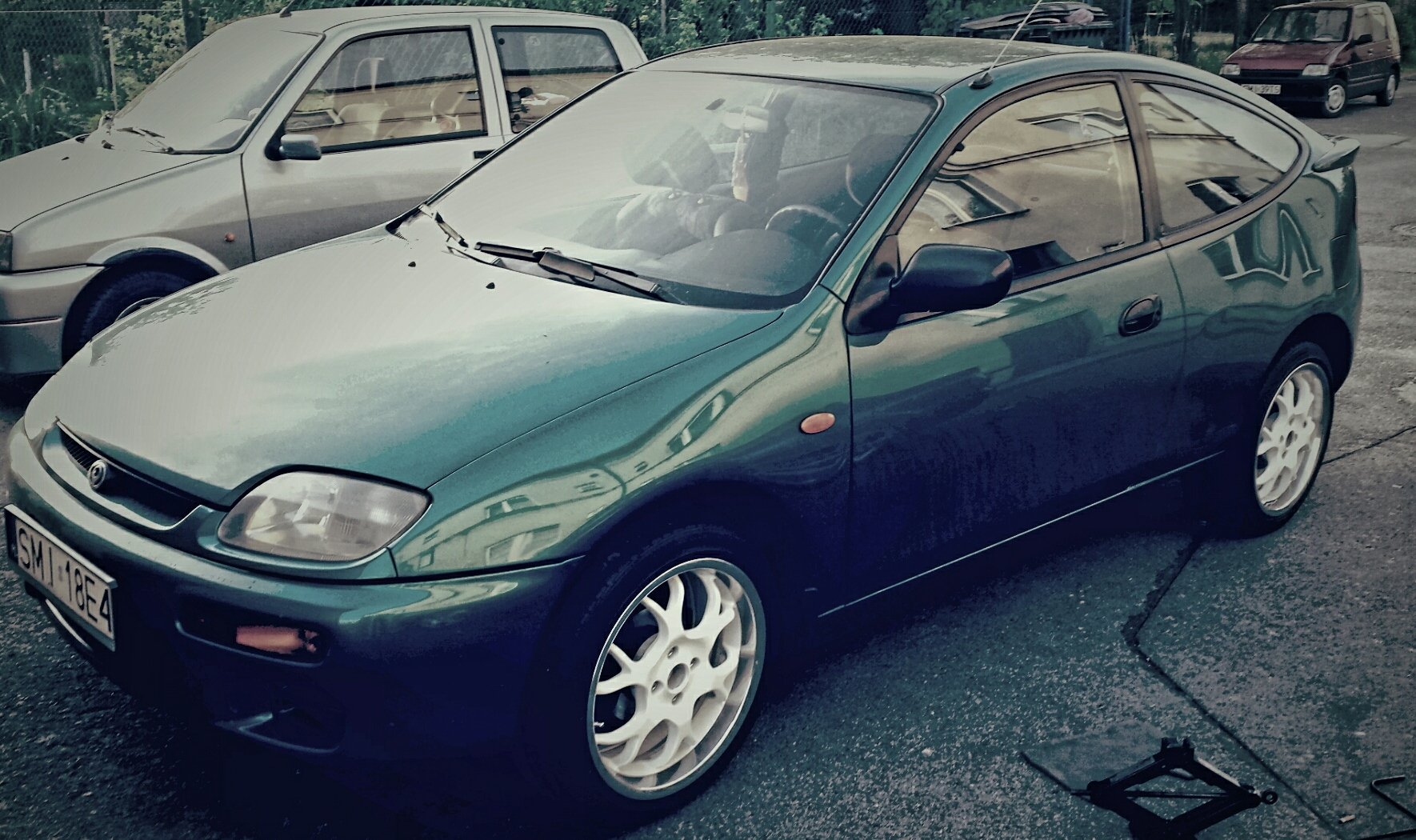Mazde posiadam gdzies od 3 lat. Jednak sluzyla mi tylko jako zwykly samochod zadnych modyfikacji . Od dwoch miesięcy staram się to zmienic . Zakup był zupełnie przypadkowy , ponieważ nie brałem tego samochodu pod uwagę nawet nie wiedziałem że taki istnieje . Jednak po dłuźszych poszukiwaniach pierwszego samochodu mając do wyboru mazde 323c lub fiata bravo ^^ wybrałem mazde. Po zakupie samochod służył tylko jako wozidełko do pracy i spowrotem wymieniane tylko części eksplatacyjne aby utrzymać samochod w miare dobrym stanie . Teraz mam plany zrobic z niej coś ciekawego .
