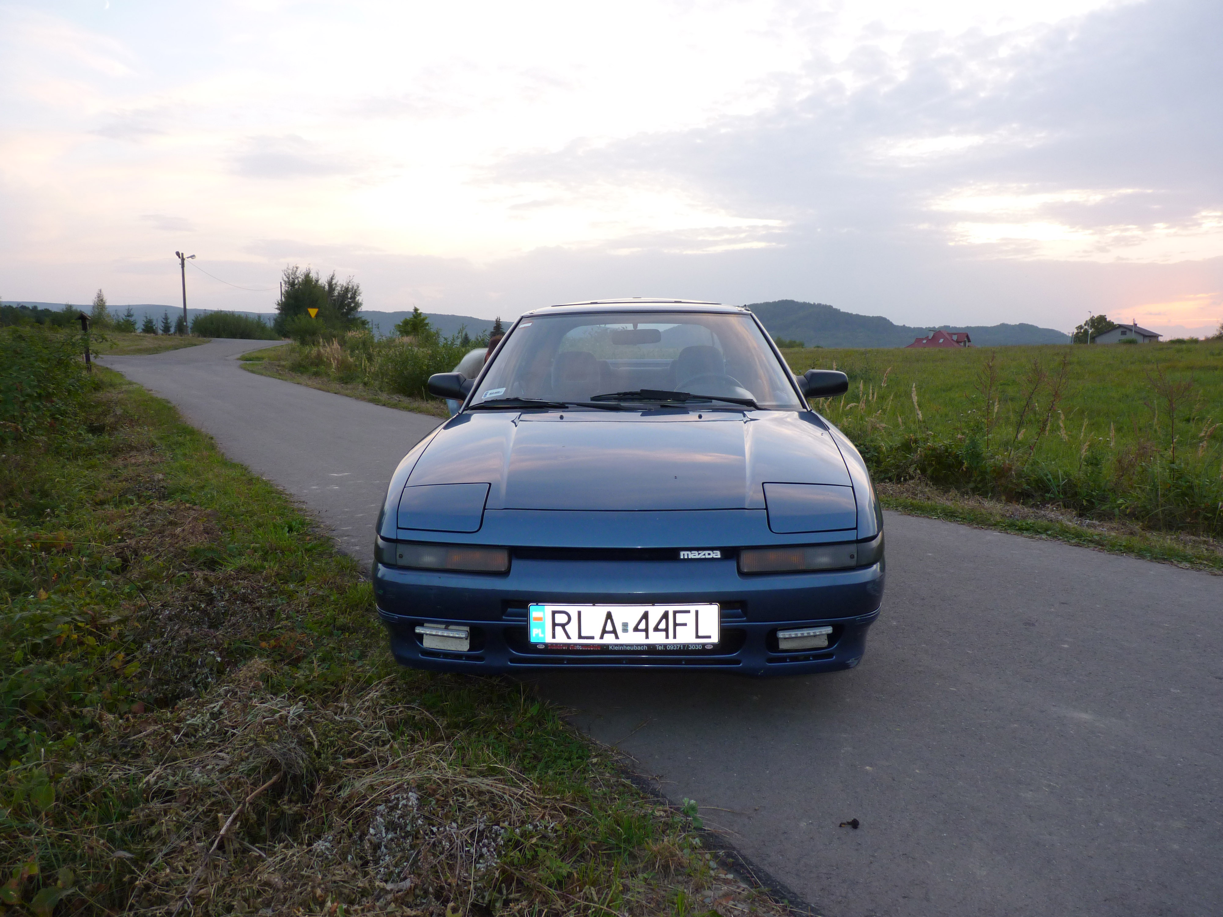 Od dziecka marzyłem o tym bolidzie. Szukałem, oglądałem i tylko załamywałem ręce. Jednak jakiś czas temu wypatrzyłem coś interesującego na olx. Nie zastanawiając się długo pojechałem z nadzieją, że będzie to ta wymarzona. Pooglądaliśmy, przejechaliśmy się i już mazda wróciła ze mną. Podczas oględzin byliśmy z kumplem lekko w szoku ponieważ auto jest w oryginalnym lakierze, nie malowane, nawet nigdzie nie zakonserwowane, a w bagażniku jest fabryczne koło zapasowe nigdy nie używanie i o dziwo nigdy nie odkręcane z tego bagażnika. Auto jest z 1991 roku, pod maską mruczy 1.8 SOHC, które nigdy nie widziało gazu. Przebieg w momencie zakupu to 234 tys. km. Auto kupiłem od dziadzia, który miał ją ostatnie 10 lat i sprzedał tylko ze względu na stan zdrowia, a gdy odjeżdżałem to się troszkę rozkleił. Dużym plusem jest to , że w zimie nią nie jeździł, zresztą mało co nią jeździł, bo głównie stała sobie w garażu na dywanie. Dziadzio, jak to dziadzio nie szalał, ale mechanicznie trochę zaniedbał. Mazda jest praktycznie w oryginale jedynie przeróbki to szyberdach, który mocno mnie denerwuje, lampy do jazdy dziennej (już są zdemontowane) i głośniki w tylnej półce. Mazda posiada fabryczny pakiet FOHA, który jest kompletny i nigdzie nie zniszczony. Auto kupiłem do jazdy na co dzień, jednak zanim to nastąpi trzeba ją do tego przygotować. Oczywiście jest trochę rdzy, ale porównując ją do innych bagietek jakie spotkałem, to nie ma co porównywać, bo jest jej naprawdę nie wiele. Ok, tyle gadania teraz fotki :