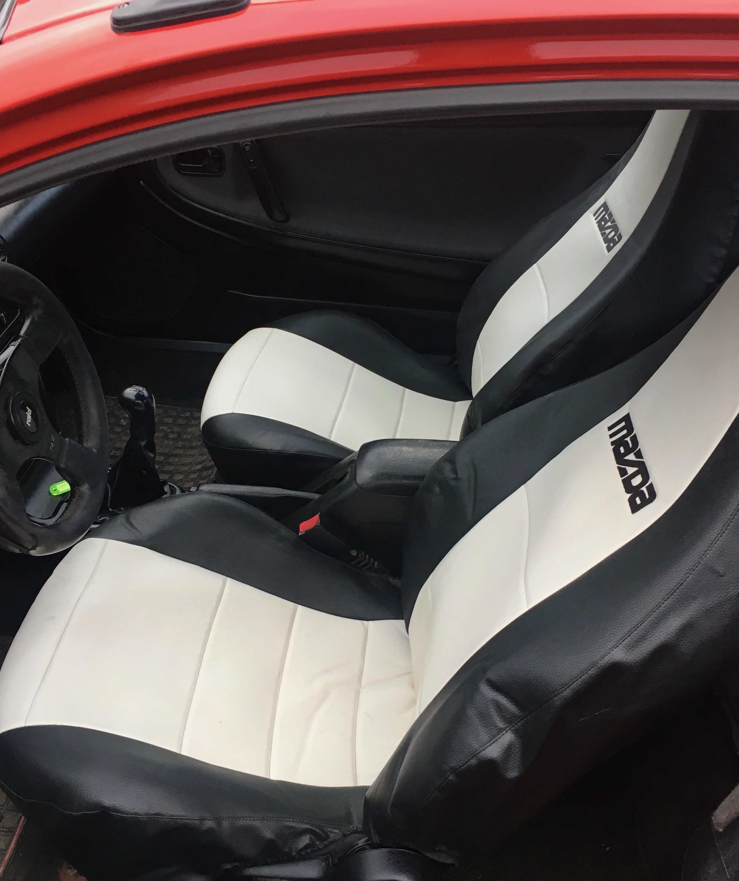 Oczywiście zostawiam czerwień, zmieniam felgi na czarne, zmieniam pokrowce.