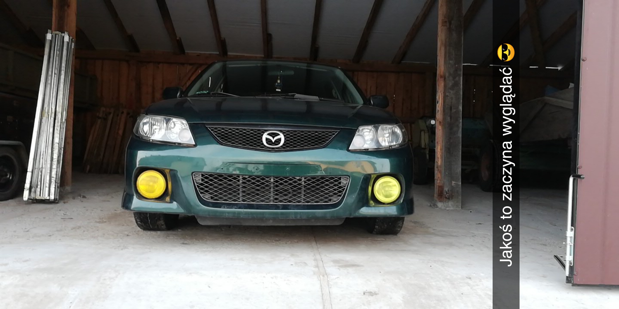 Zainteresowaniem do marki zaraził mnie kiedyś mój szwagier, więc kiedy przyszło kupić pierwszy samochód wybór był prosty – musi być mazda. :) Kiedy zacząłem się w tedy rozglądać i szukać odpowiedniego modelu, bardzo spodobała mi się wersja sportive modelu 323f BJ – niby prosty hatchback lecz inny niż wszystkie. Body kit od razu przypadł mi do gustu – halogeny ala subaru, dokładki na progi i tylny zderzak, większe felgi, pod maska przykuwająca uwagę rozpórka, we wnętrzu trójramienna kierownica nardi torino no i te białe zegary <serduszka> . Zacząłem więc poszukiwania, a łatwo nie było bo budżet był ograniczony. Na szczęście kiedy pojawiła się dobra sztuka kasą poratował mnie tata i tak oto sportive wylądował u mnie w garażu :D .