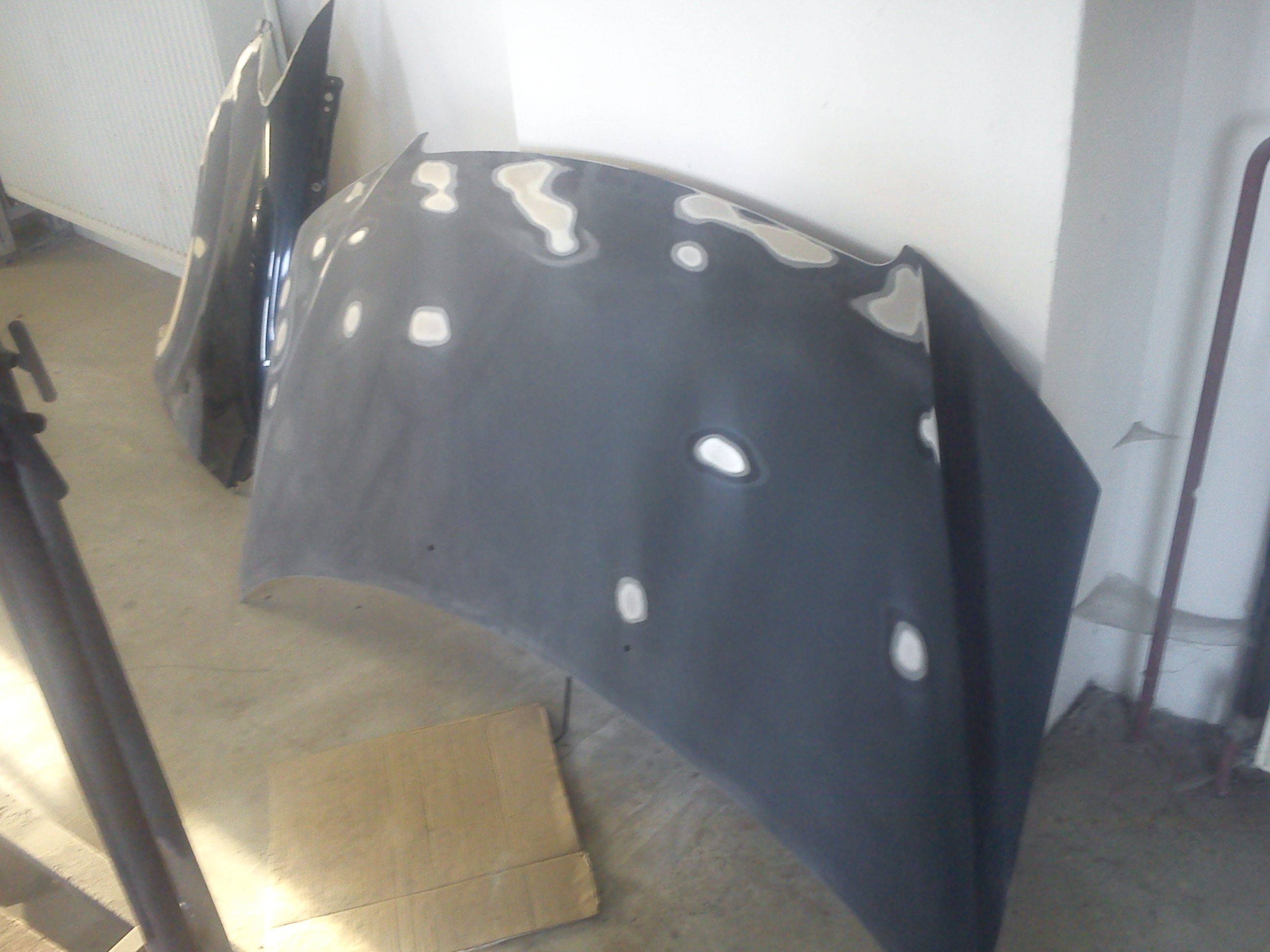 Sporo tego u ciebie wyszło . Pokazujesz zdjęcia maski i błotnika przed malowaniem a ja się pytam gdzie są podkłady przed lakierem . Sam ostatnio naprawiałem swoją maskę , została dokładnie przejrzana , ślady korozji usunięte , na to podkład antykorozyjny epoksydowy , akrylowy wypełniający i dopiero lakier .