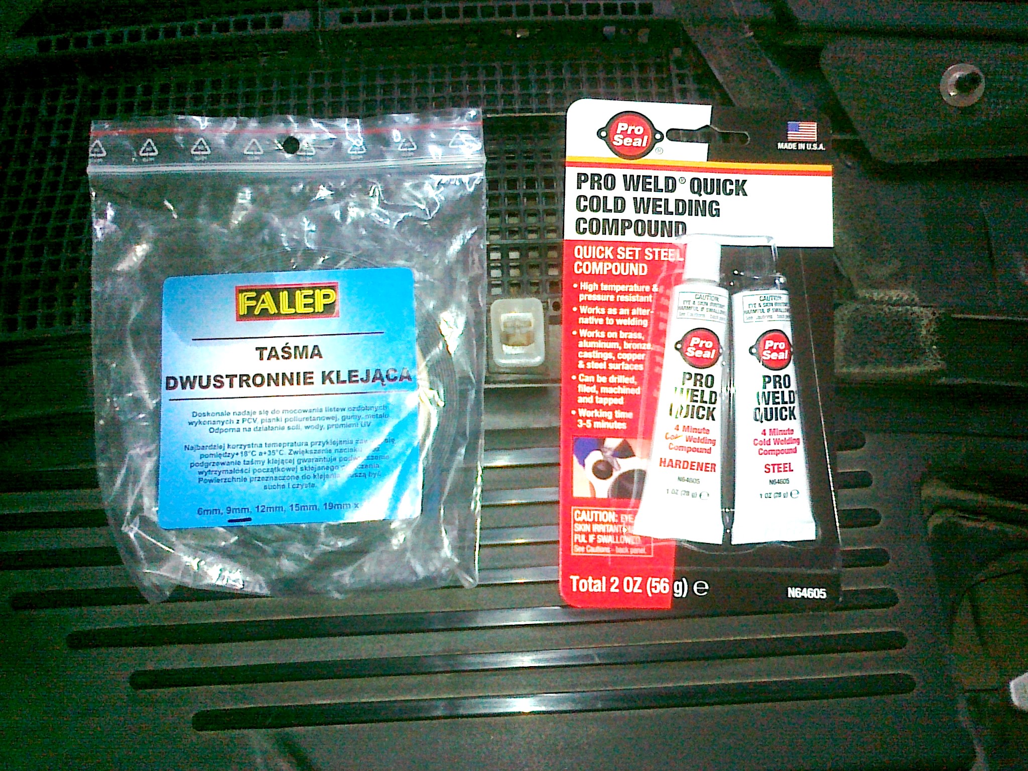 Z emblematów usunąłem resztki starej taśmy, następnie zostały zmatowione drobnym papierem ściernym i nakleiłem nową mocną taśmę dwustronną od spodu.