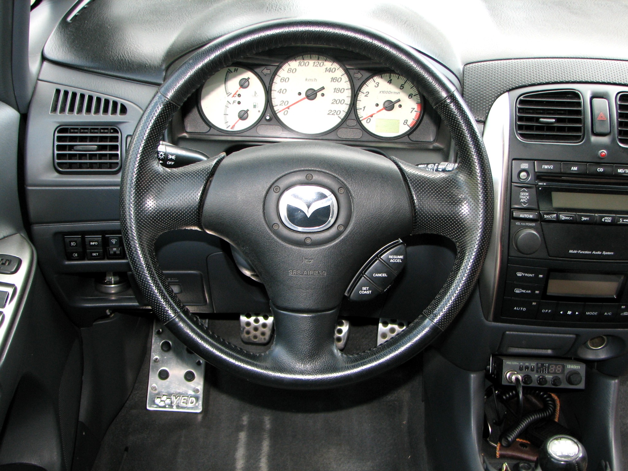Kierownica 3 ramienna faktycznie o wiele lepiej wygląda, ale przecież wychodziły kierownice do 323F i Premacy z takim małym pilotem od radia. Nie lepiej było taką upolować? Albo sam pilot?