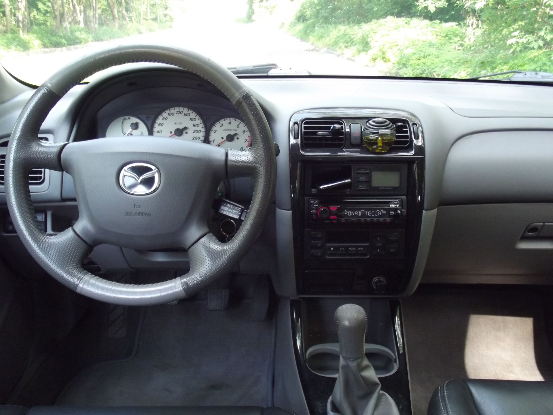 Mazda przyjechała na kołach bez jakiegokolwiek picowania, litrów wody do prania tapicerki itp trickow stosowanych przez handlarzy. Mogłem sie przyczepic tylko do lekko poszarpujacego silnika oraz przybrudzonego wnetrza ale jak mowia widziały gały co brały :D:D no i do ceny .... na drugi dzien pojechałem na przeglad i sie na szczescie zbytnio nie zdenerwowałem...Jak narazie zdążyłem wymienic olej na Excellium LDX 5W40 oraz filt oleju KNECHT. Został mi jeszcze rozrzad,gumy łącznika stabilizatora tył i serwis klimy która dmuchała cała droge do domu a pozniej przestała :D