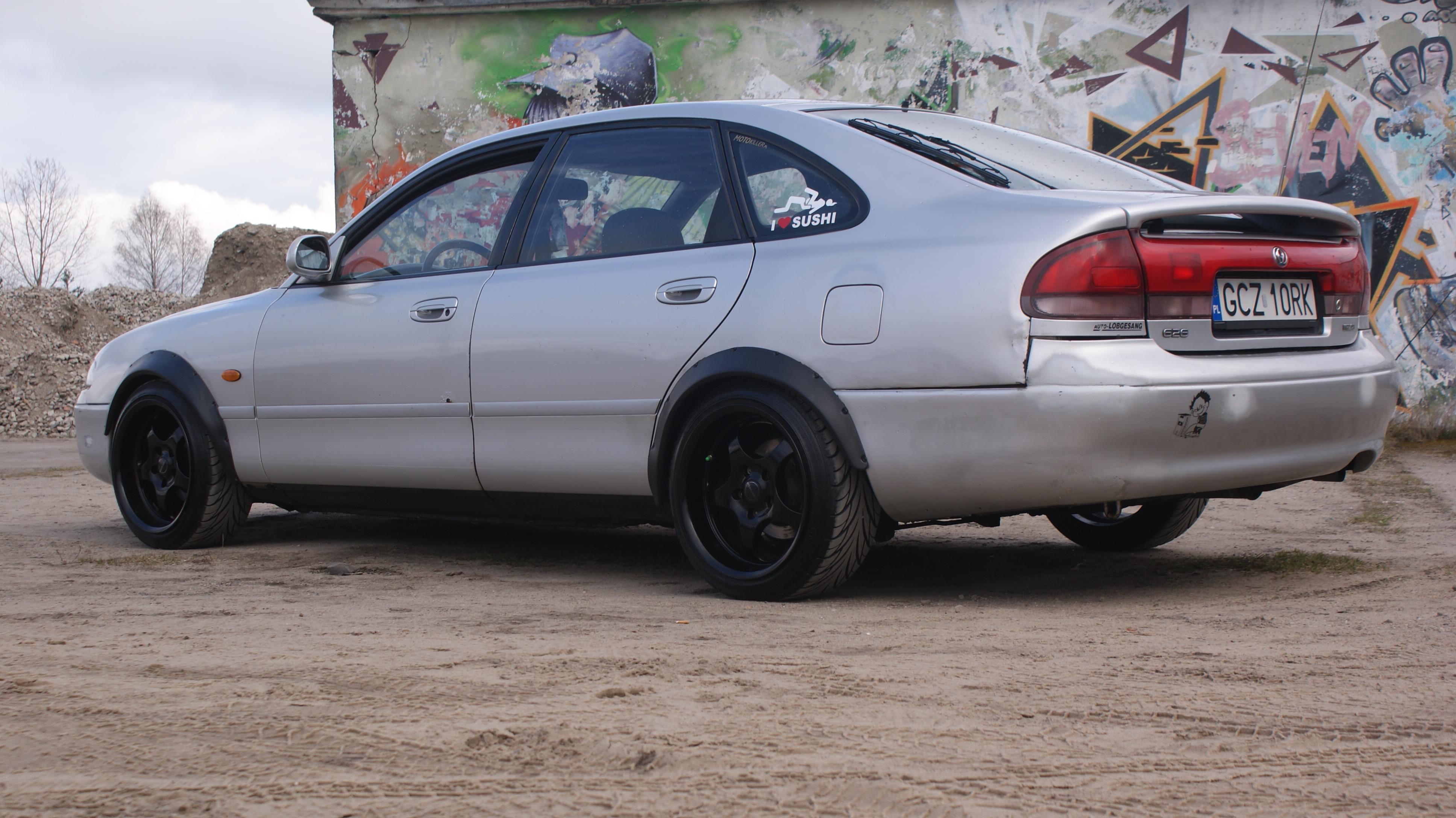 Witam wszystkich. Po 2 latach wkońcu zmotywowałem się, żeby wystawić auto na forum. Mianowicie Mazda w moim posiadaniu 2 lata odkupiłem od brata, a on miał ją od 2011 roku, którą sam sprowadził od swojego szefa w niemczech rodziny z przebiegiem najprawdopodobniej 115 tyś. km :D Ja przejełem auto w 2014 roku z przebiegiem 153 tyś do dnia dzisiejszego 197 tyś. km. W aucie silnik 2.0 16v 115km seria i lepszego wyboru nie mogło być. Każdy chwali te v6, ale mi nie podeszło. W niemczech na autobahnie rozwinełem prędkość 220km/h na orginalnyych kołach, gdzie producent podaje 196 km/h . <co?> W aucie wiadomo el. szyby, lusterka, antena od radia, centralny zamek na klucz ( i pilota dodatkowo założone), szyberdach, W każdym razie wszystko oprócz klimy. :( W zeszłym roku doszło parę drobnych modyfikacji, a mianowicie: