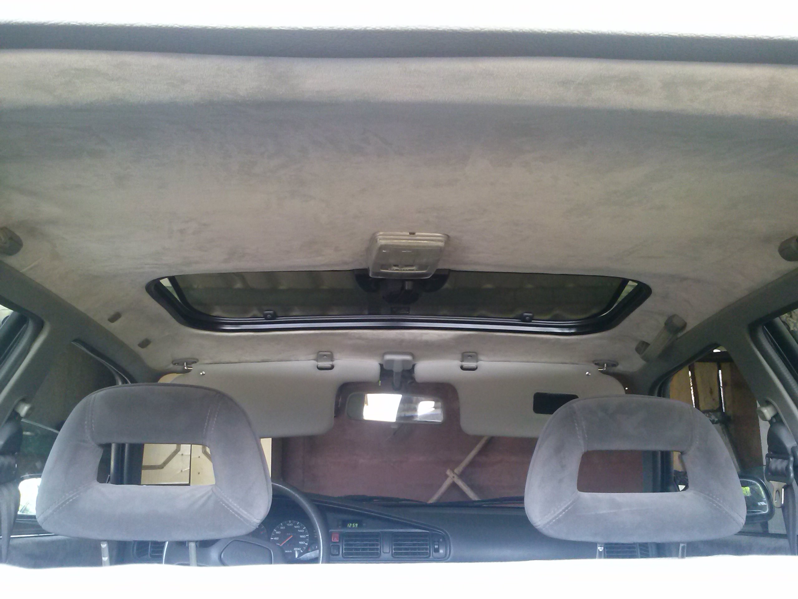 No i wszystko poskładane. Nowa podsufitka już w samochodzie. Kupiłem materiał przez neta oraz nowe daszki przeciwsłoneczne