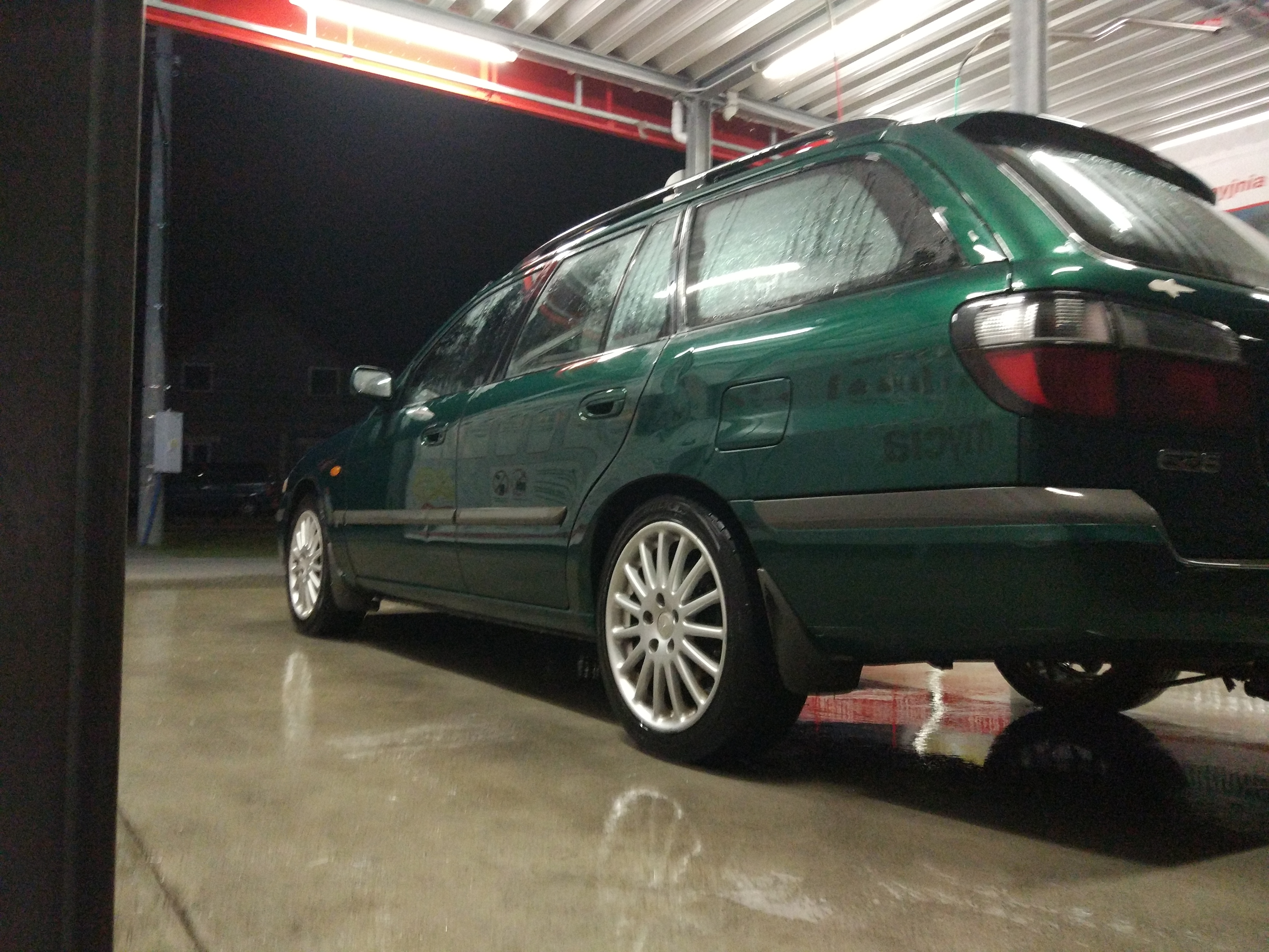 Madzia za tydzień śmiga na odpoczynek to też będzie w tym tygodniu porządnie odkurzana i czyszczona, może wyczyszczę tapicerkę sprayem do tapicerki(kolega używał w swoim volvo i zadowolony). Zdjęć zbytnio nie ma bo rozbiłem telefon i kolejne fundusze przeznaczone na madzie poszły w nowy telefon. Biedacka fota z myjni przed weselem :) no i są klubowe ramki jak i halogenik z warszawskiej śliwy :)