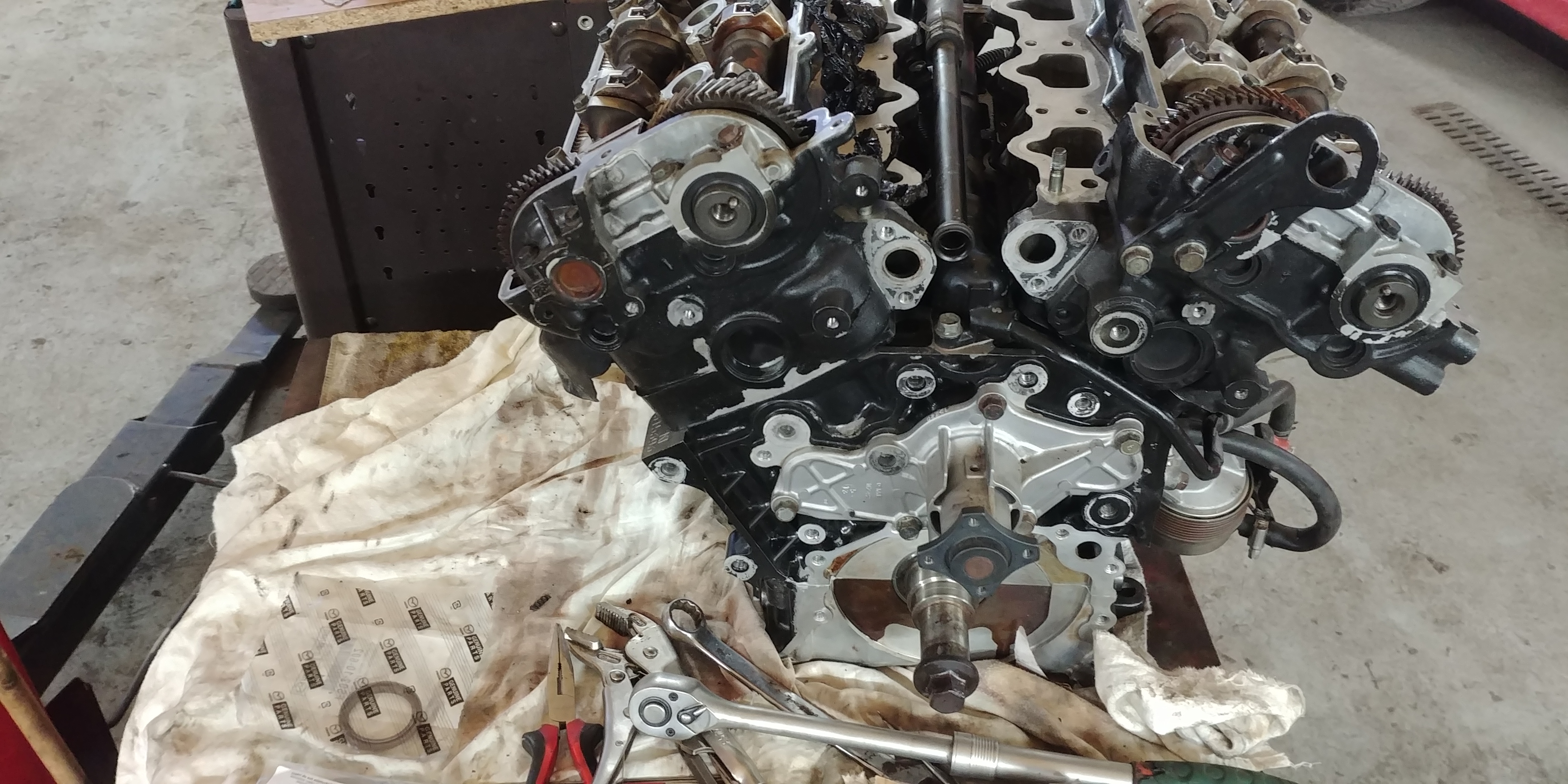 Silnik wyjęty i po diagnozie winna okazała się pompa oleju, po obejrzeniu panewek, nie tylko 6tą ale wszystkie w niedalekiej przyszłości spotkałby podobny los. A więc wymieniamy wał, panewki, pompę i składamy to do kupy. Potem ogarniamy gaz na lepszych gratach. A no i wisienka na torcie też będzie a jak to na mnie przystało nie jedna. Trochę gratów zjechało, reszta się kompletuje i niebawem auto powinno być gotowe.