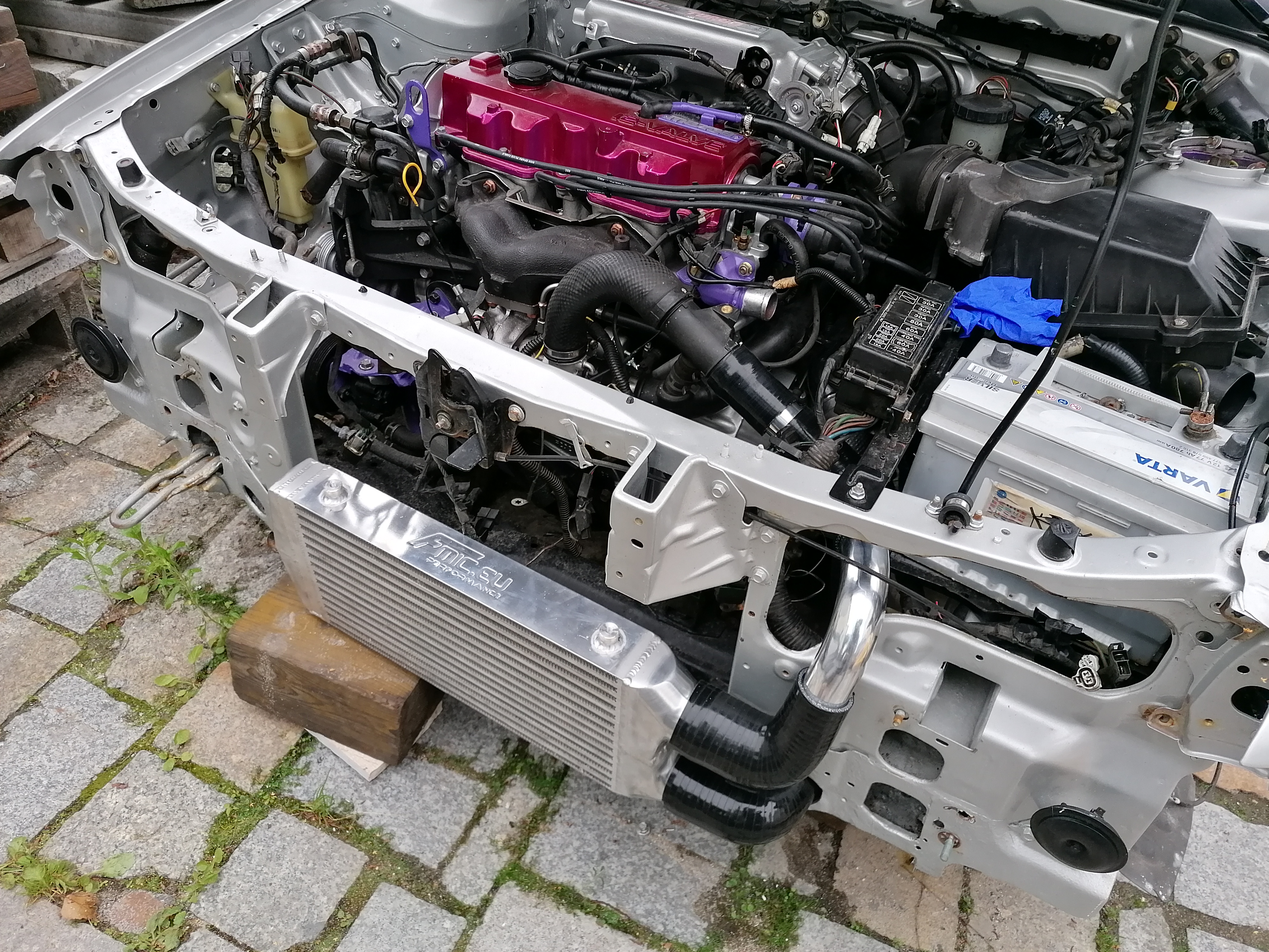 z tym, że jeszcze nie mam podpiętego Intercoolera. Przepustnica jest mechaniczna, wisi w "powietrzu" i ma tylko podłączoną wtyczkę, dlatego myślę, że od razu gaśnie po odpaleniu. Jak będę w weekend to postaram się podpiąć ICka ( o ile nie zabraknie mi jakiegoś silikonu) i myśle, że już motor zagada i nie zgaśnie