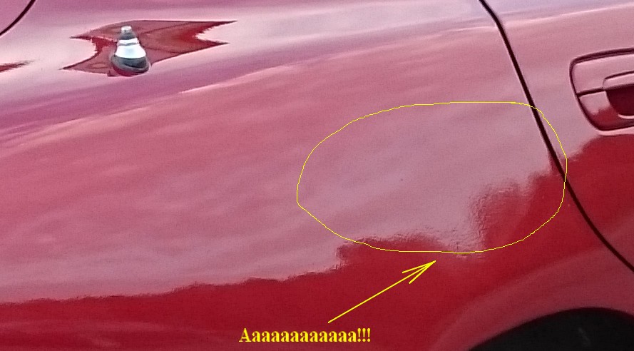 Doprowadza się detale do świetności, odświeża lakier a jakiś ....(piiip!) wjeżdża kołem suv'a na drzwi opuszczając parking! Tylne prawe drzwi przetarte do połowy na całej długości!!! Może będzie dało rady spolerować. Wgnieceń nie stwierdziłem. Załamać się można!