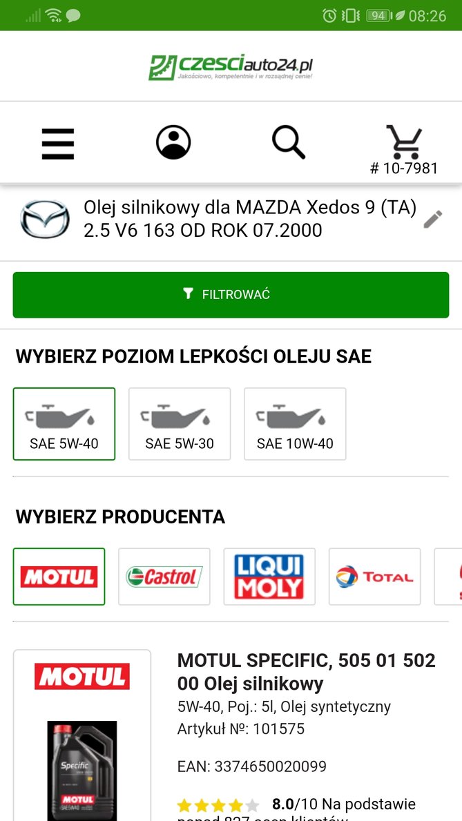 Dziś wymiana oleju i filtra. Tym razem trafiło na Specyfic z Motula