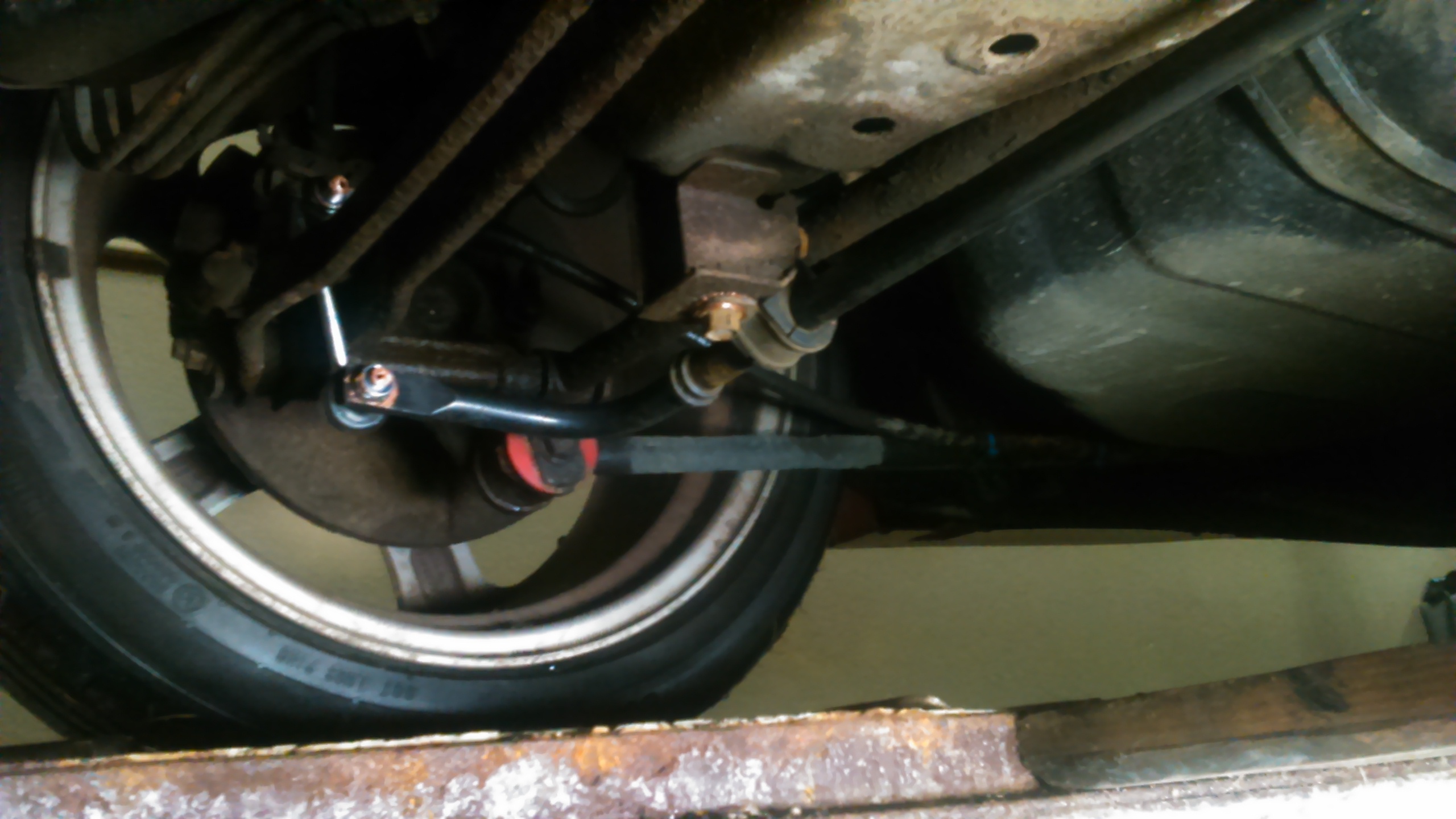 Nowe łączniki z Xedos 6, stab 18 mm z Forda Cougara. Większość widziałem z takim małym podgięciem na środku, proste są chyba z wersji US, SVT, trzeba sprawdzić na forum Cougarow. Gumy staba Forda idealnie pasują na mocowania MXa, wszystko weszło jak klocki lego. Jutro sprawdzę w boju i zdam relacje. Docelowo zamiast nowych gum wleci poli, ale wydaje mi się, że to i tak niewiele zmieni na plus w tym miejscu.