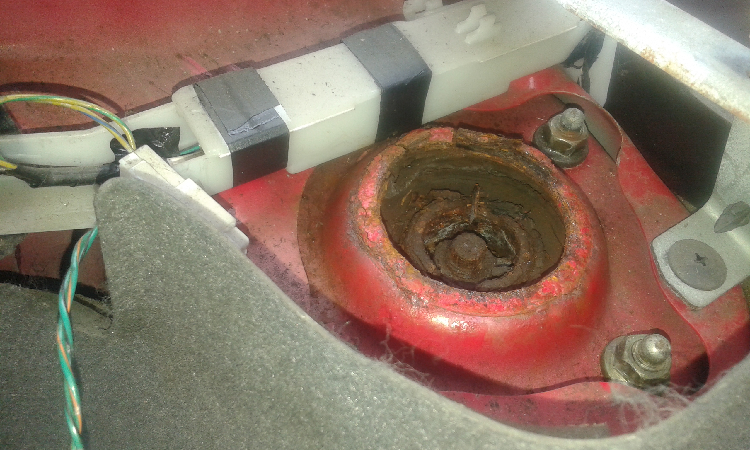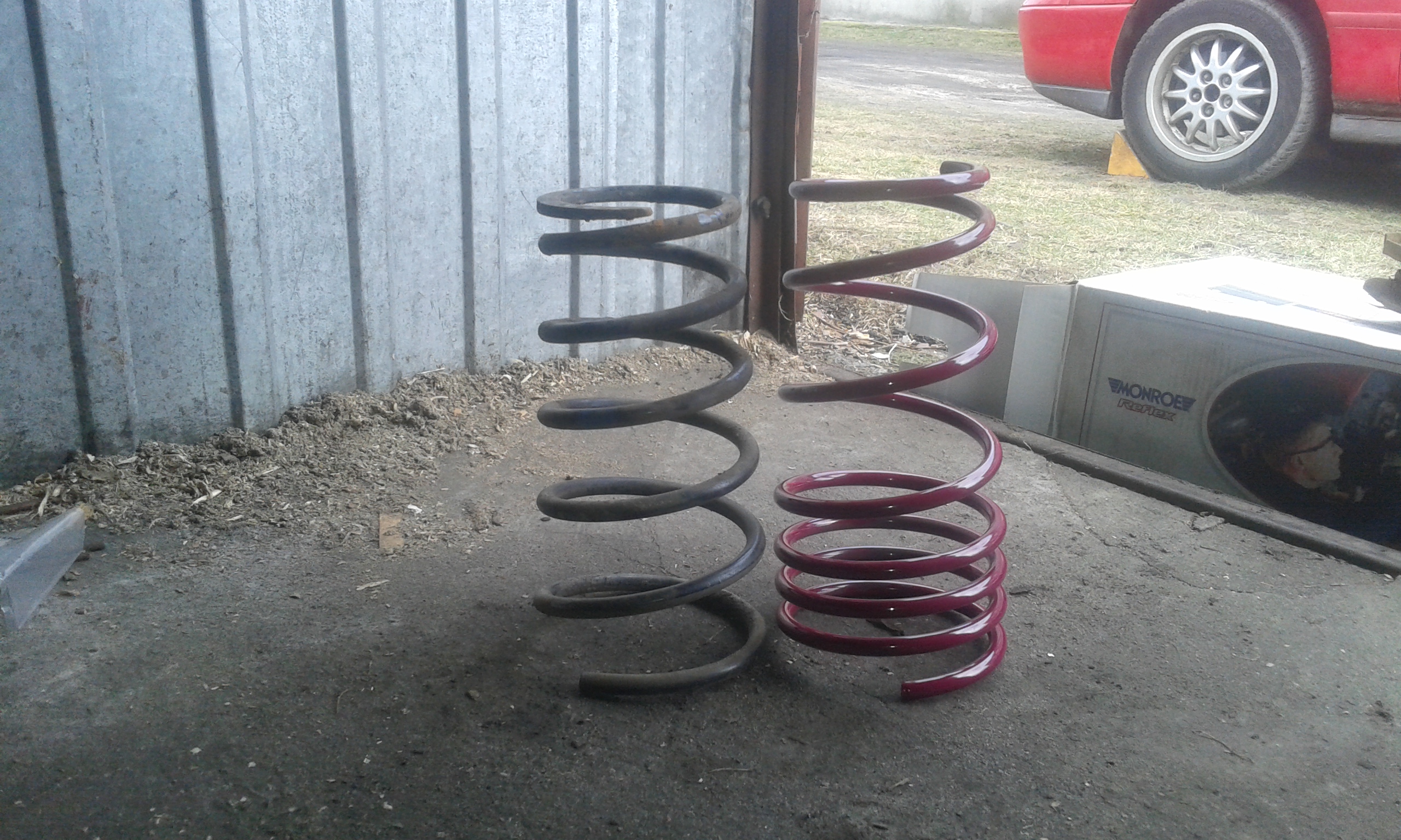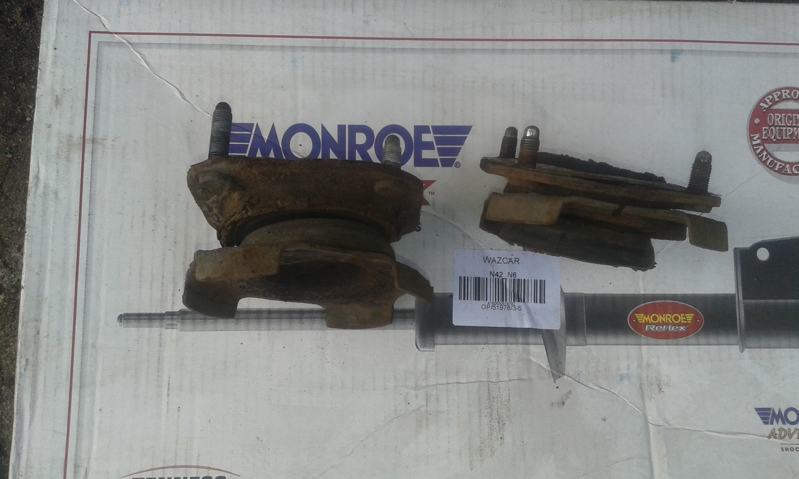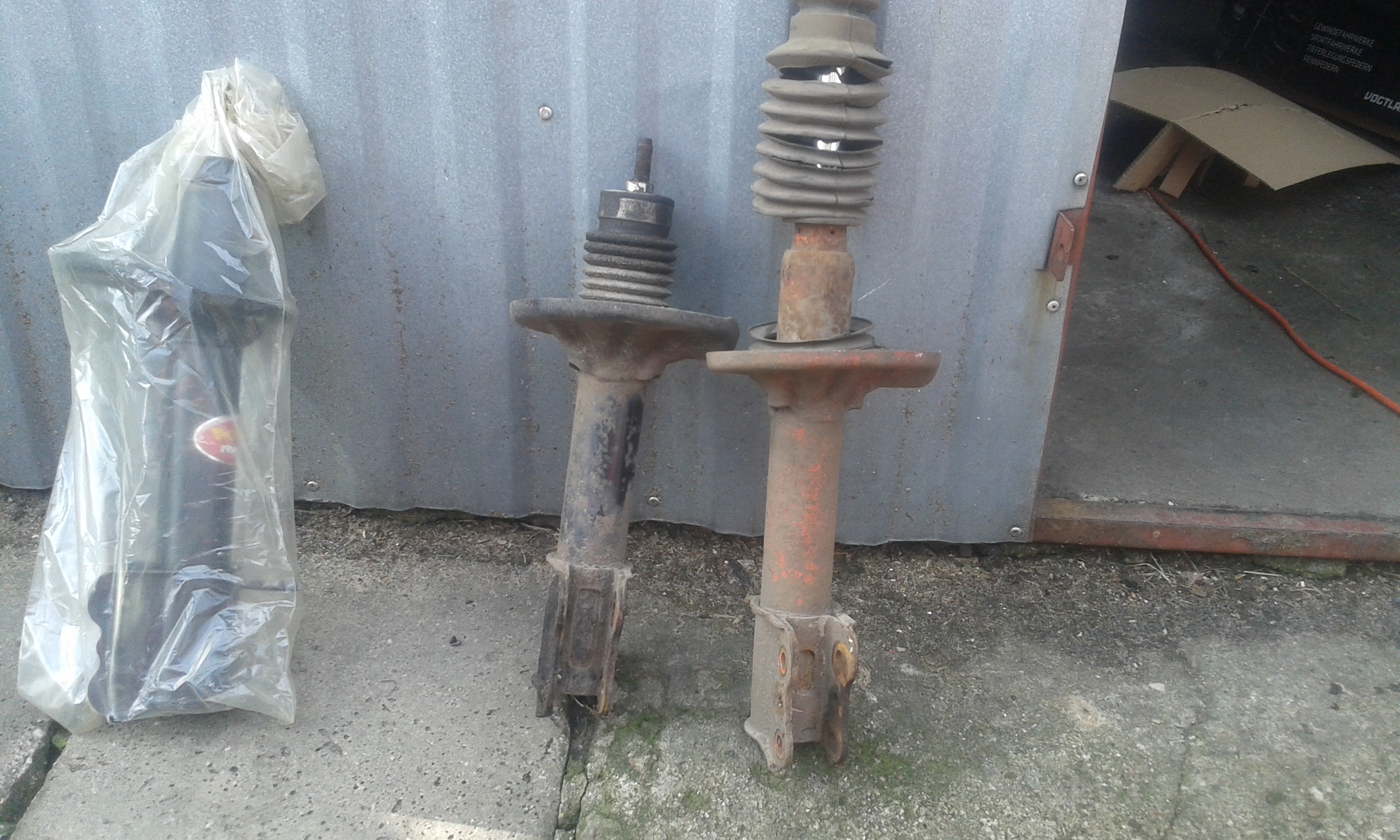 Poduszki mocno skorodowane, ledwo sie odkręciły. Po wyjeciu mcpersonów okazało sie ze obie strony sie róznią. Inne ammory, inne sprężyny i inne poduszki. Do tego lewa sprężyna peknieta. Na kielichach też sie juz ruda panoszyła.