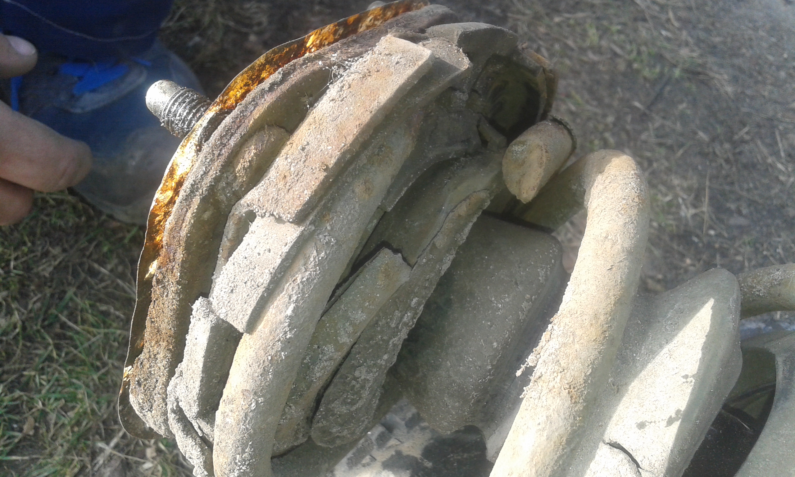nie no az tak zle to nie było. sam ten rancik, który widac na fotkach ze jest mocno skorodowany w czasie czyszczenia zaczął troche "znikać" ale samo mocowanie poduchy jest w dobrej kondycji