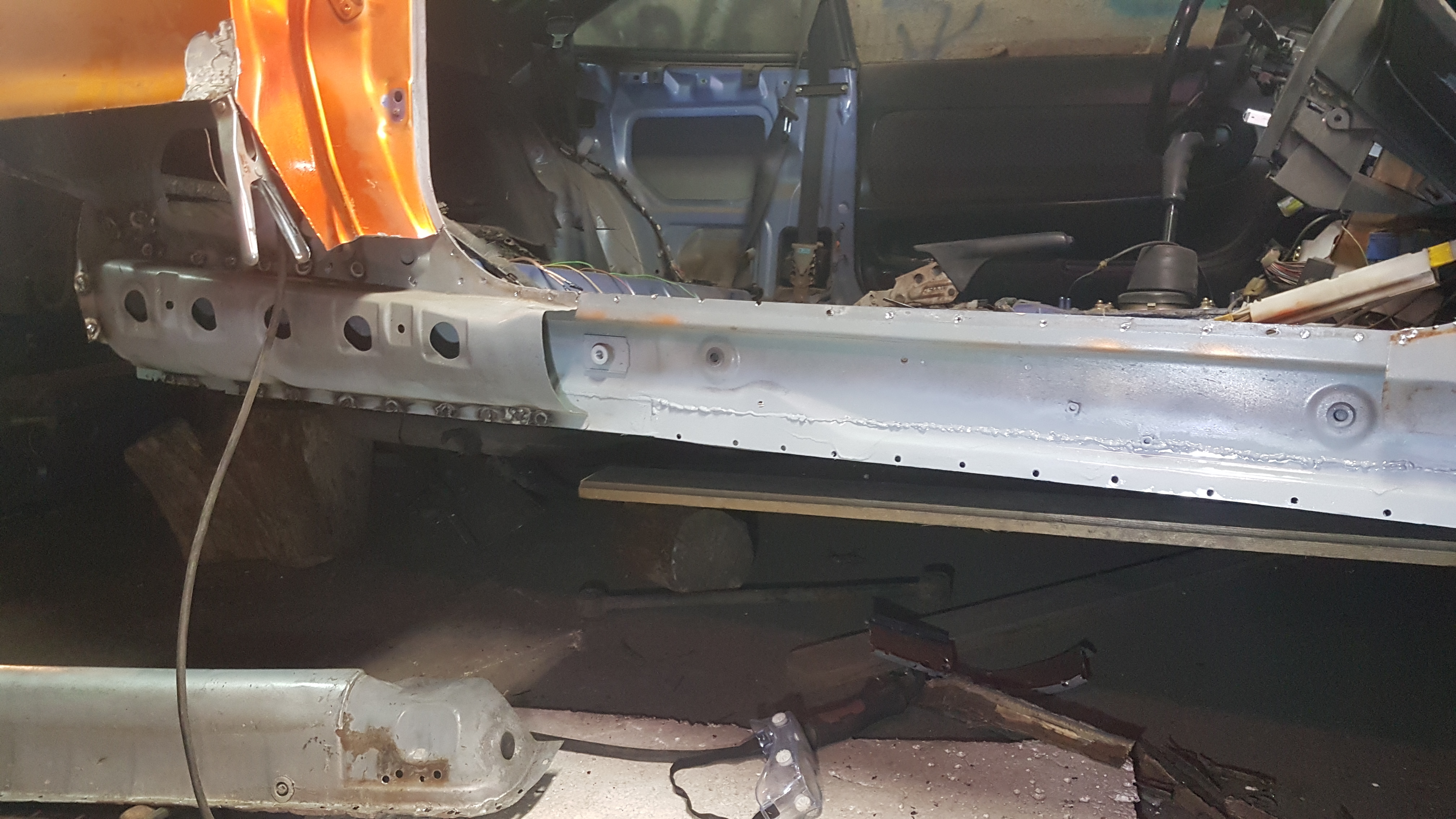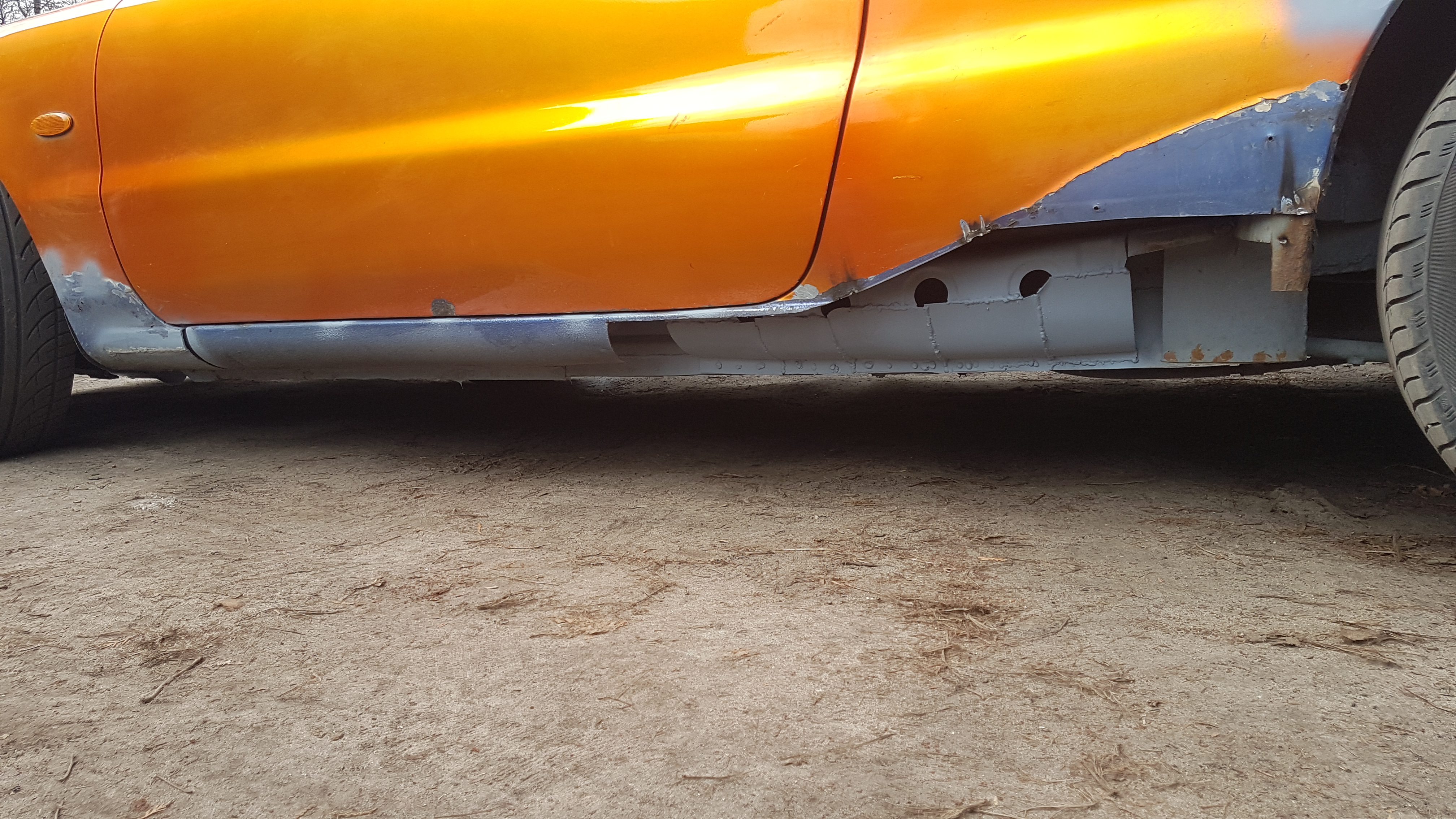 Po długim czasie wracam. Tak wracając do starej dyskusji pisalem o ucieciu sprezyn, bo nie bylem swiadomy, ze gumowe podkladki pomiedzy zwoje sprezyn mi nie podwyzsza samochodu tylko go po prostu utwardzily (sam tyl, bo przod jest sztywny niski i trze tylko przy skrecaniu na nierownosciach) a co do poszerzeń byly chwilowo plastikowe z tyłu ale sie zmyły i będe sie starał cos wymodzic z blachy. Nie nie zniszczylem samochodu bo i tak jeden bok byl po dzwonie przerdzewialy i wspawywana blacha ktora przerdzewiala. Daje pare zdjec z roboty przy blacharce (głównie progi)