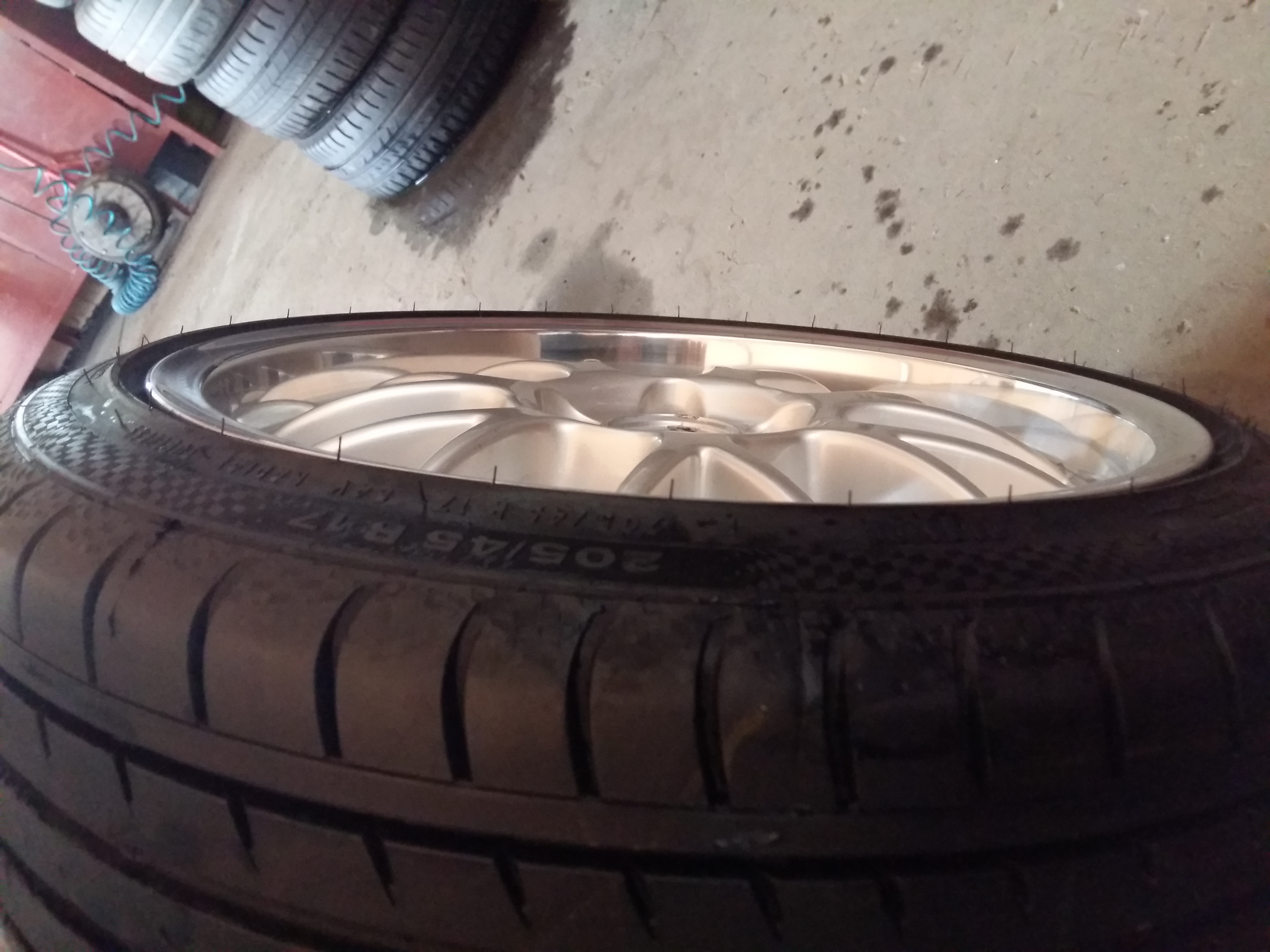 Celowałem bardziej w Bridgestone Potenza RE 050A ale nic w przystępnej cenie i w miarę świeżym roczniku nie mogłem znaleźć. Były jeszcze do wzięcia Michaelin ale w parach ( 2 inne na przód i 2 inne na tył ) dlatego się nie zdecydowałem. Myślałem też o nówkach Uniroyal Rainsport 3 ale jazda na nich po torze... trochę żal nowych na tor