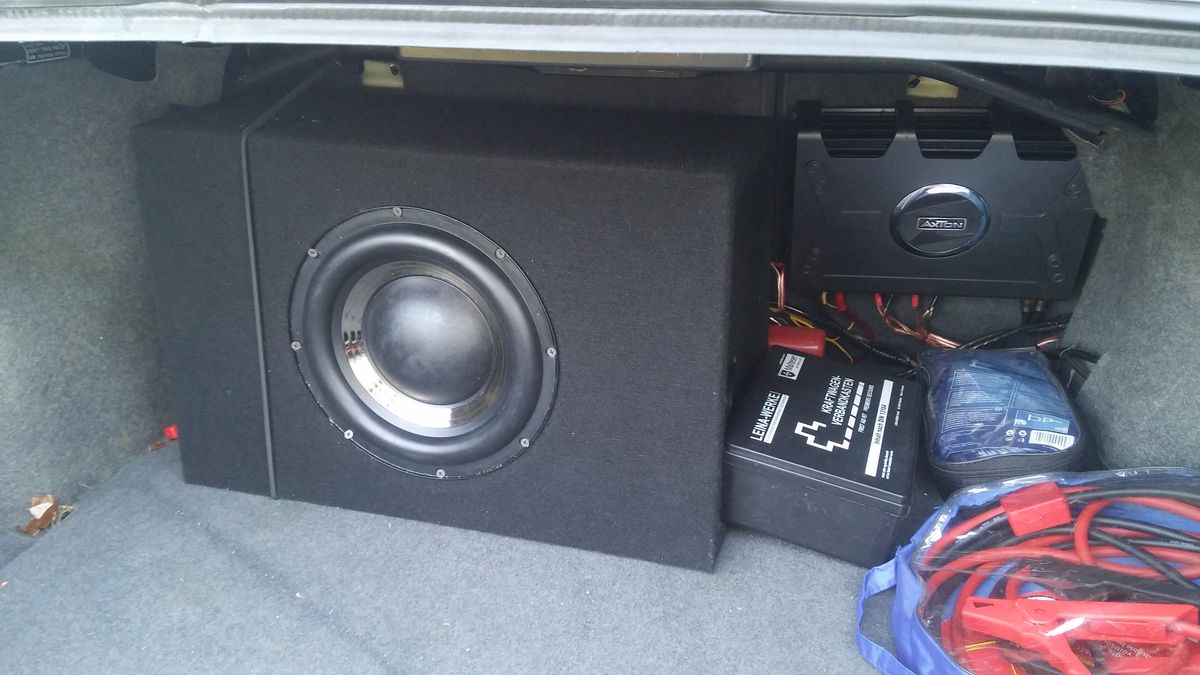 Skrzynkę zbudowałem już rok temu wg. zaleceń producenta z 22m wiórówki. Głośnik kupiłem dopiero w tym roku. Poczekałem nieco z opinią ale stwierdzam na dzień dzisiejszy, że sub do Xedosa zdecydowanie za mocny. Wygląda jak sprzęt idealny dla szelestów i ich golfów III ale nie spodziewałem się takiej szybkości i zejścia. Świetny głośnik za niewielkie pieniądze. Zdecydowanie mój typ brzmienia ale będę szukał czegoś 8" i ładnie zabuduję w bagażniku. Jeśli chodzi o jakieś JBL'e czy Sony Xplode ze sklepów to pod względem brzmienia zupełnie inna klasa. Głośnik mega prądożerny, wzmacniacz oddaje 2x196W w mostkach przy 4R, za mało... Axton spalił już kilka bezpieczników w ramce za aku – 40A sztuk 2, 50A sztuk jedna. Więcej niż 50A nie wkładam bo nie wiem jak obciążenie zniesie wzmacniacz. Po za tym nie słucham już tak głośno ; ) Gdyby ktoś chciał to do sprzedania na zimę. Skrzynka posiada szczelinowy bass reflex. W closed potrzebuje jedyne 20 litrów !