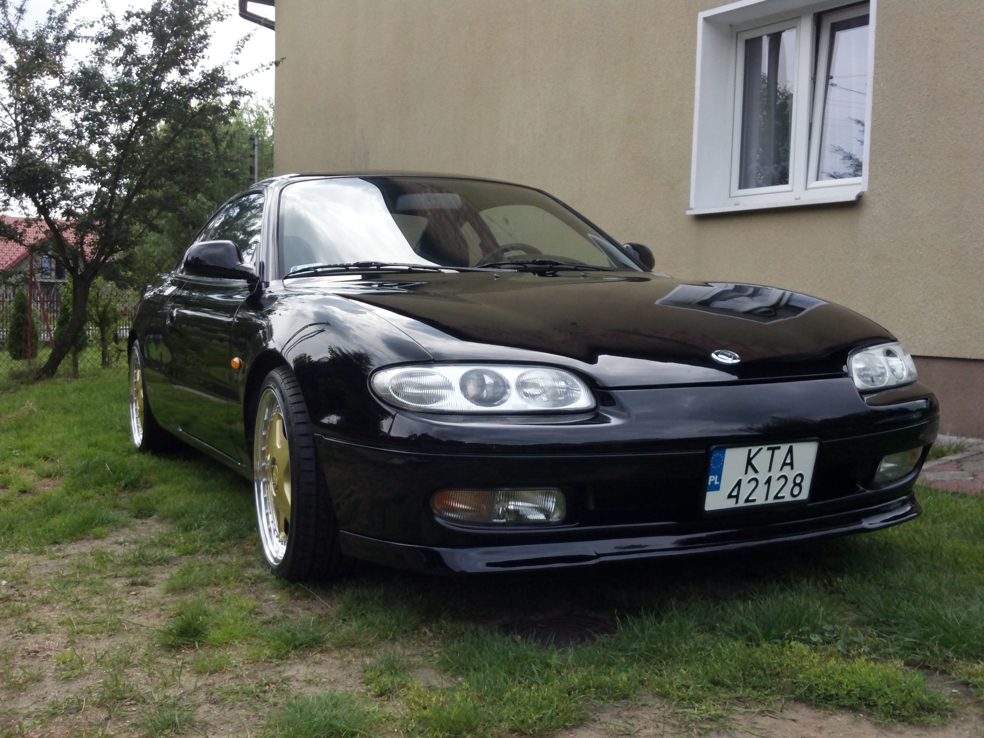 Dzieki. Jesli jest ktos w stanie wylozyc za felgi 2600zl to oddam. Z oponami o przebiegu ponizej1000km dodatkowe 800zl wiecej. Poki co, mazda sie delikatnie modzi i czeka na lakierowanie maski i zderzaka. Zderzak po tym gamoniu co mi przywalil a maska kiedys gradobicie przeszla, jeszcze za wczesniejszych wlascicieli. Wgniotek nie brakuje itd ale lakier ma 22 lata i jest oryginalny (poza rantami i wokol tylnych nadkoli. Ktos kiedys malowal).