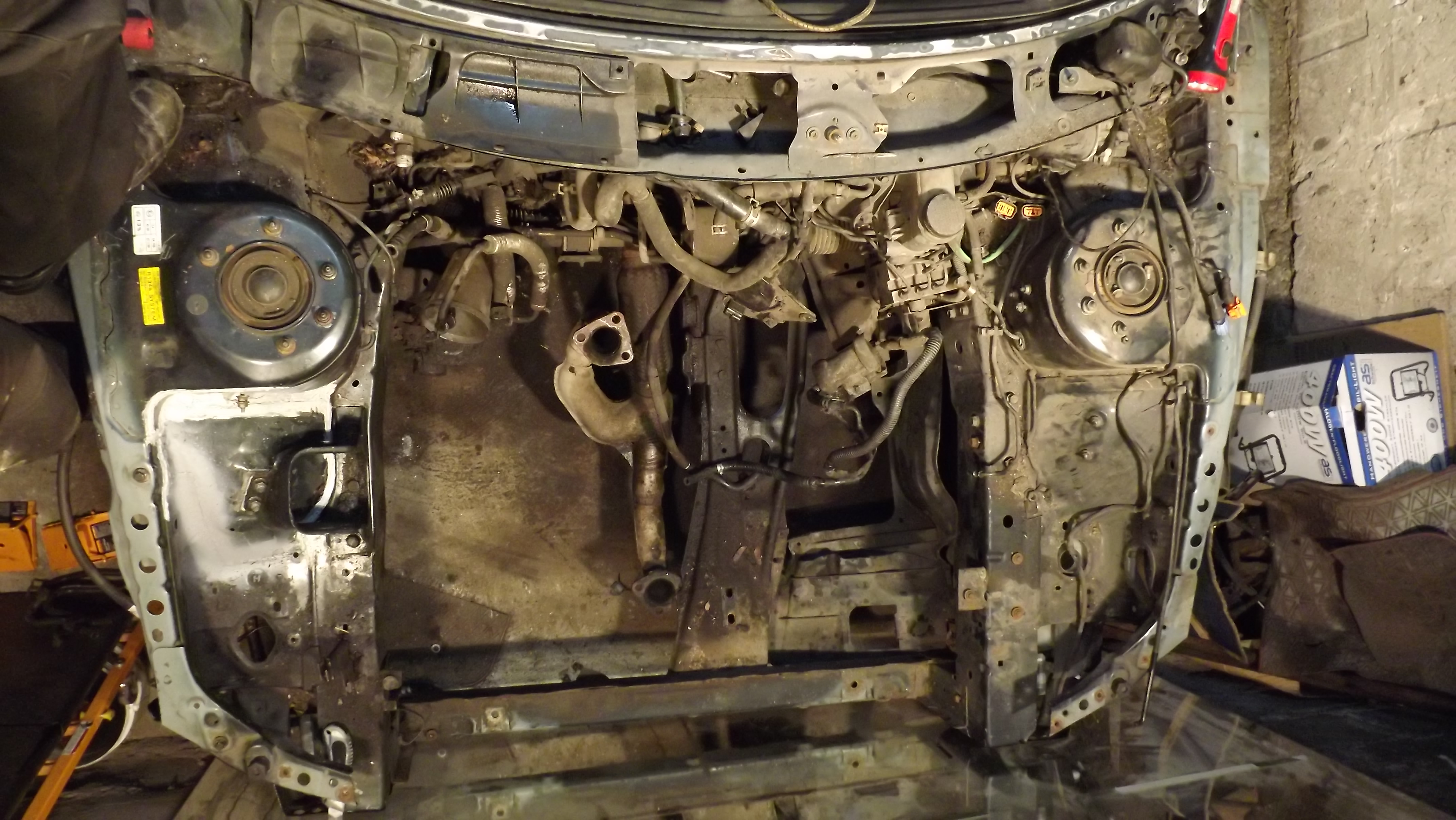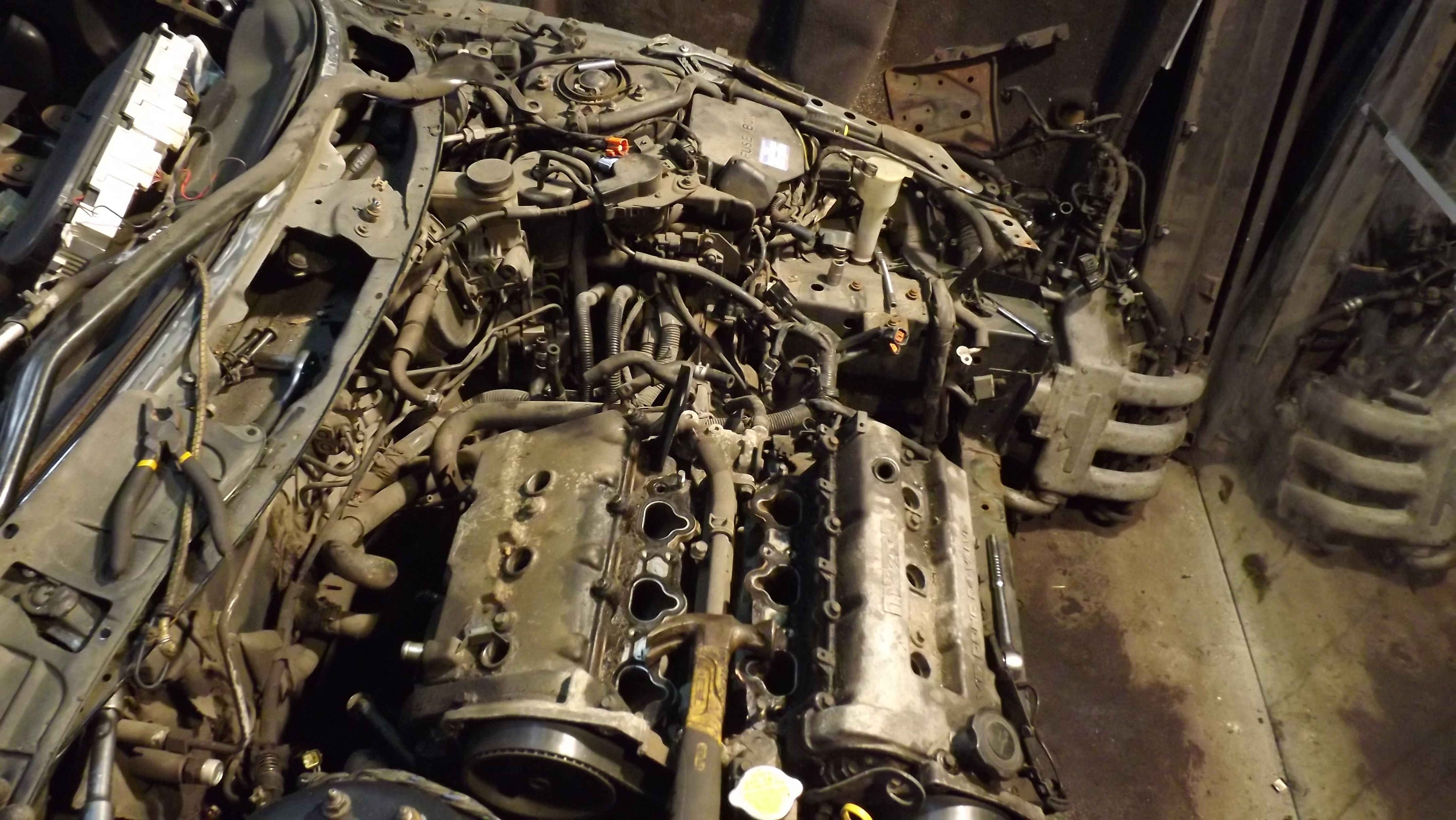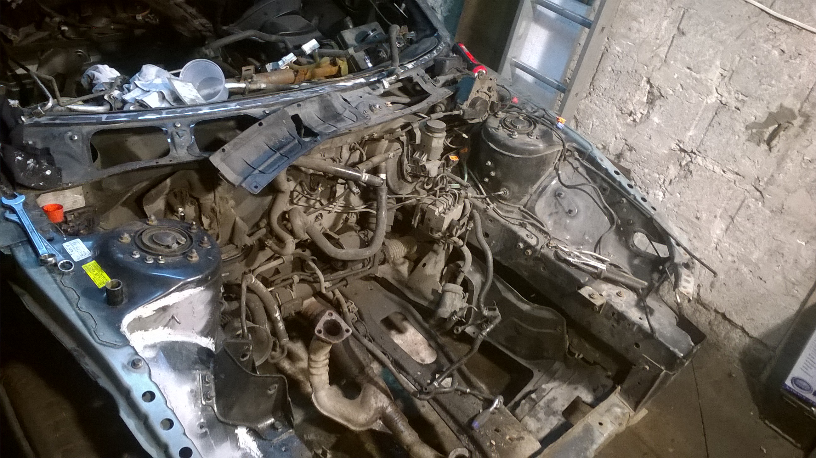 A więc tak, auto się dalej rozbiera bo musi, tym razem wyskakuje już silnik oraz oczyszczanie komory z elektryki, zbiorniczków etc. Myślę że w sobotę silnik już będzie poza komorą samochodu.
