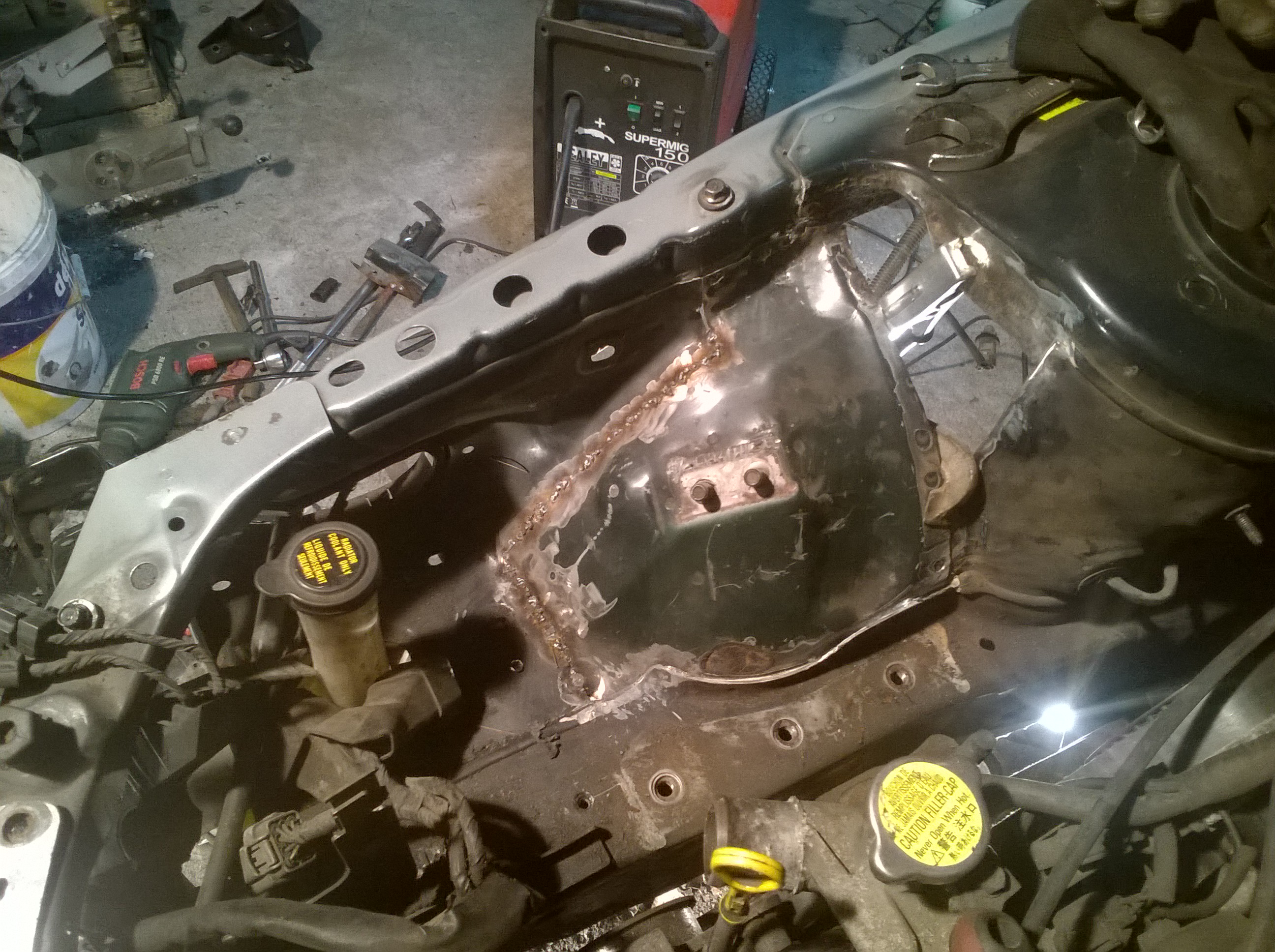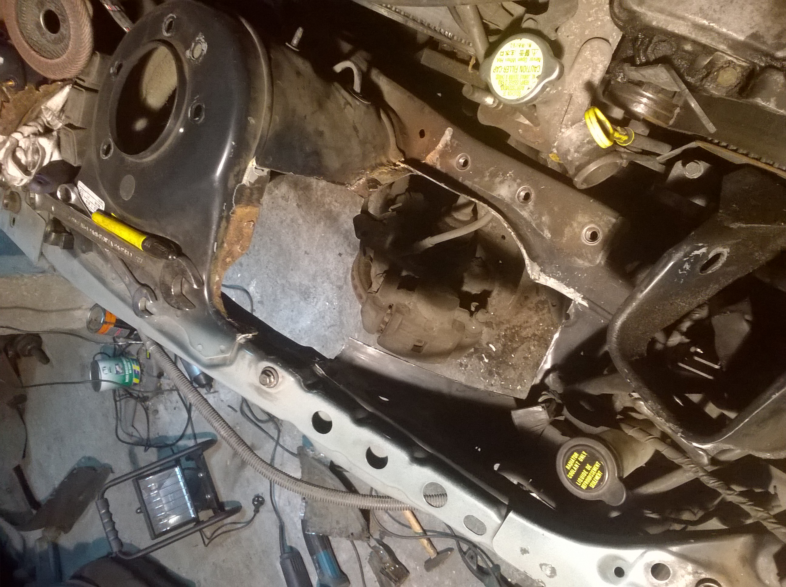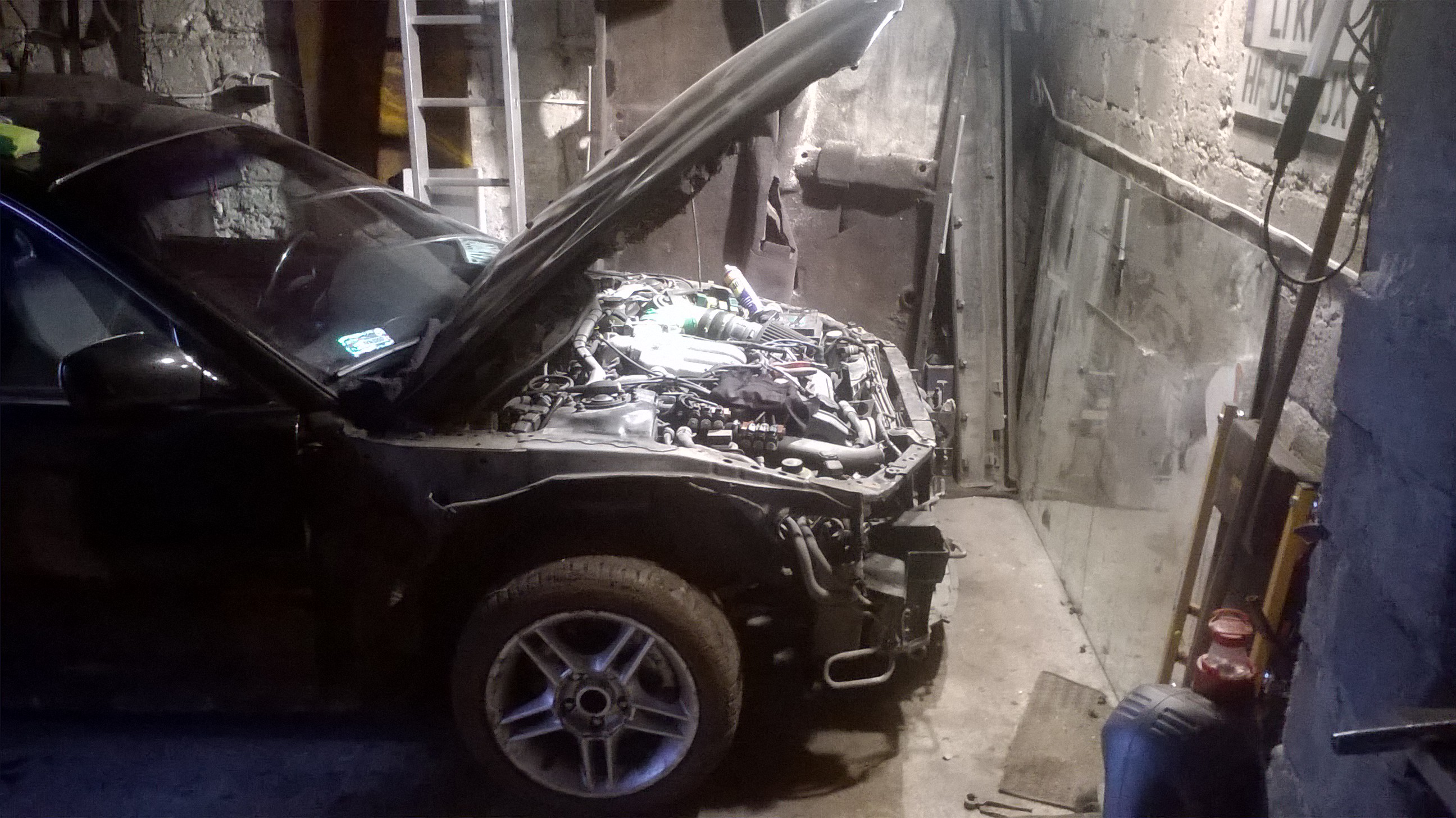 A więc tak, auto się dalej rozbiera bo musi, tym razem wyskakuje już silnik oraz oczyszczanie komory z elektryki, zbiorniczków etc. Myślę że w sobotę silnik już będzie poza komorą samochodu.