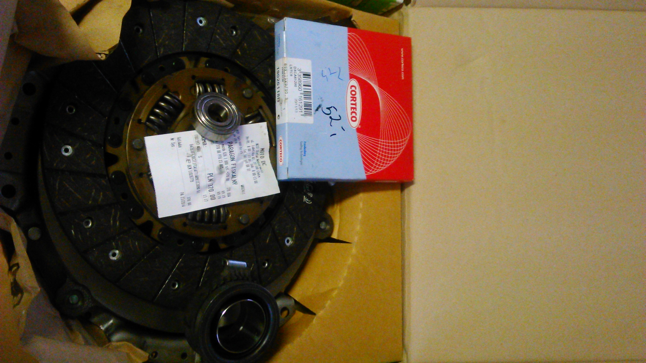 -wymiana sprzęgła Valeo tarcza, docisk, łożysko, uszczelniacz wału, małe łożysko, olej w skrzyni 70 w 90 12.08.2014r 233 tyś