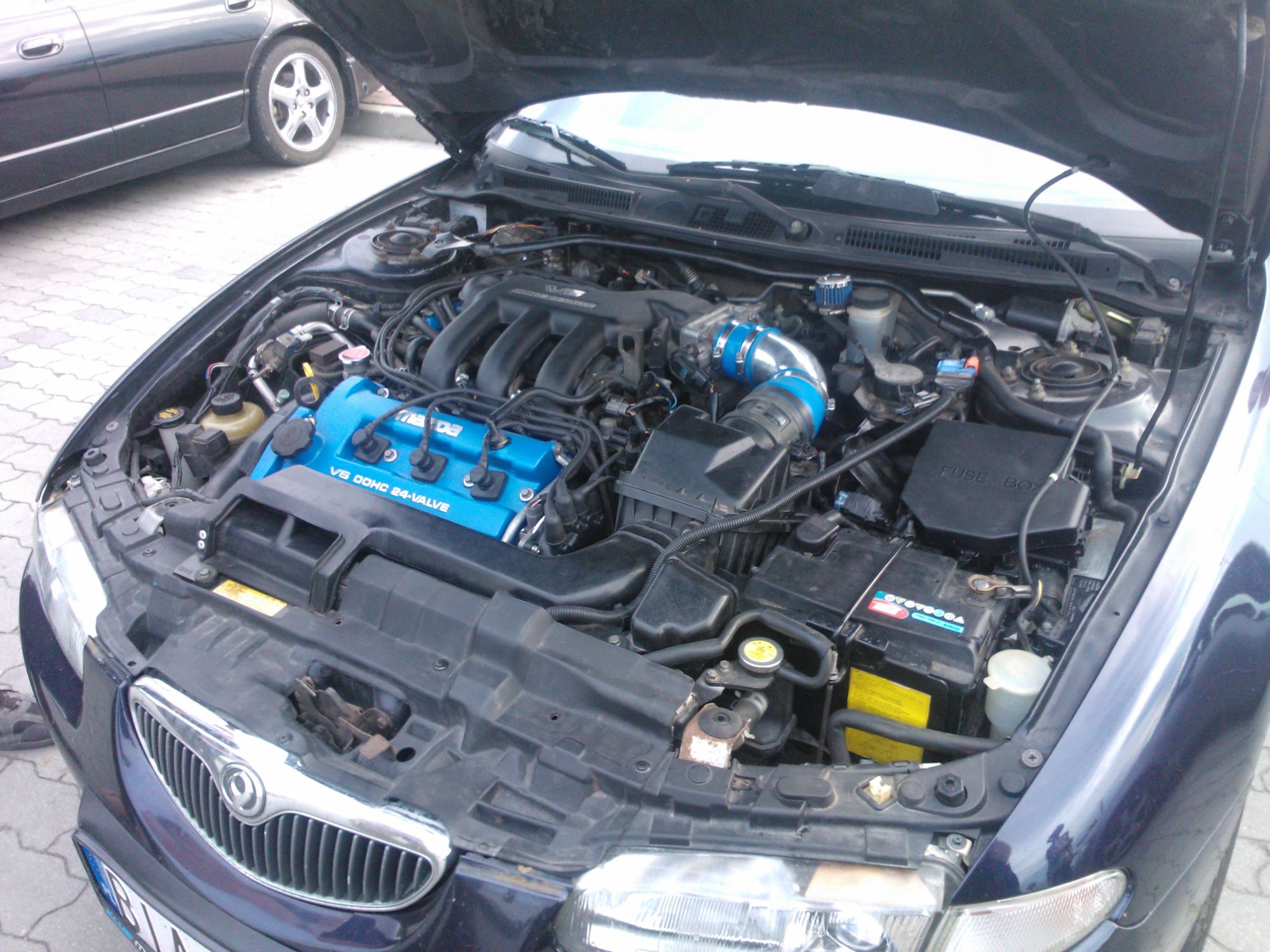 Witam wszystkich odwiedzających mój temat, na forum jestem dość długo ale jakoś nie było czasu napisać tematu.Na początku miałem BA Z5 z 1995 z którego byłem bardzo zadowolony, lecz chciałem coś większego z większym silnikiem, w rachubę wchodziło tylko i wyłącznie V6. Xedosa podpowiedział mi znajomy, że takie jest do sprzedania, pojechałem, obejrzałem i wróciłem nim do domu. Autko po zakupie spisywało się wręcz wyśmienicie, ale jak to używka zawsze coś jest do zrobienia. Nie ma auta bez wkładu... Po za silnikiem który po 2 latach zaczął popijać olej auto mnie nie zawiodło. Oczywiście nic innego nie mogło wejść w budę jak KL :) Pierwszy KL był z Probe MK 2 ale okazało się że ma uszkodzoną uszczelkę pod głowicą i wytwarzało się bardzo wysokie ciśnienie w układzie chłodzenia, trafił się X9 FL z pięknym KL pod maską z małym przebiegiem, przekładka na nowy silnik zajęła mi w sumie 2 dni. Auto śmiga i cieszy dźwiękiem widlastej szóstki.